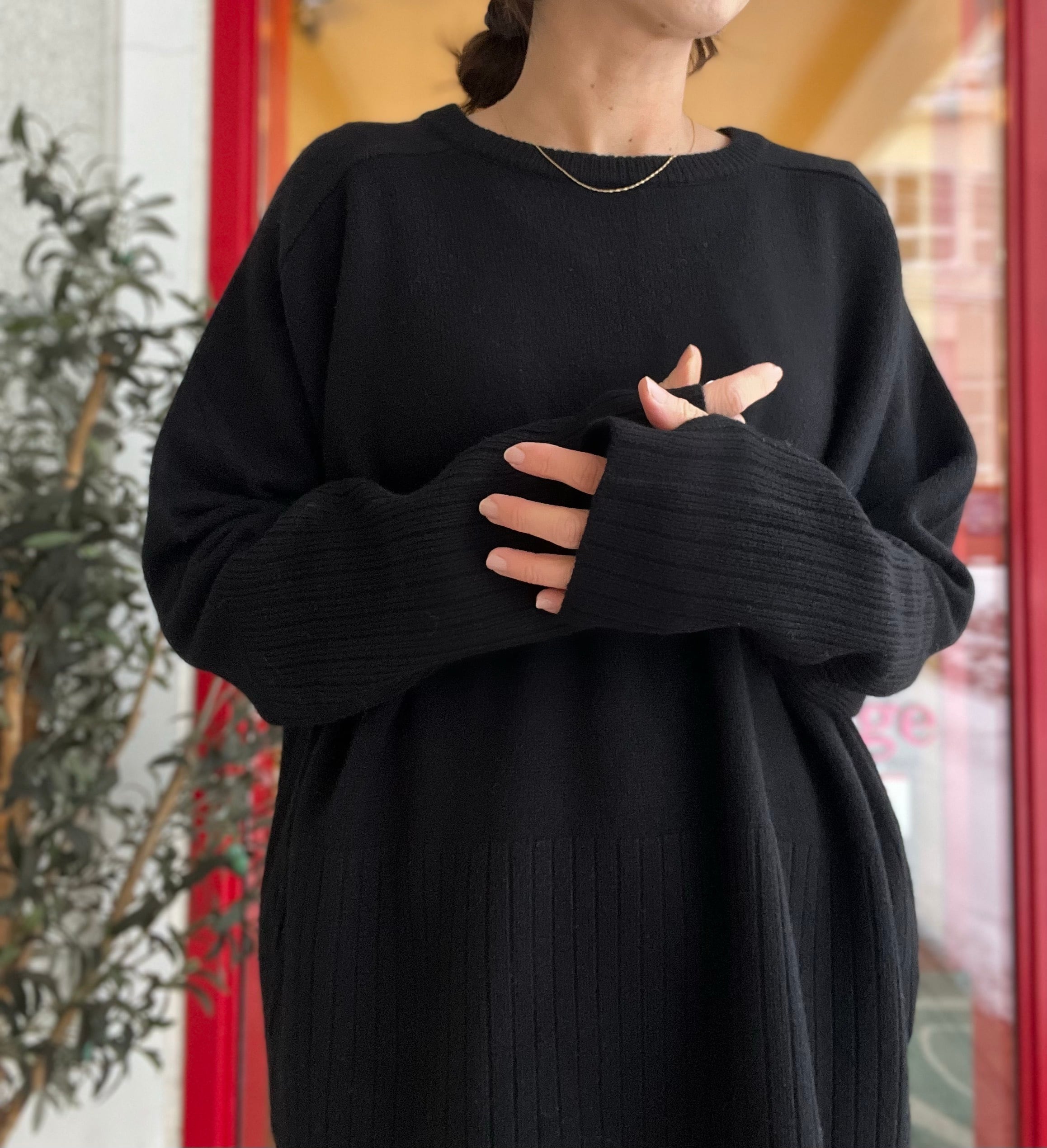 長めの袖は折り返しも、サムホール仕様なので手元を暖かく過ごす事も可能です