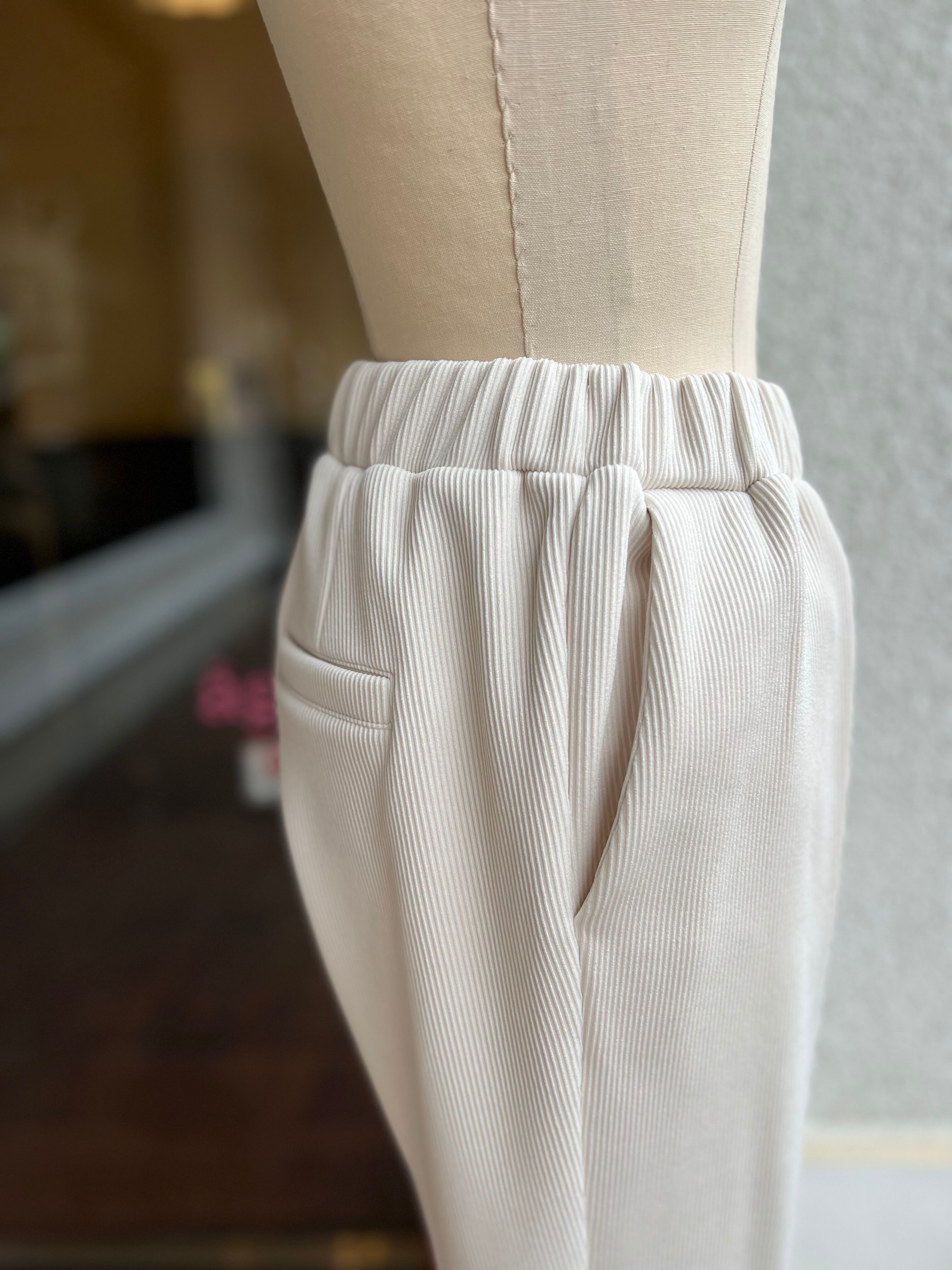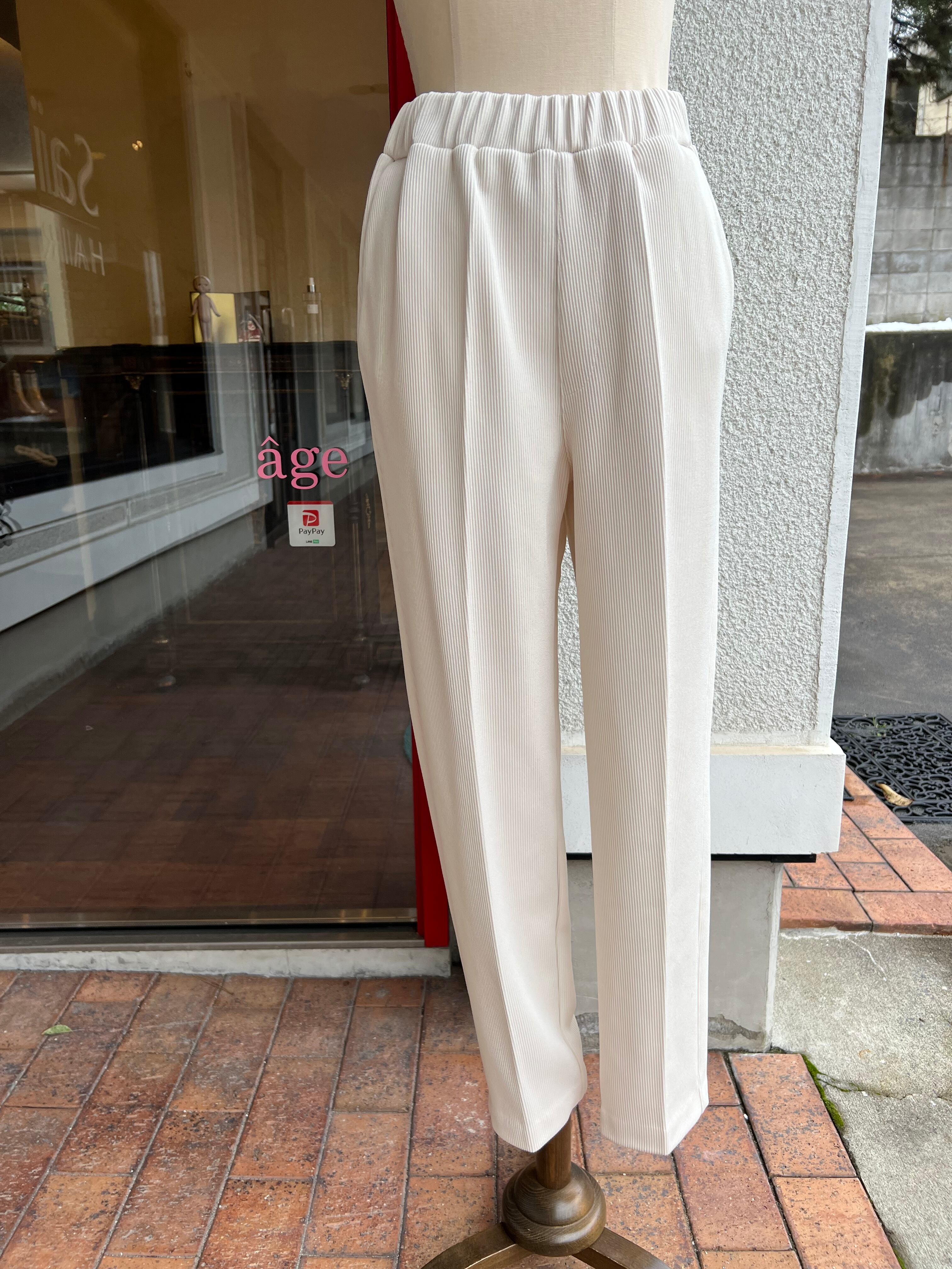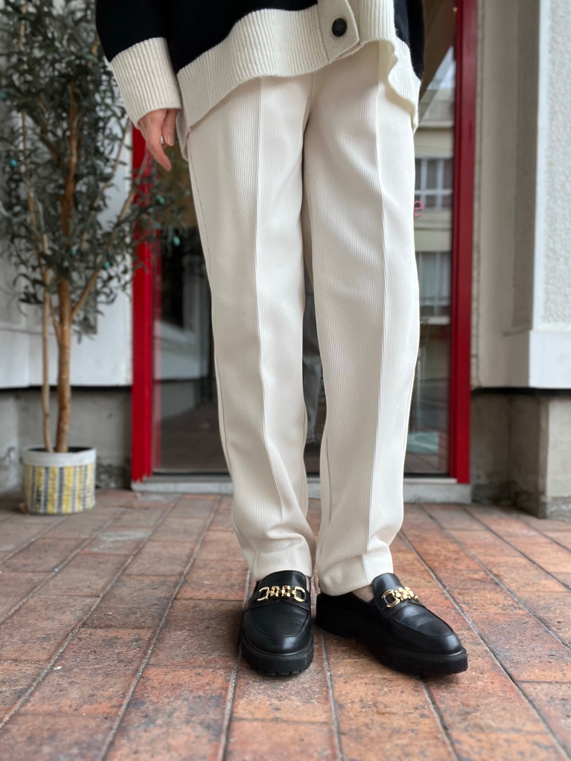 適度なハリが美しいシルエットをキープしてくれる、綺麗めな印象のパンツです