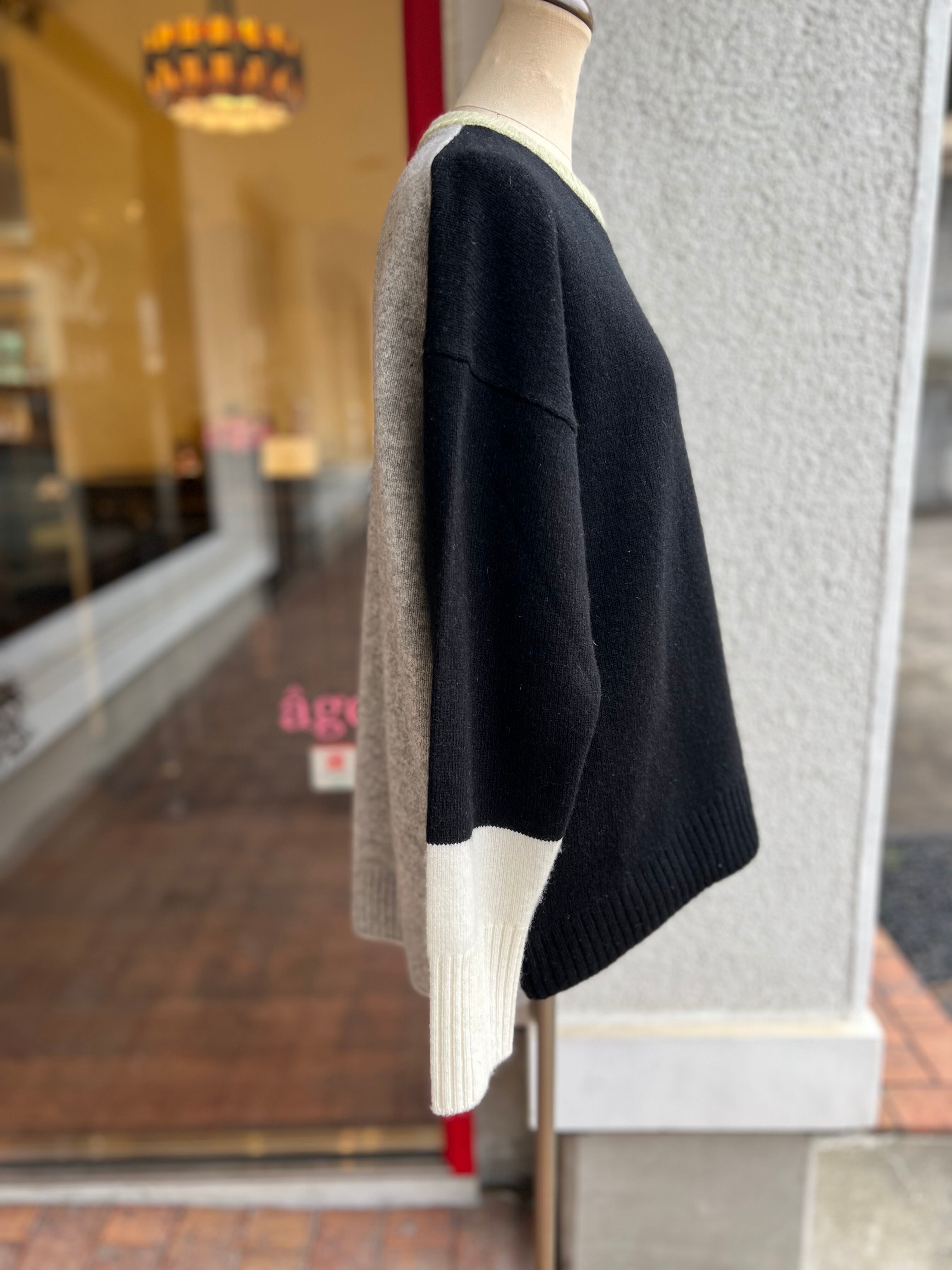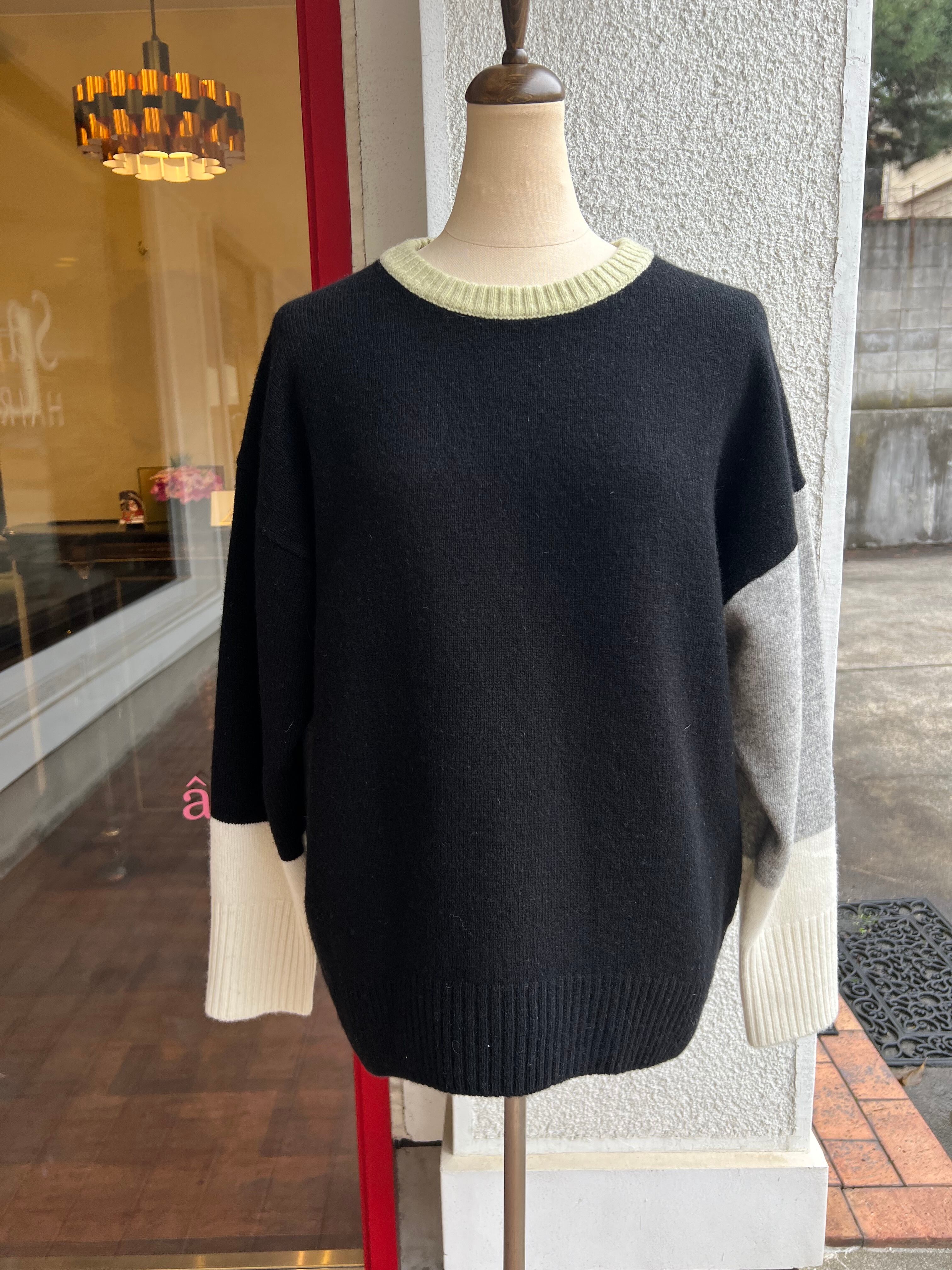 ディニテコリエ タスマニアウール配色ニットプルオーバー