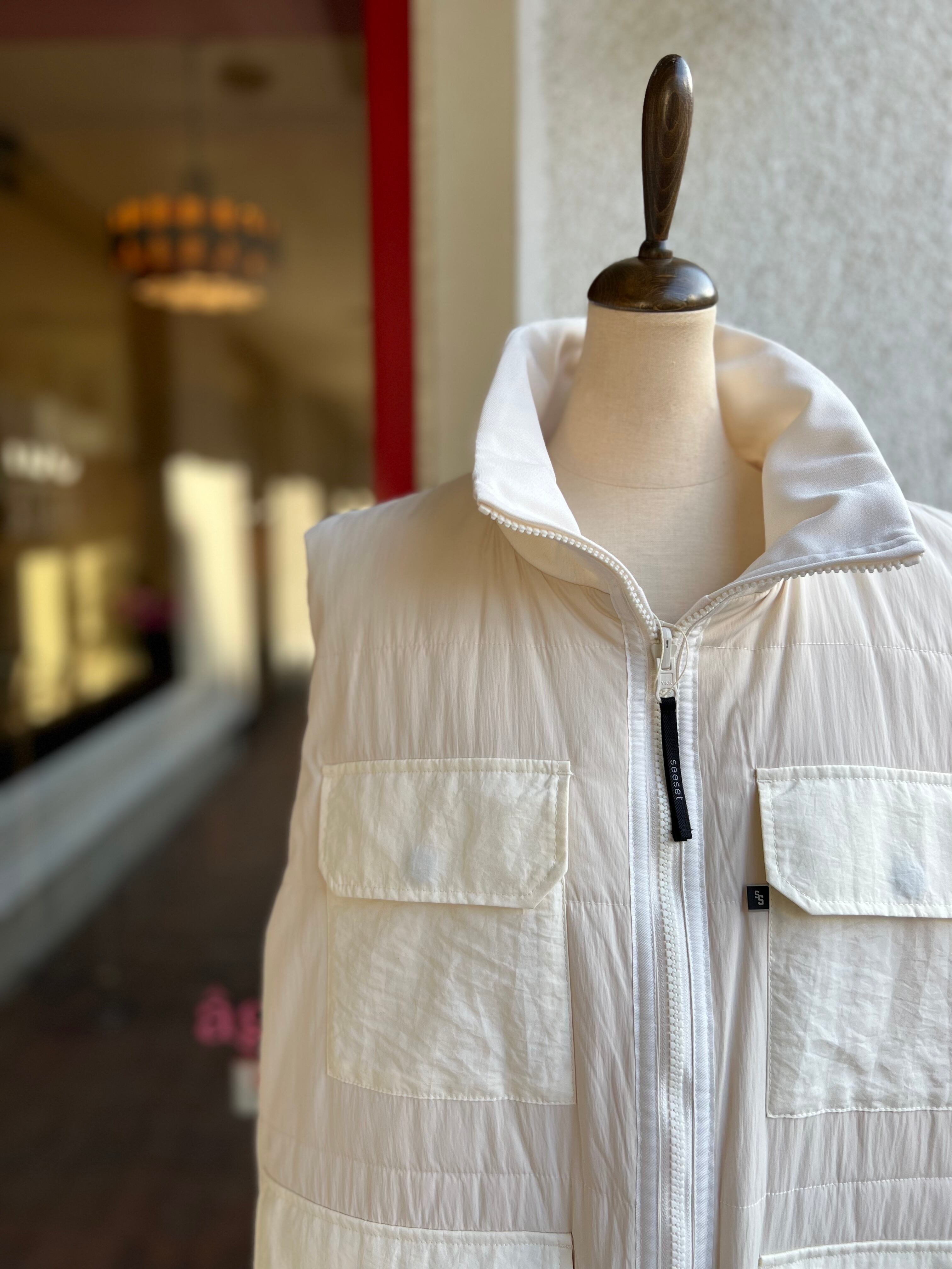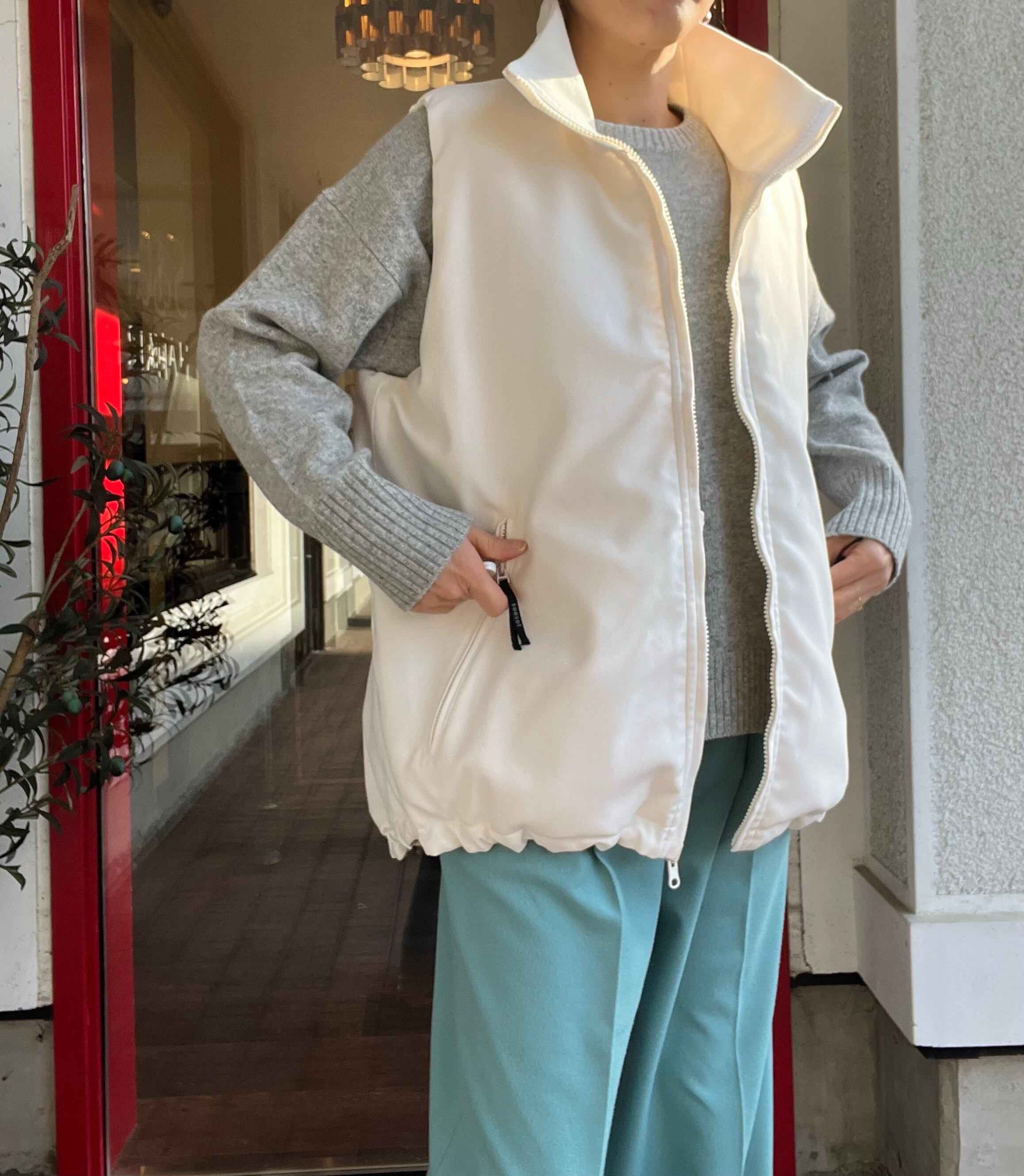 ダウンベストほどボリュームはないので、すっきりとした印象になります