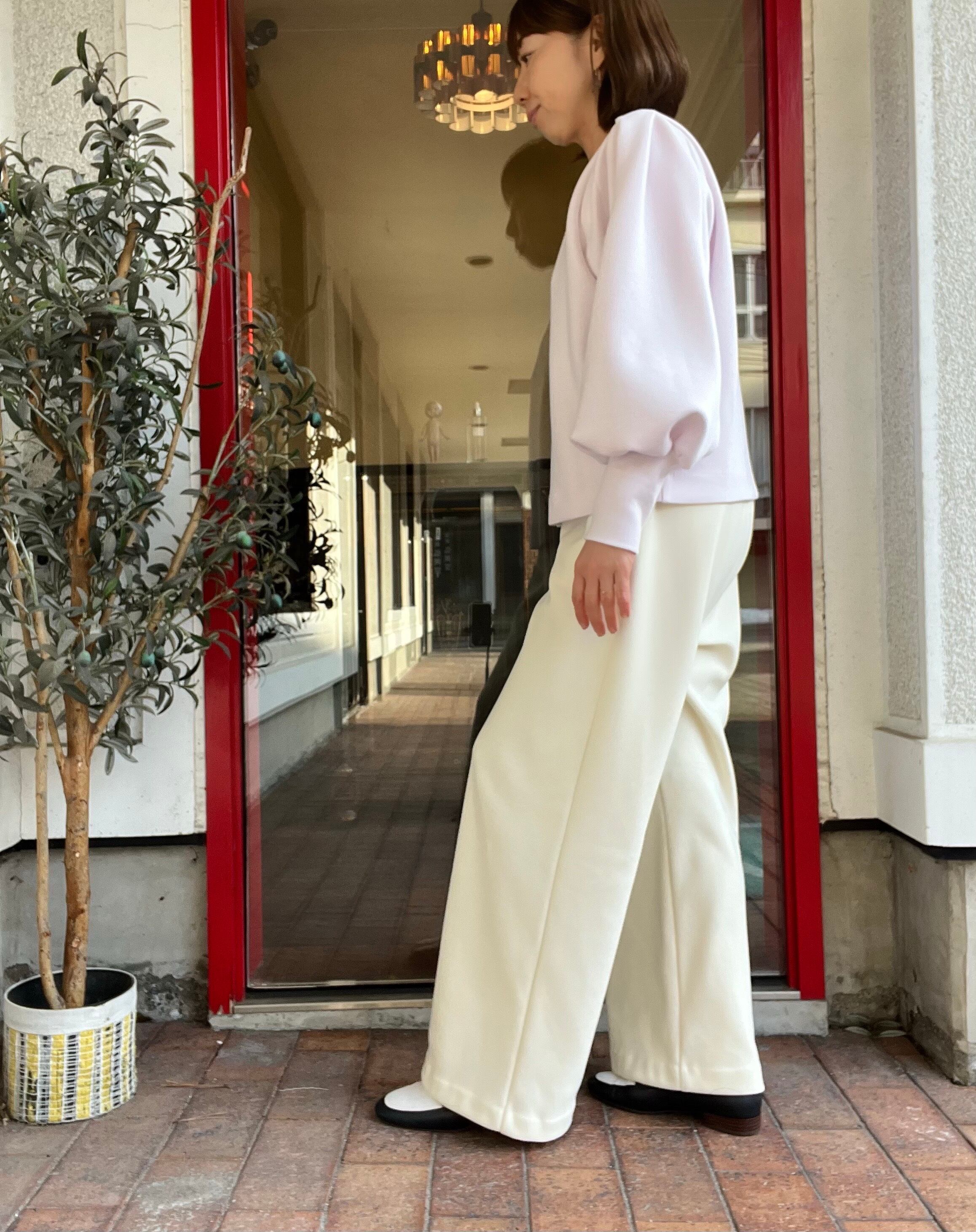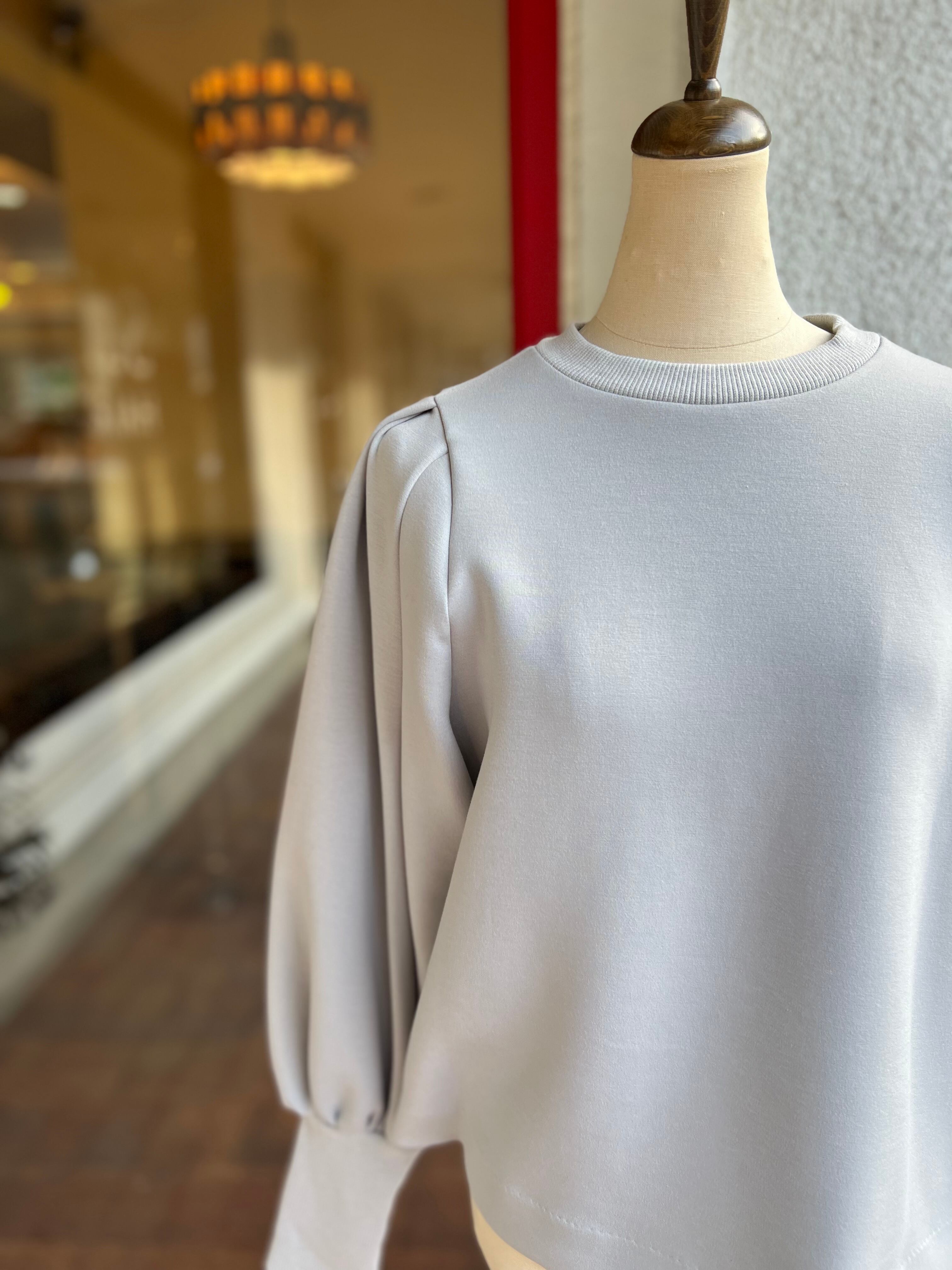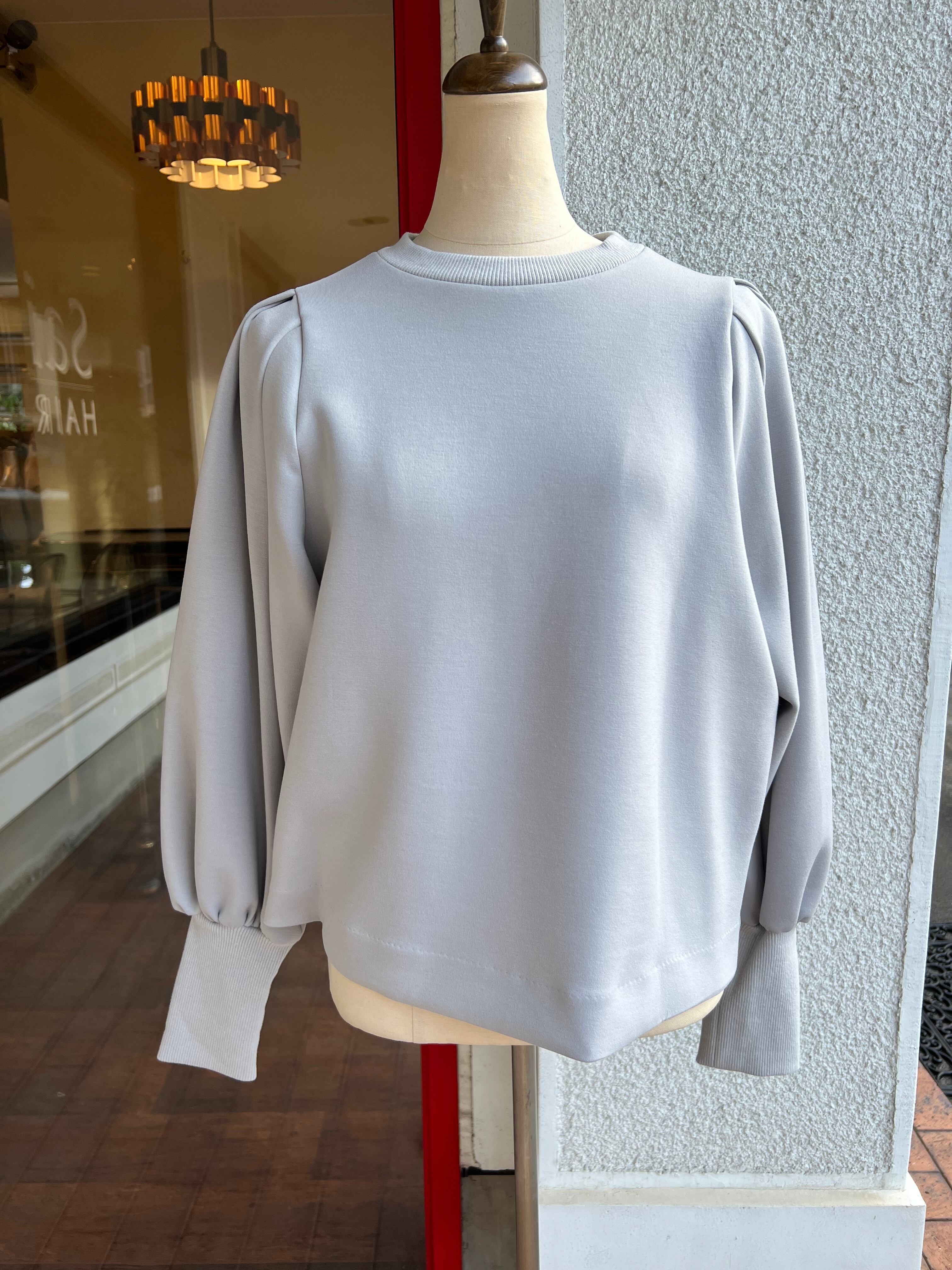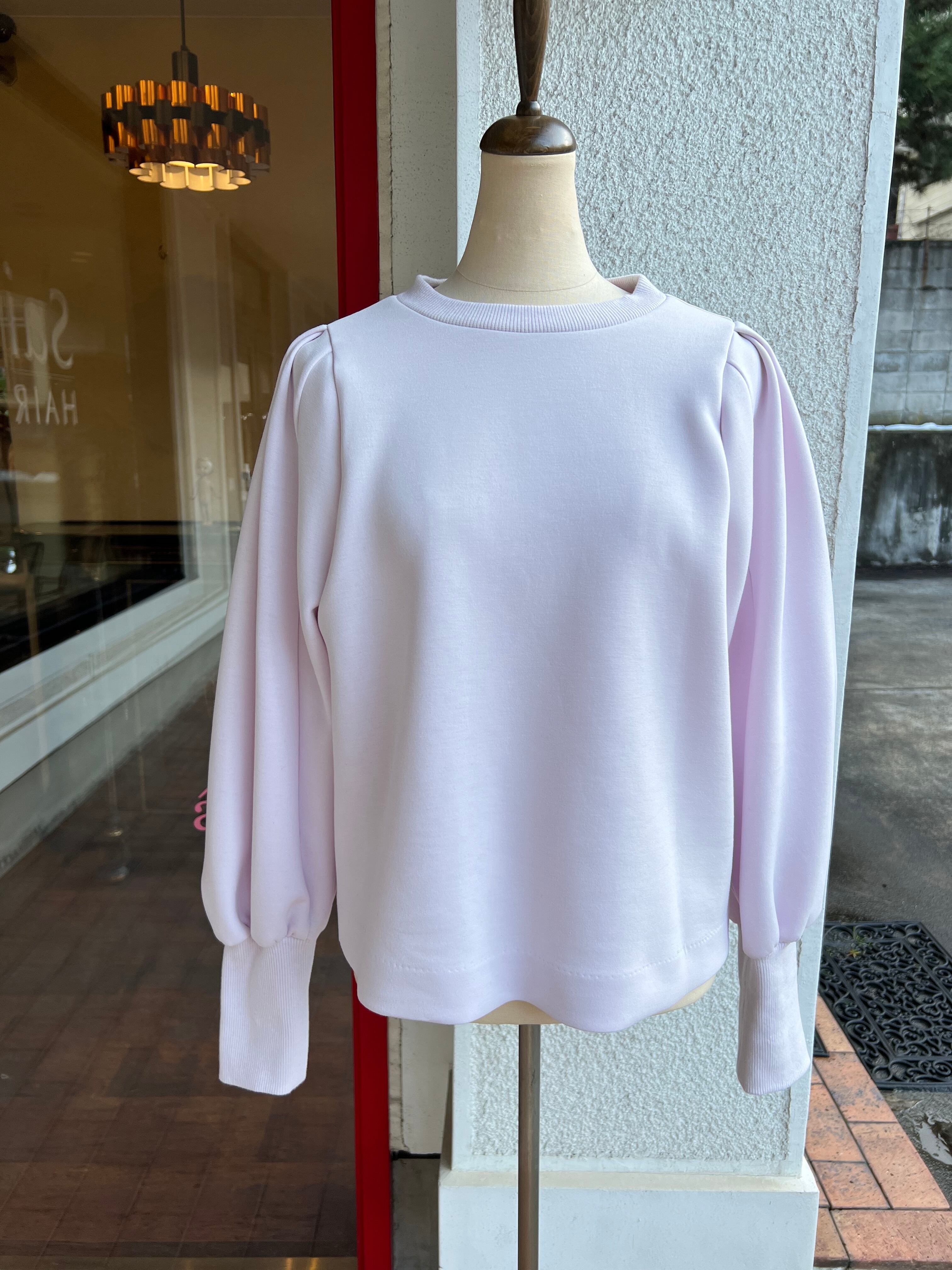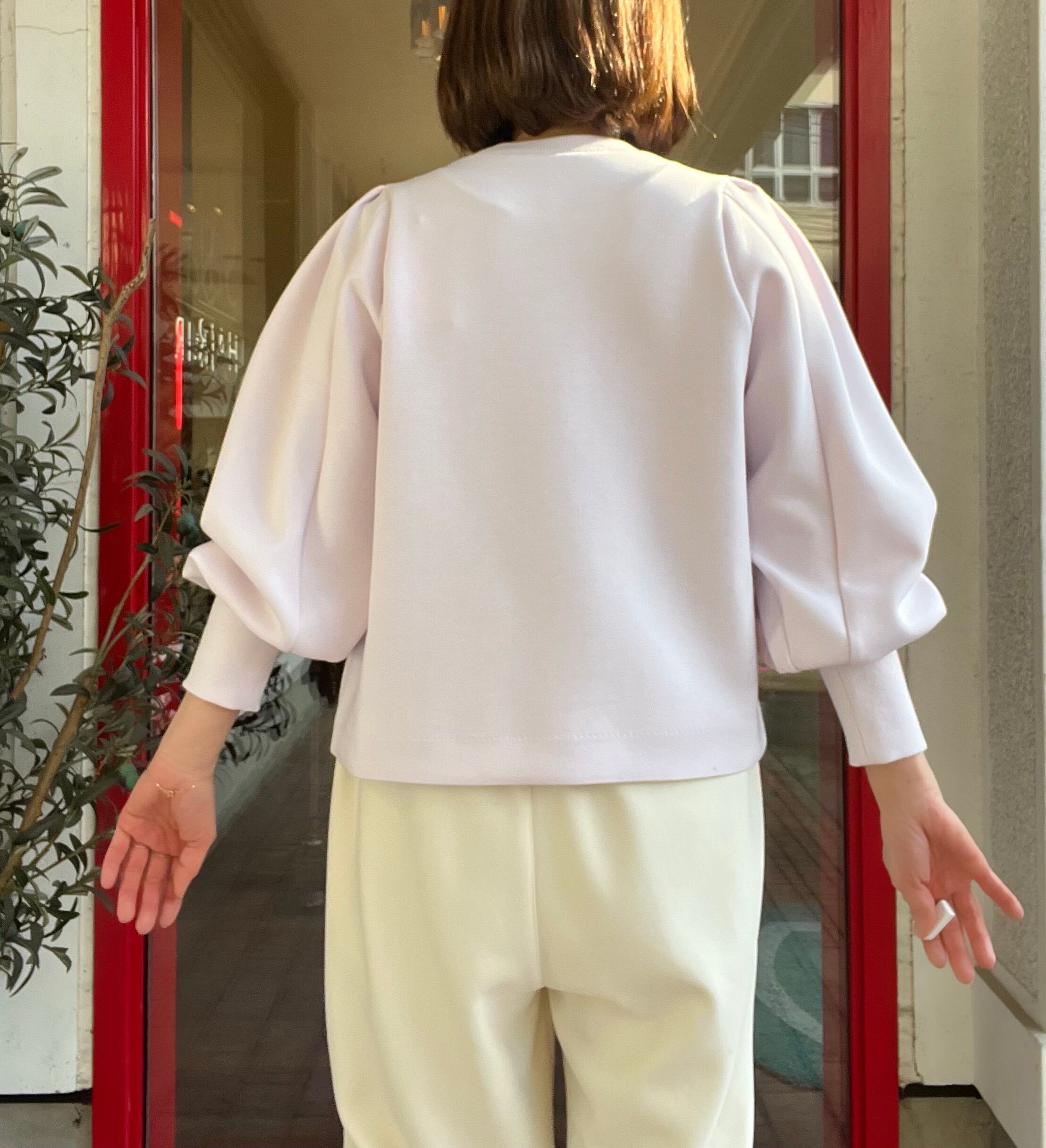 袖コンシャスなデザインで、滑らかな肌触りのスウェット生地は着心地良く