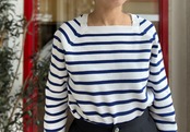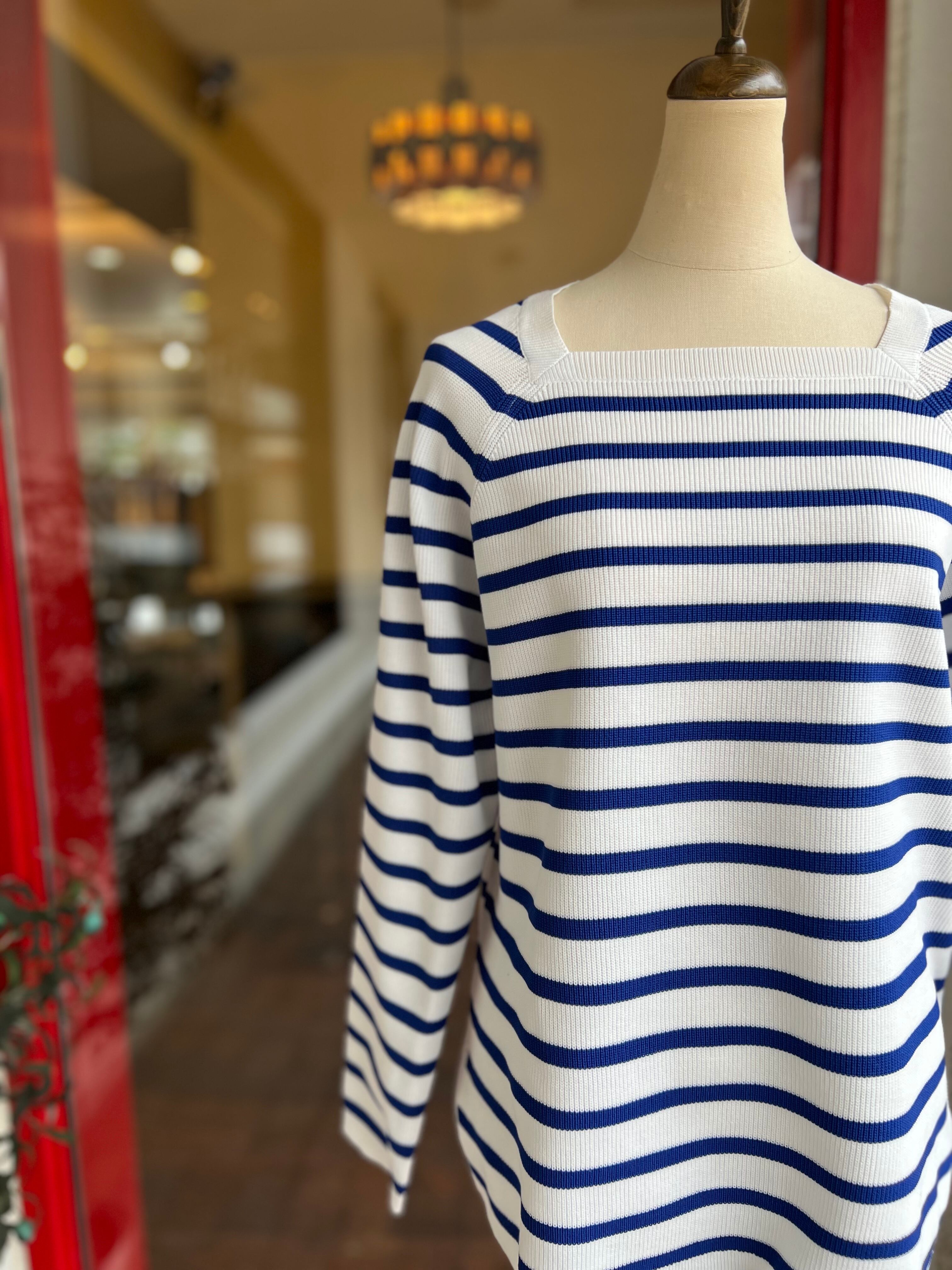 スクエアネックのボーダーリブニット