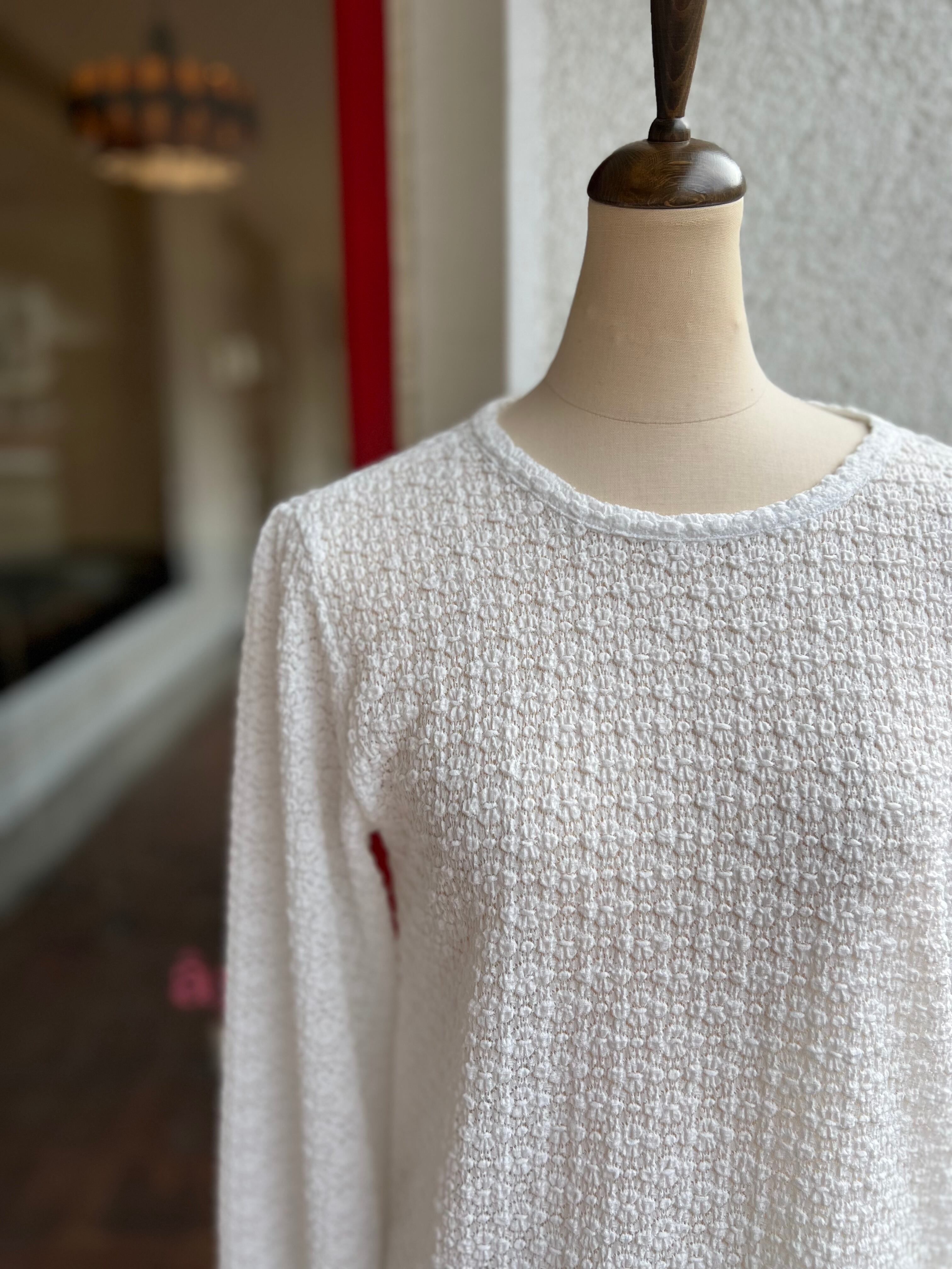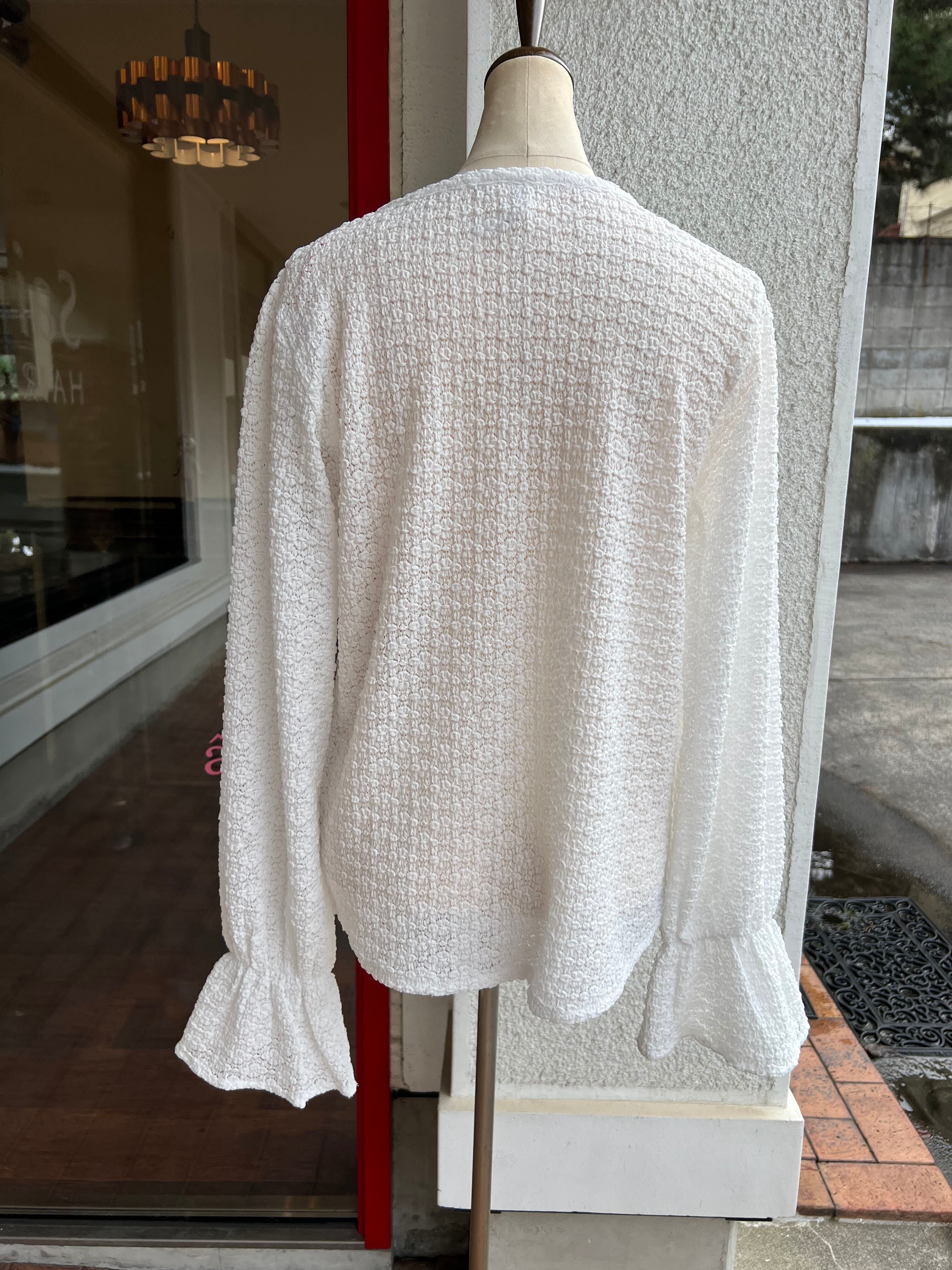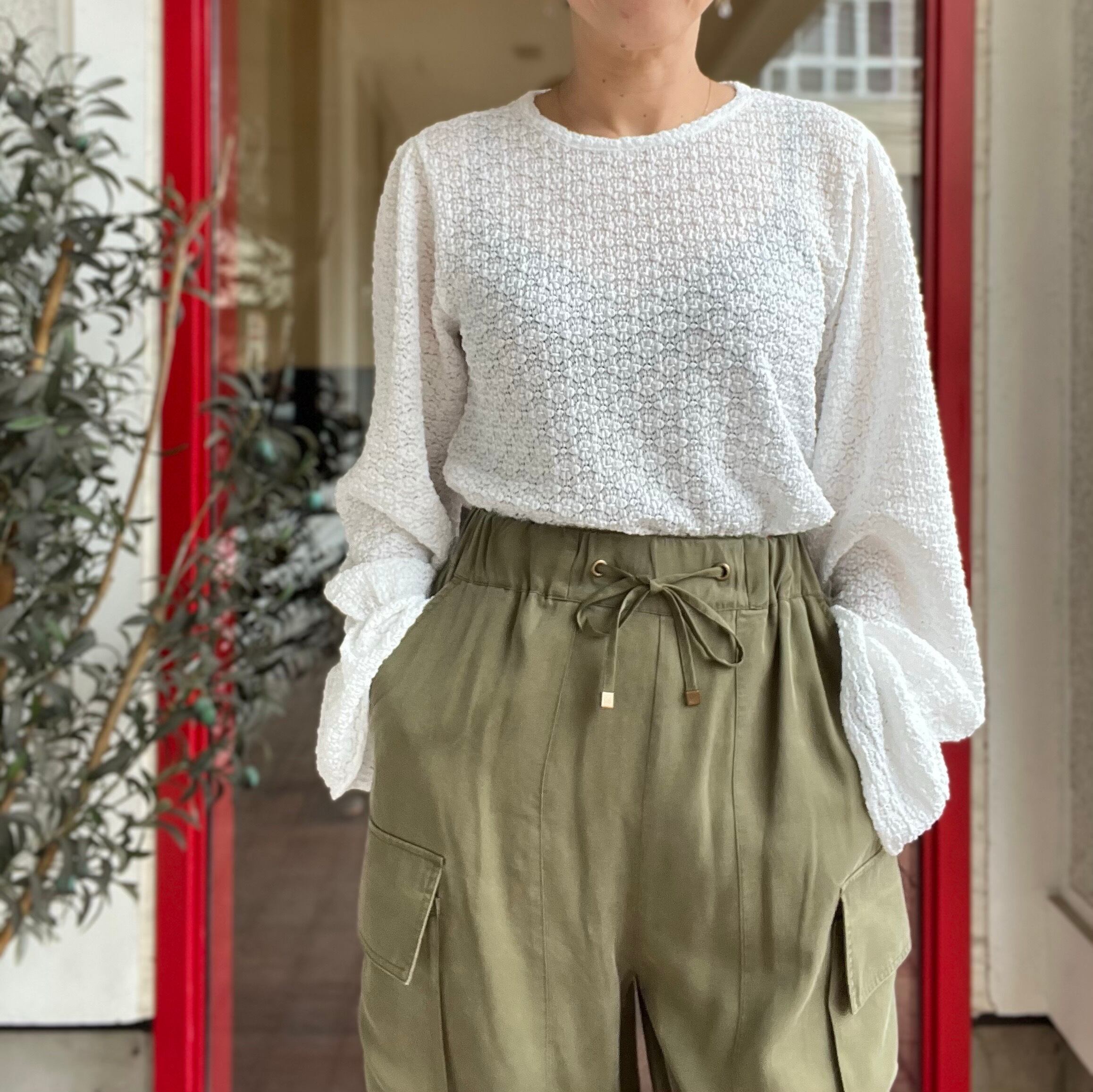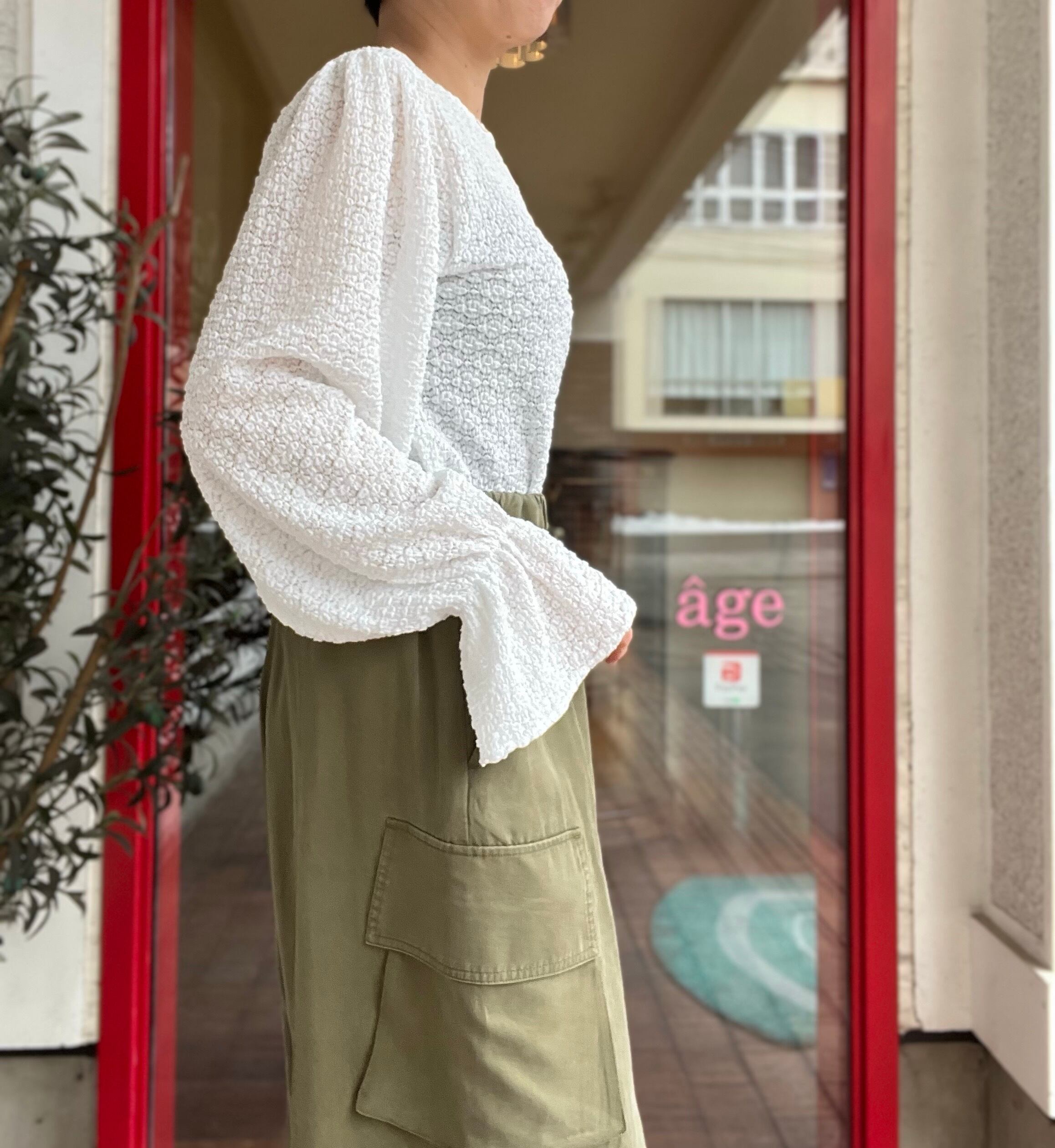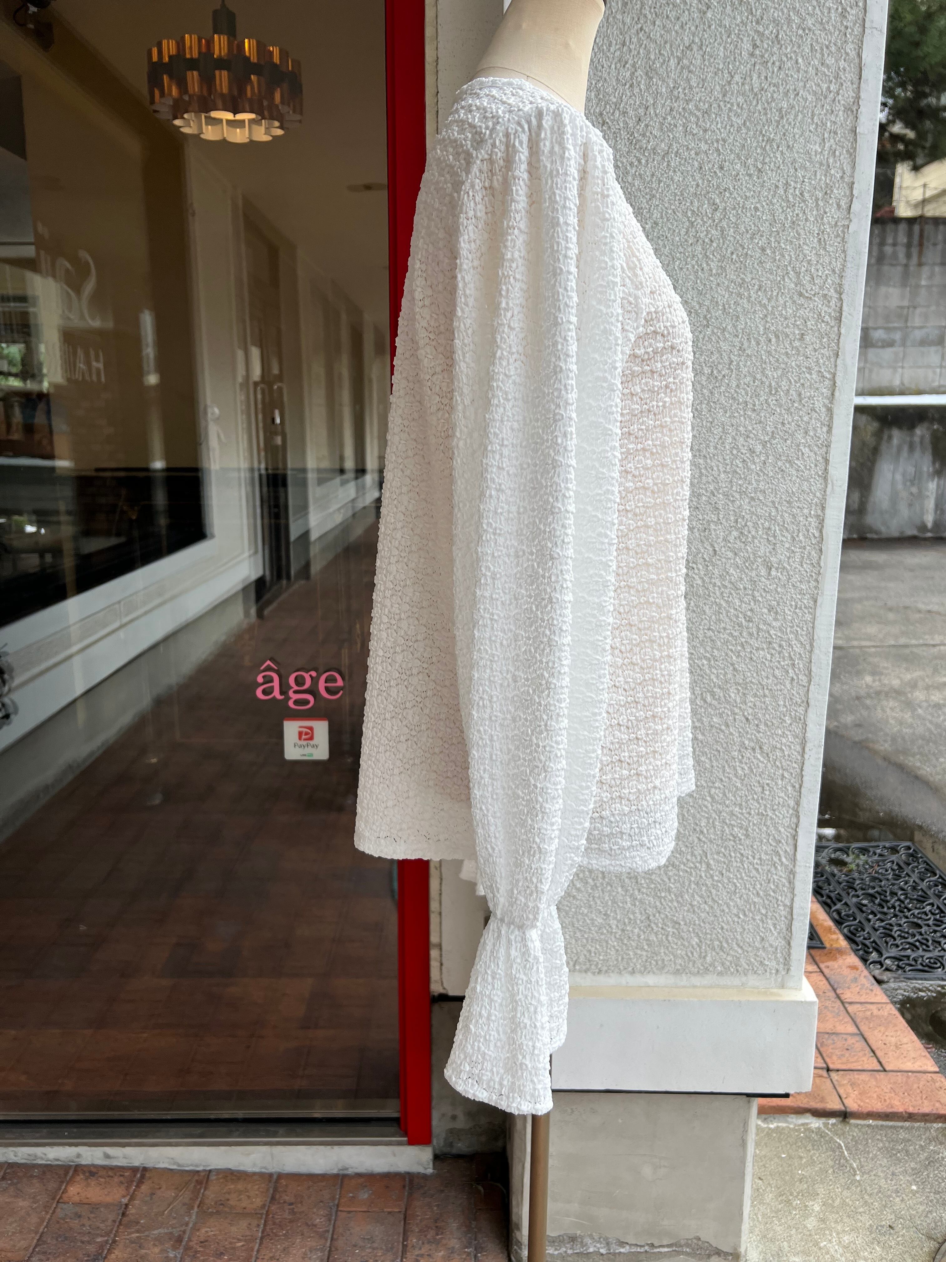ほんのり肌が透ける、一枚でもレイヤードにもフレキシブルに活躍するカットブラウス