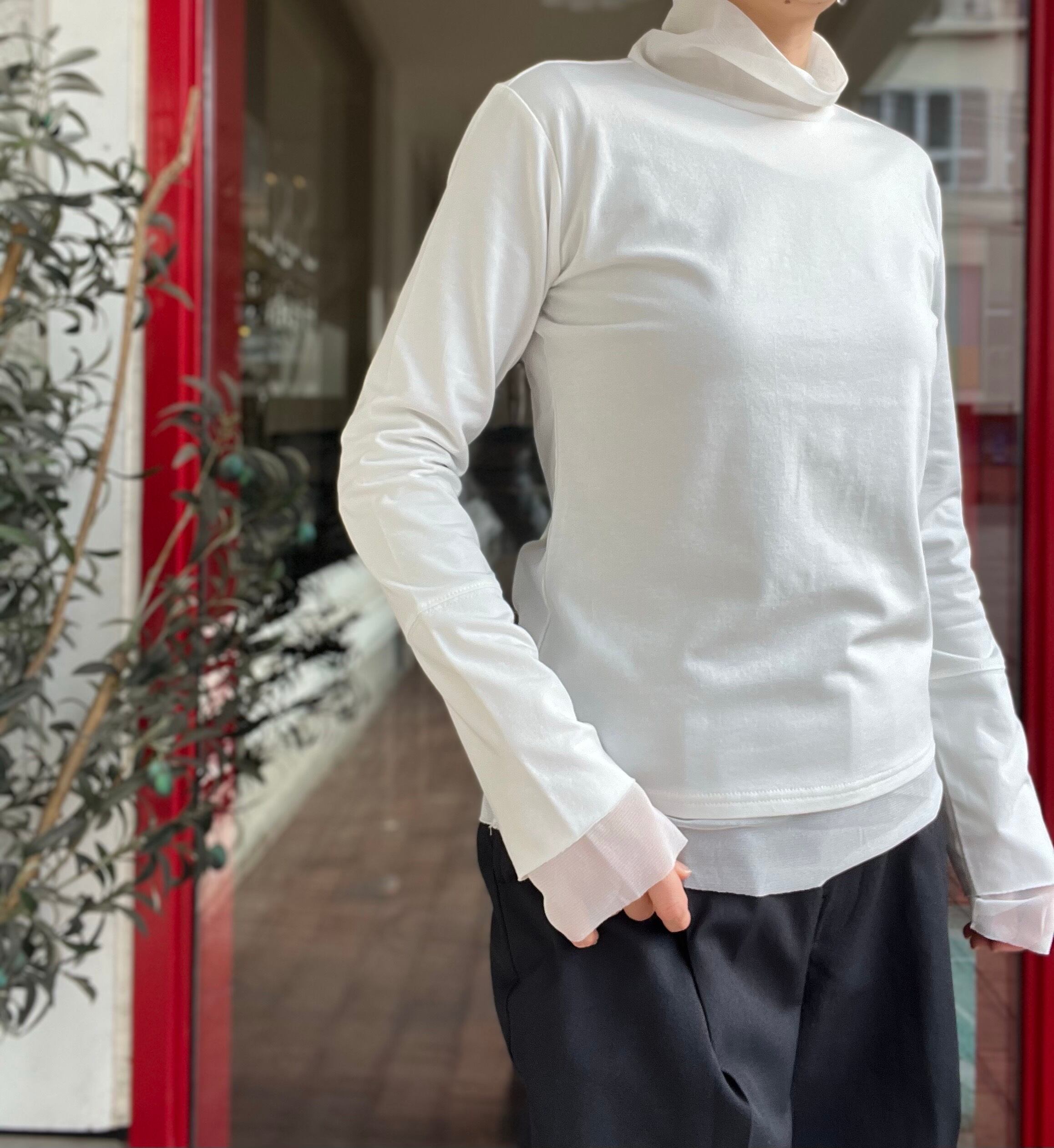 首元、袖口、裾にチュールが施されたインナーに便利なカットソー