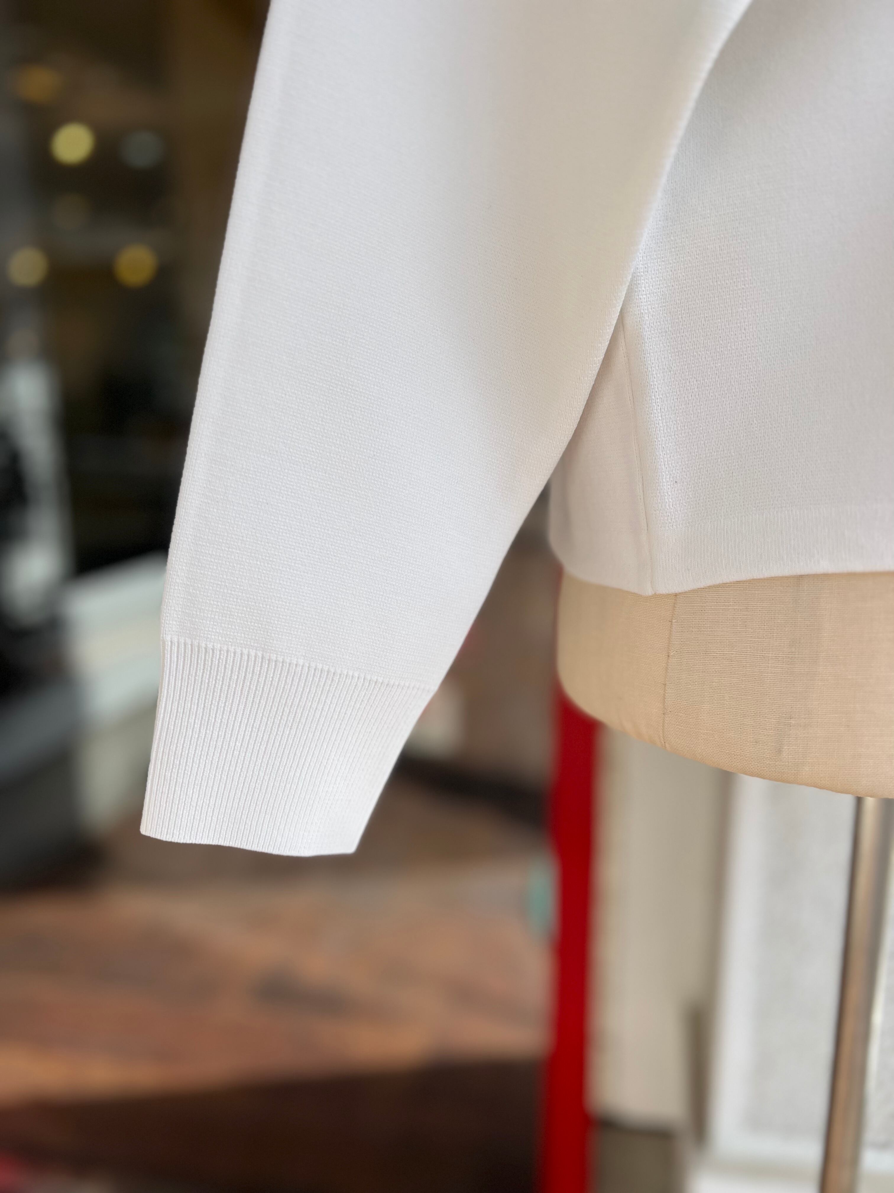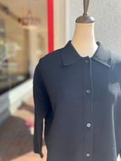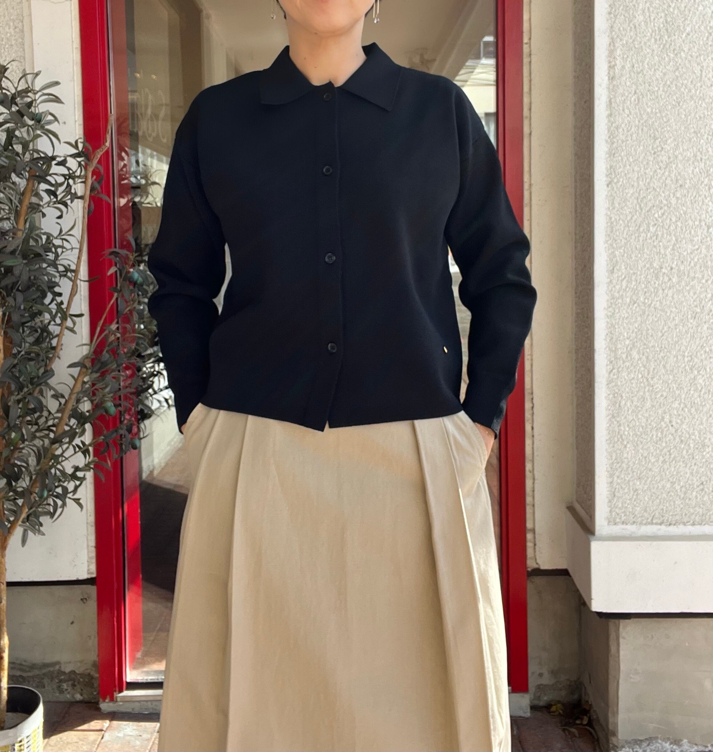 やや厚く、しっかりとした型崩れの少ない襟付きのミラノリブカーディガン