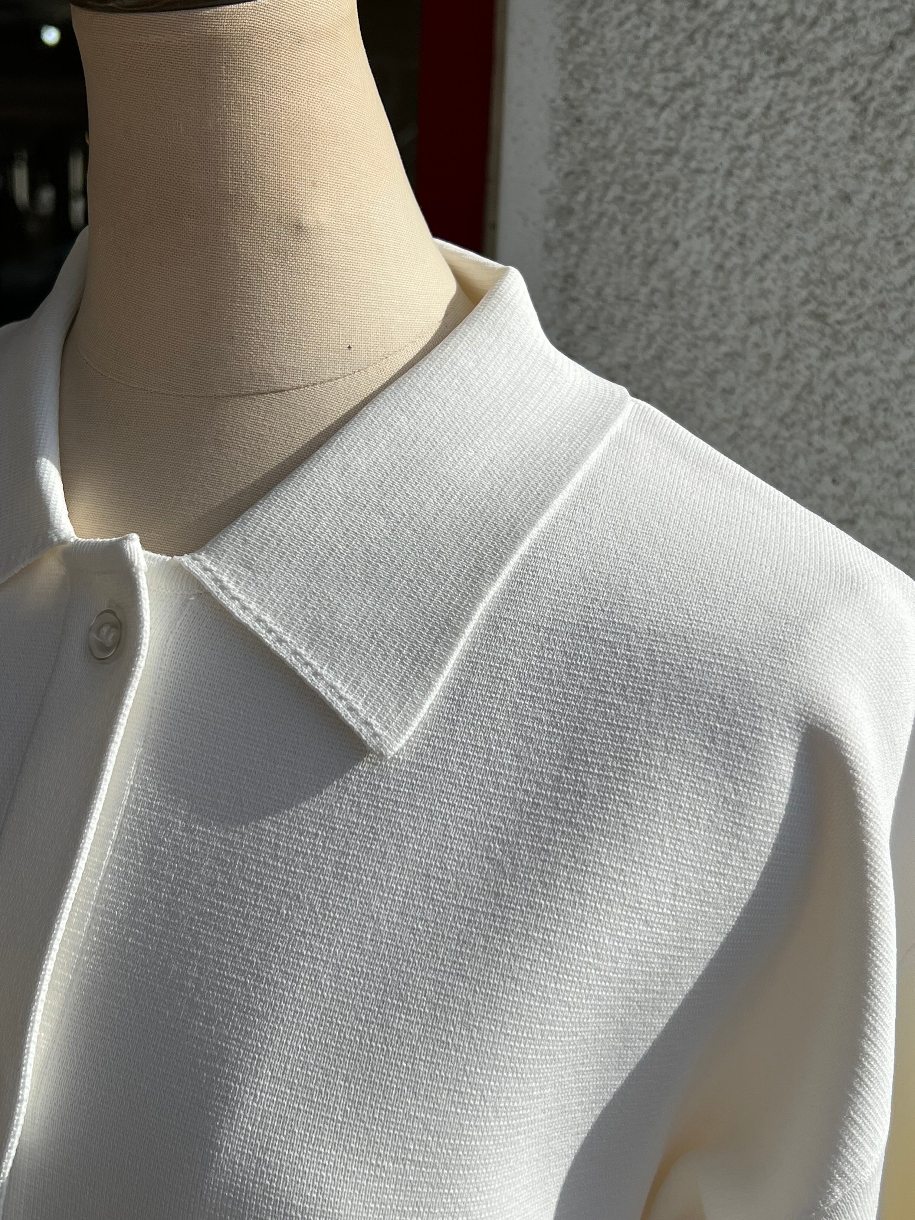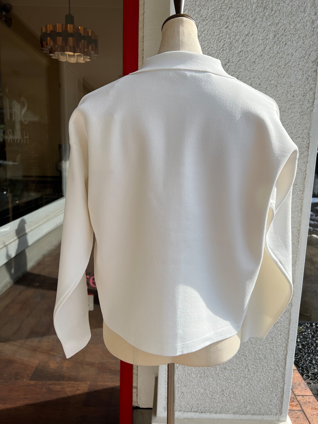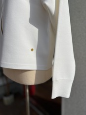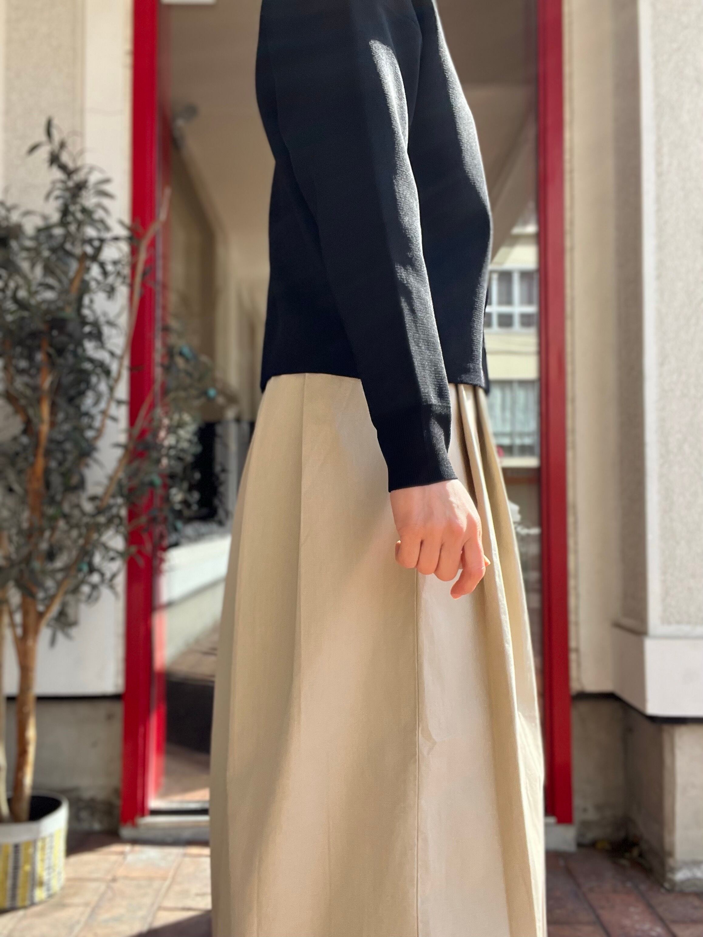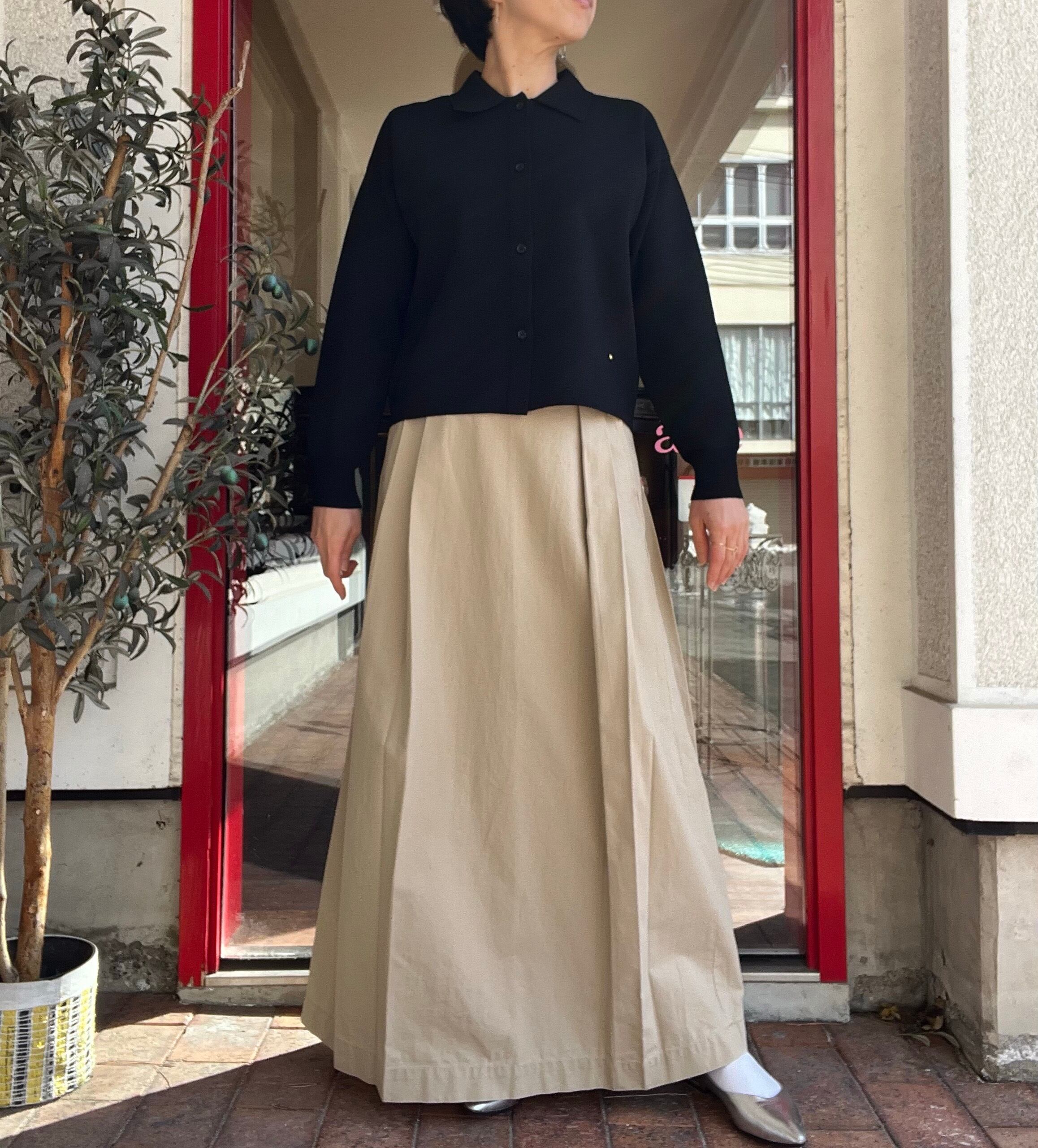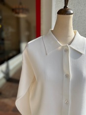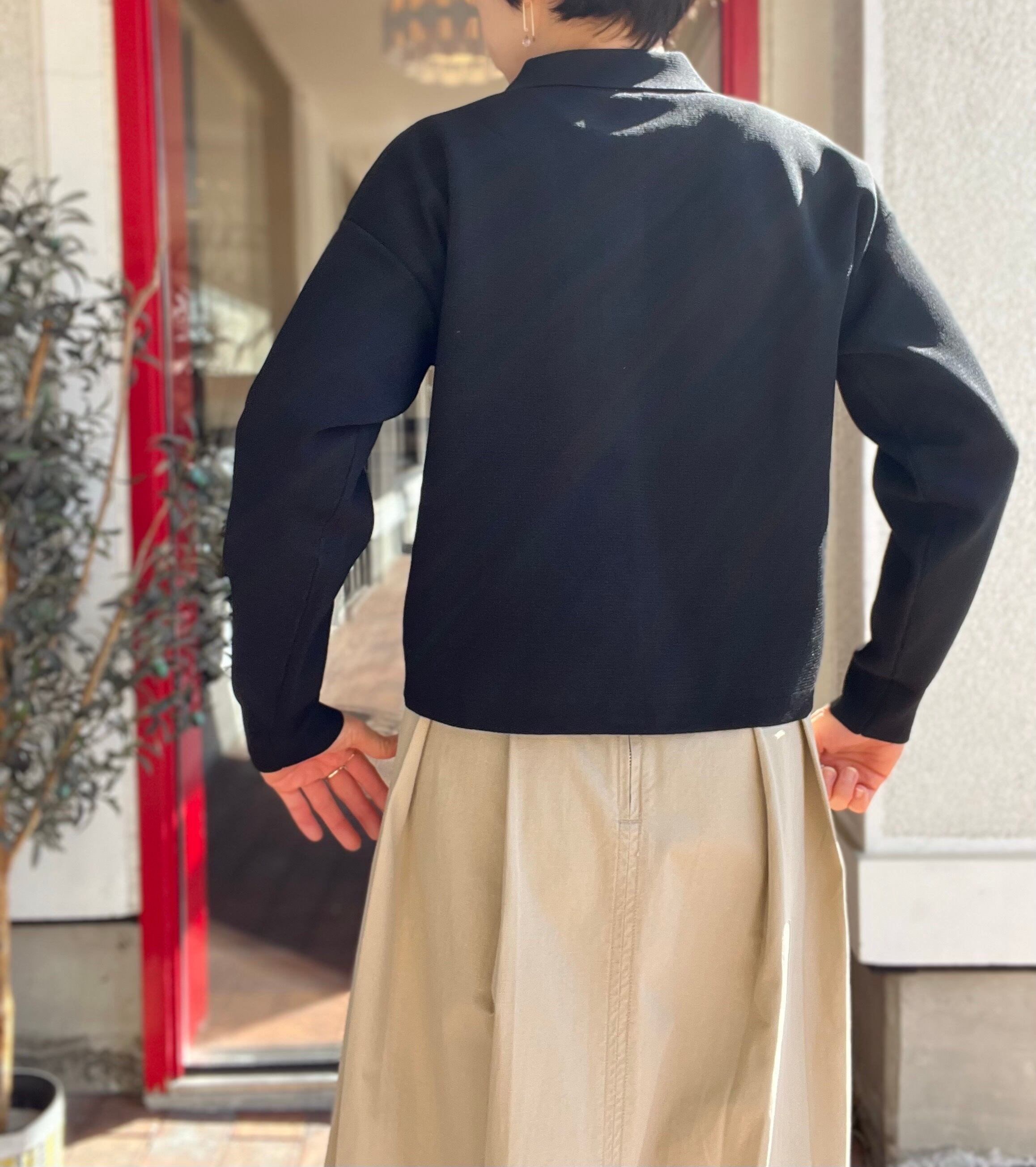 ハリ感がありきれいめで上品な印象があるので、オン、オフどちらでも着て頂けます