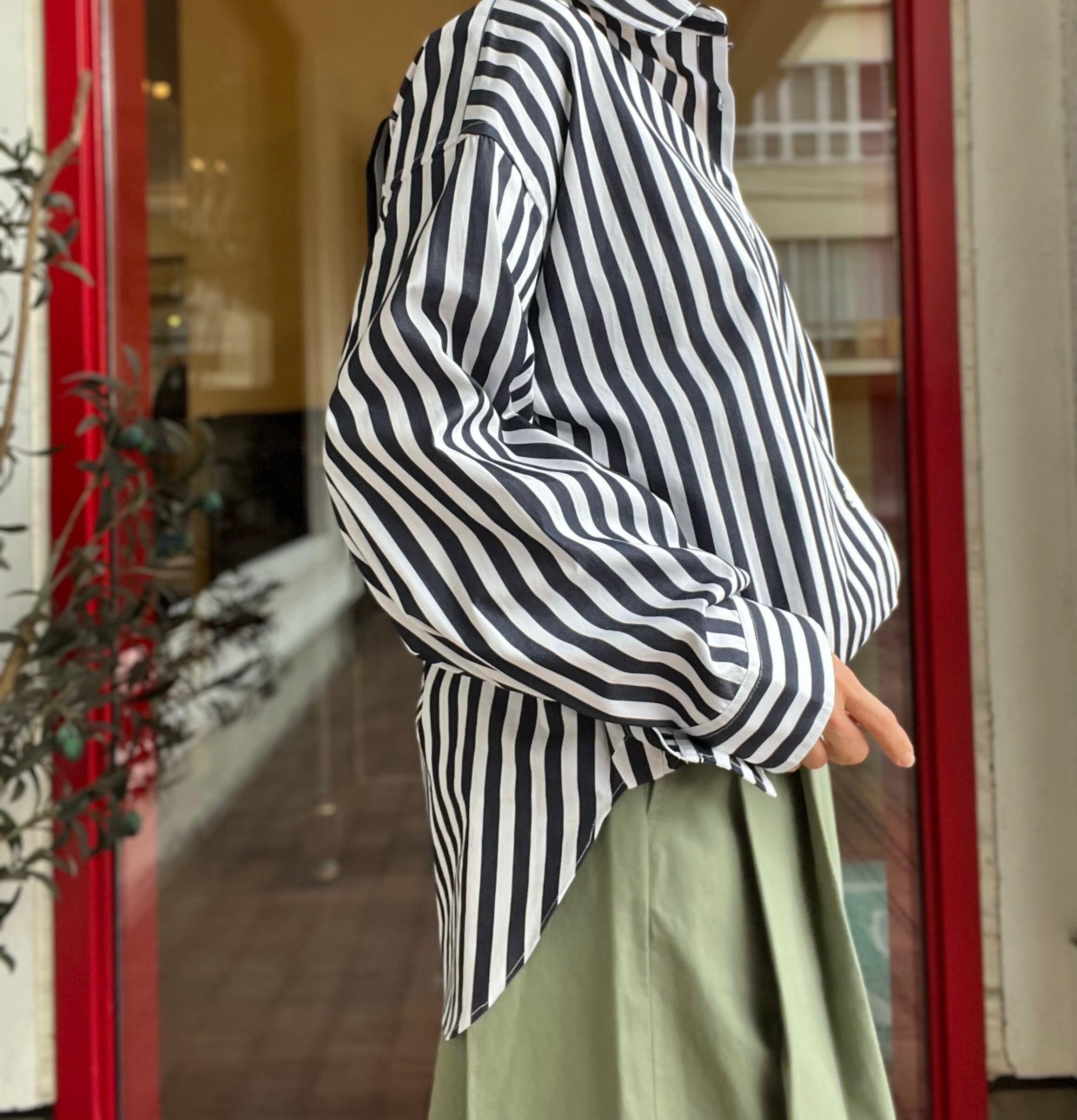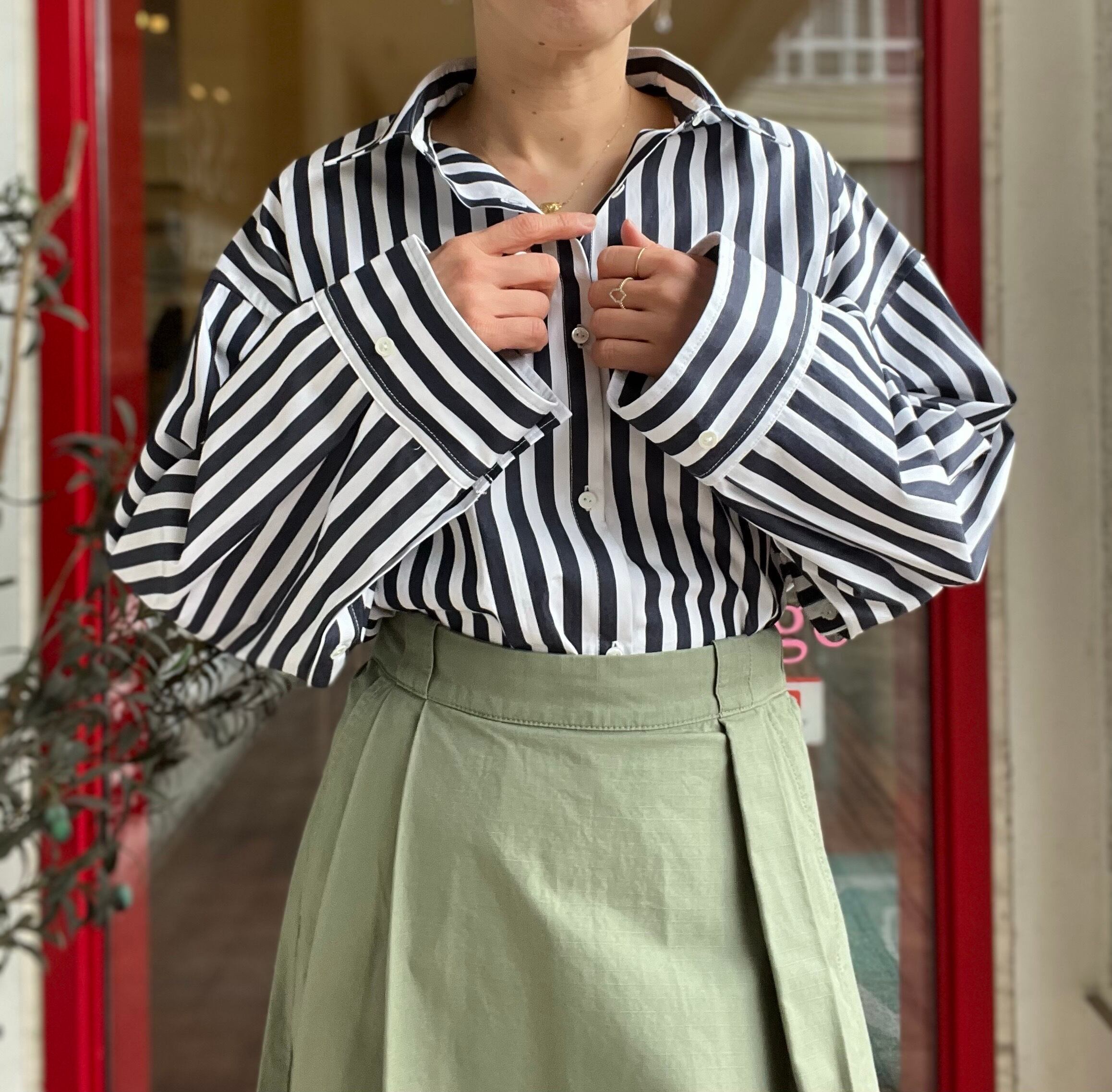 ボタンのアレンジにより①太めの袖②袖を畳み込んでレギュラースリーブ③袖下の釦を開けてポンチョ風の袖とスタイリングに合わせて様々な変化を楽しめます