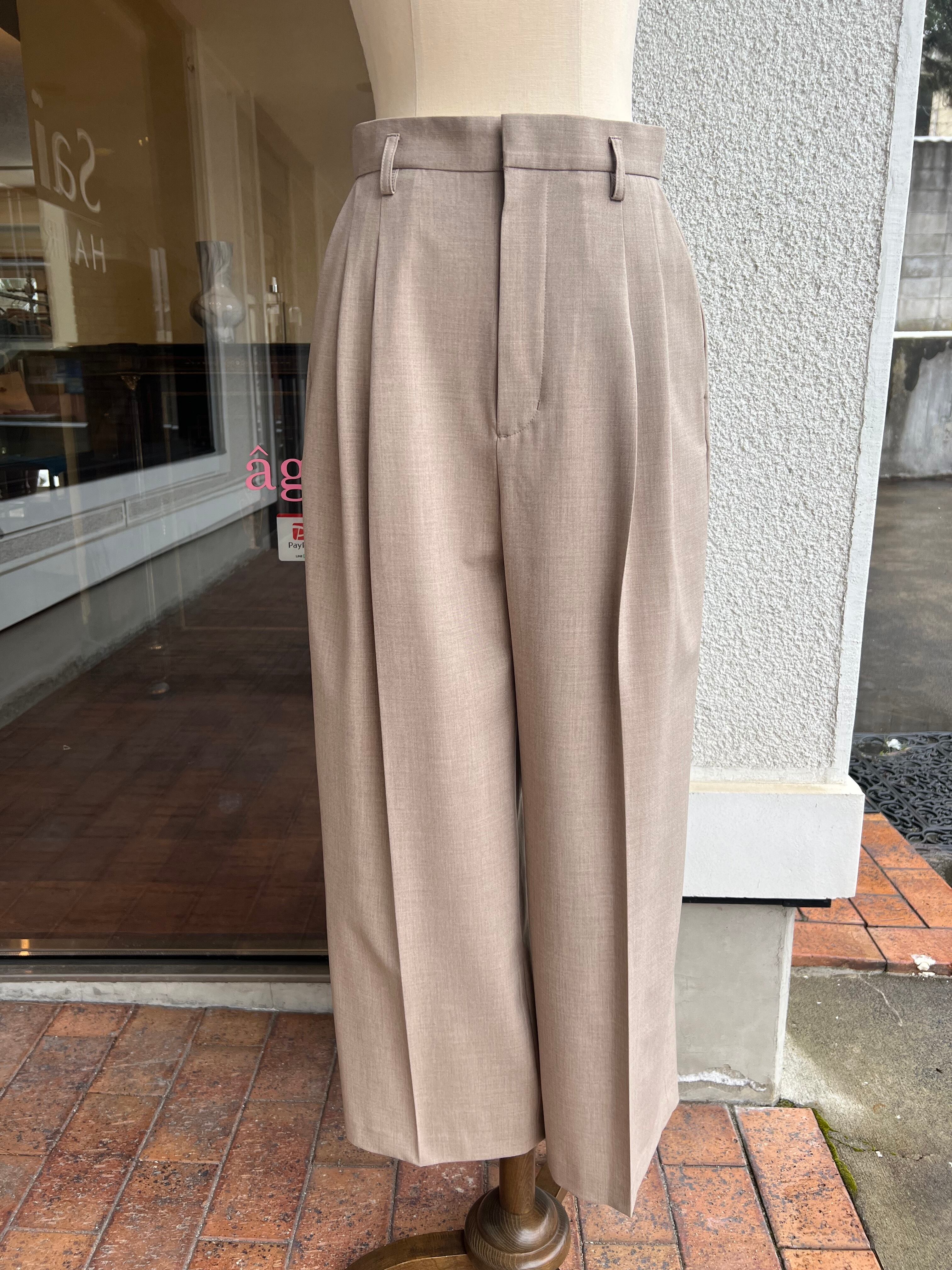 マクルール 梳毛長タックトラウザーパンツ