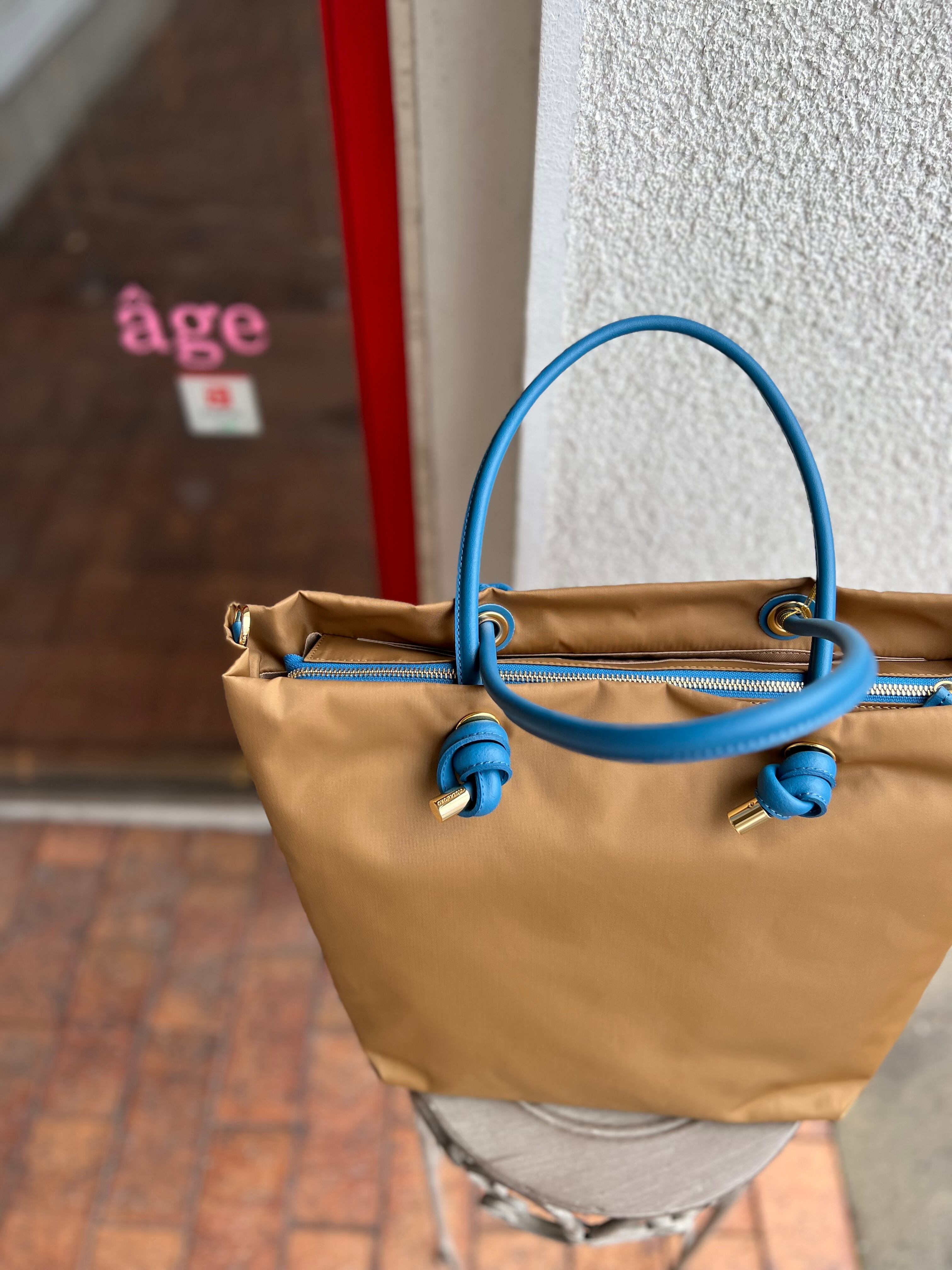 シンプルなデザインのボディにノットハンドルがアクセントになったトートバッグのMLサイズ