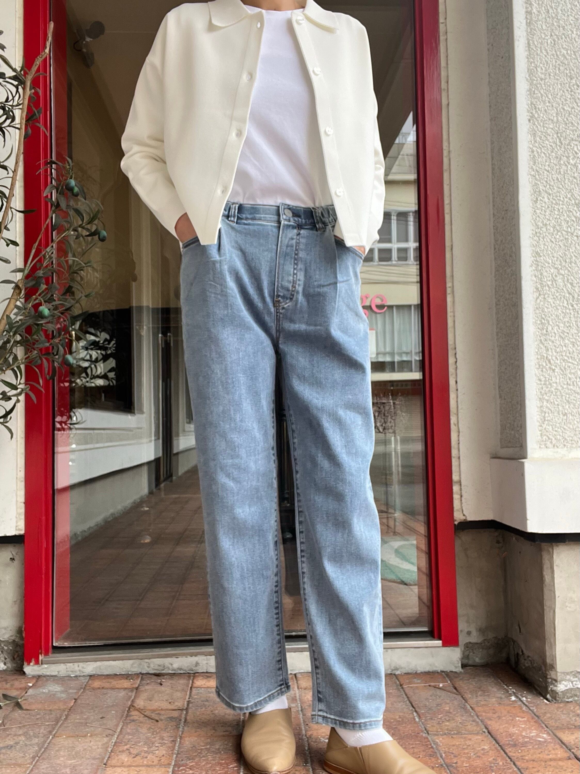 クールマックス糸を使い甘く織りあげた涼しくかるいデニム なので夏にも穿きやすく