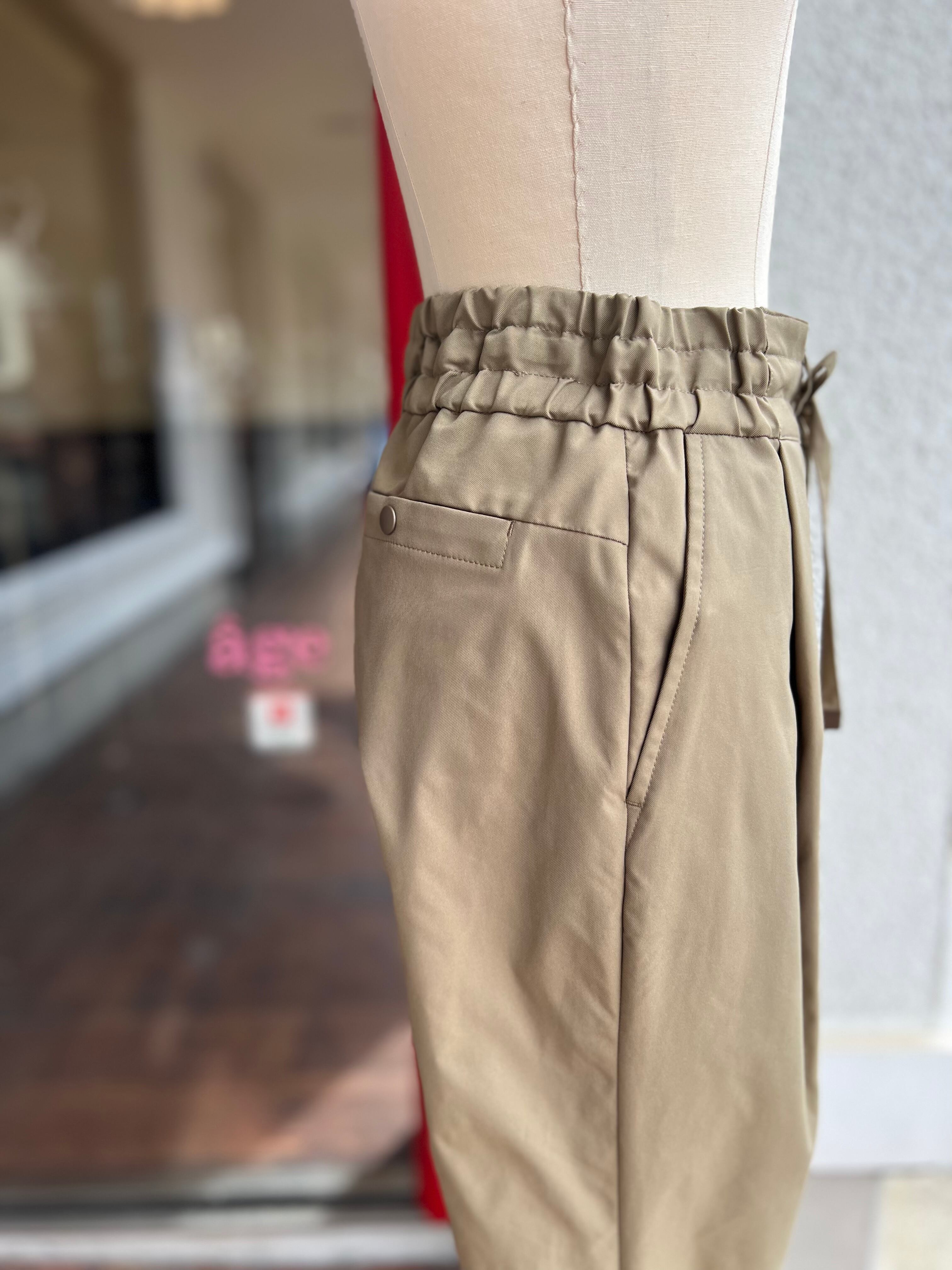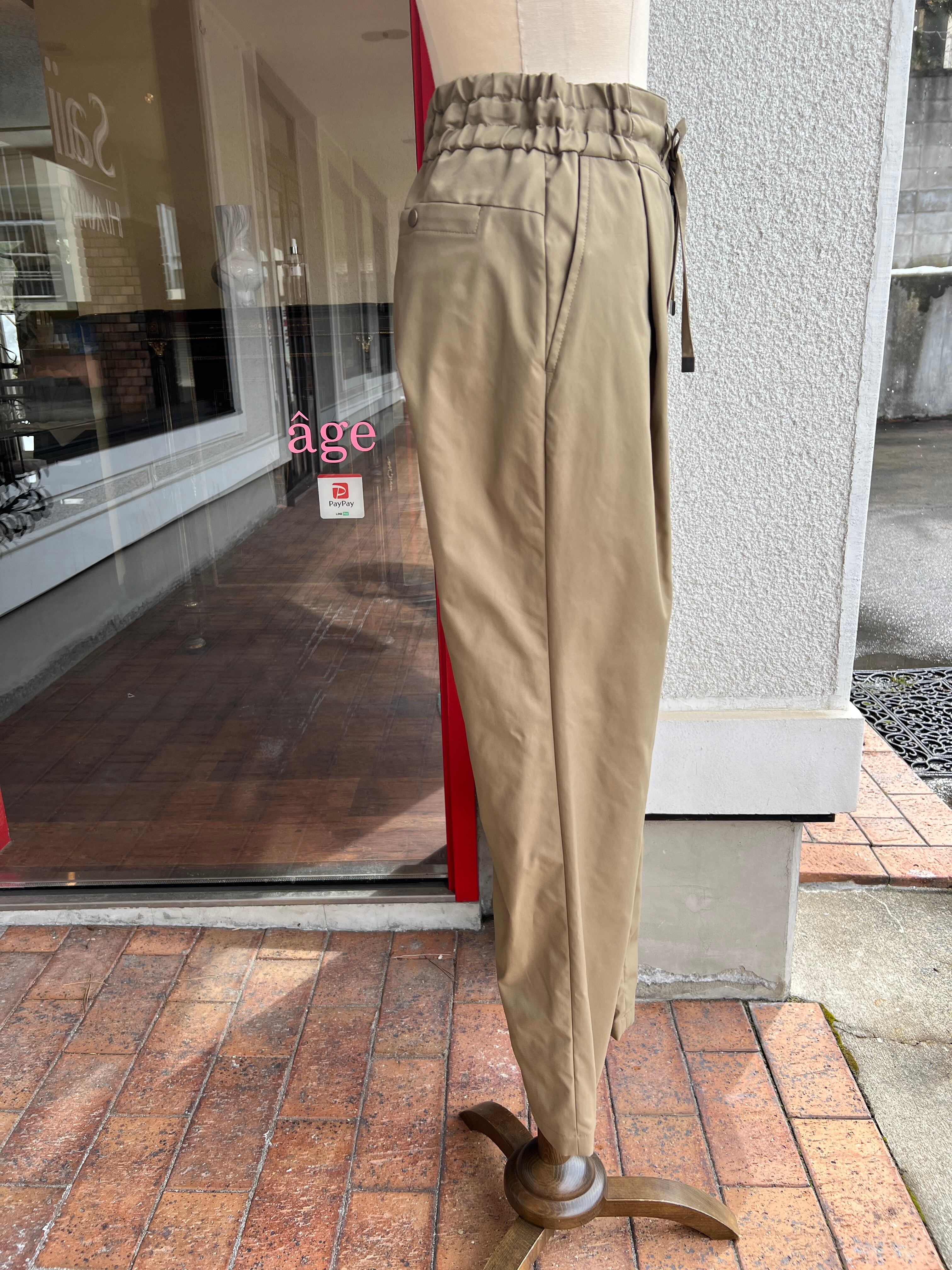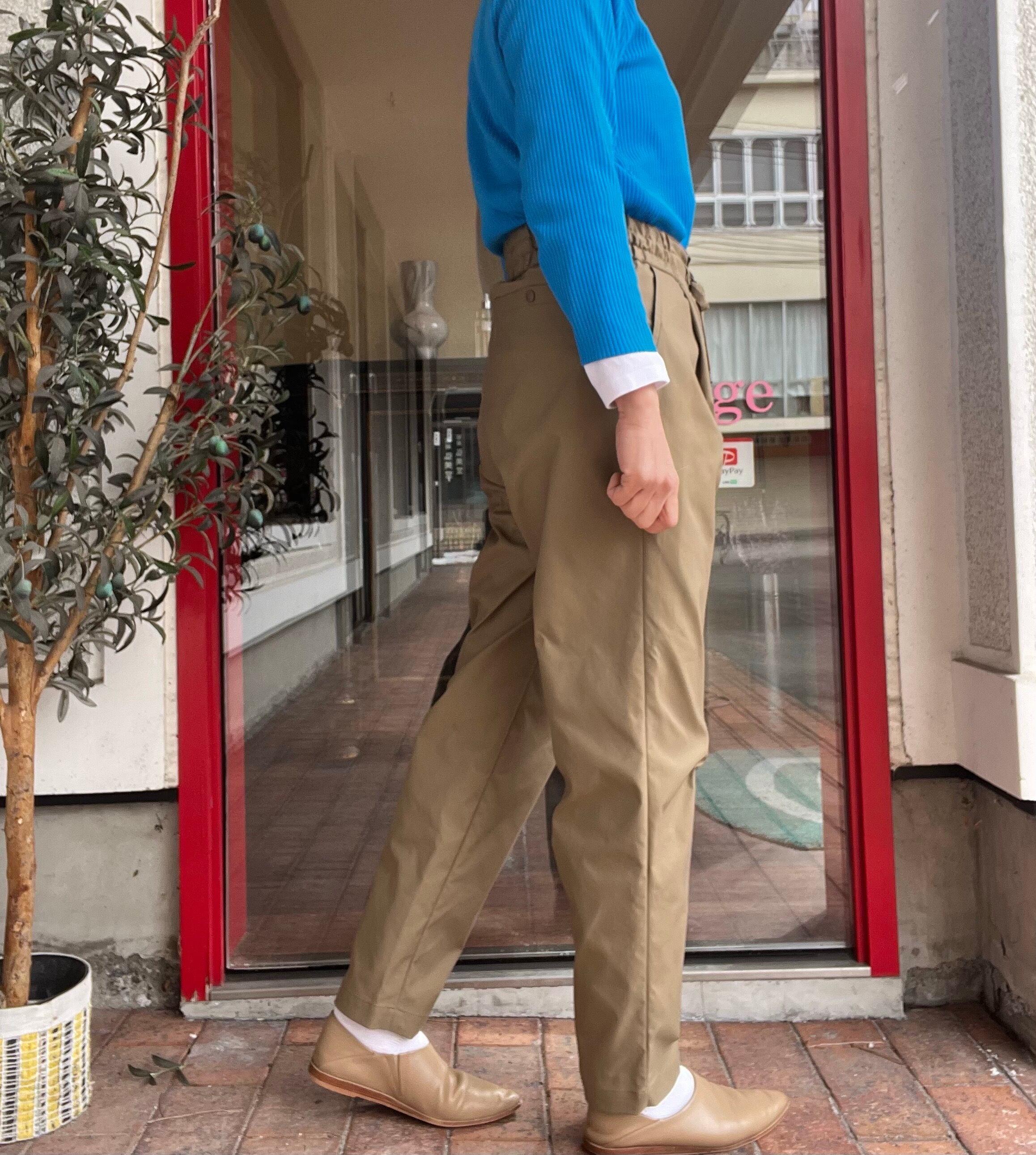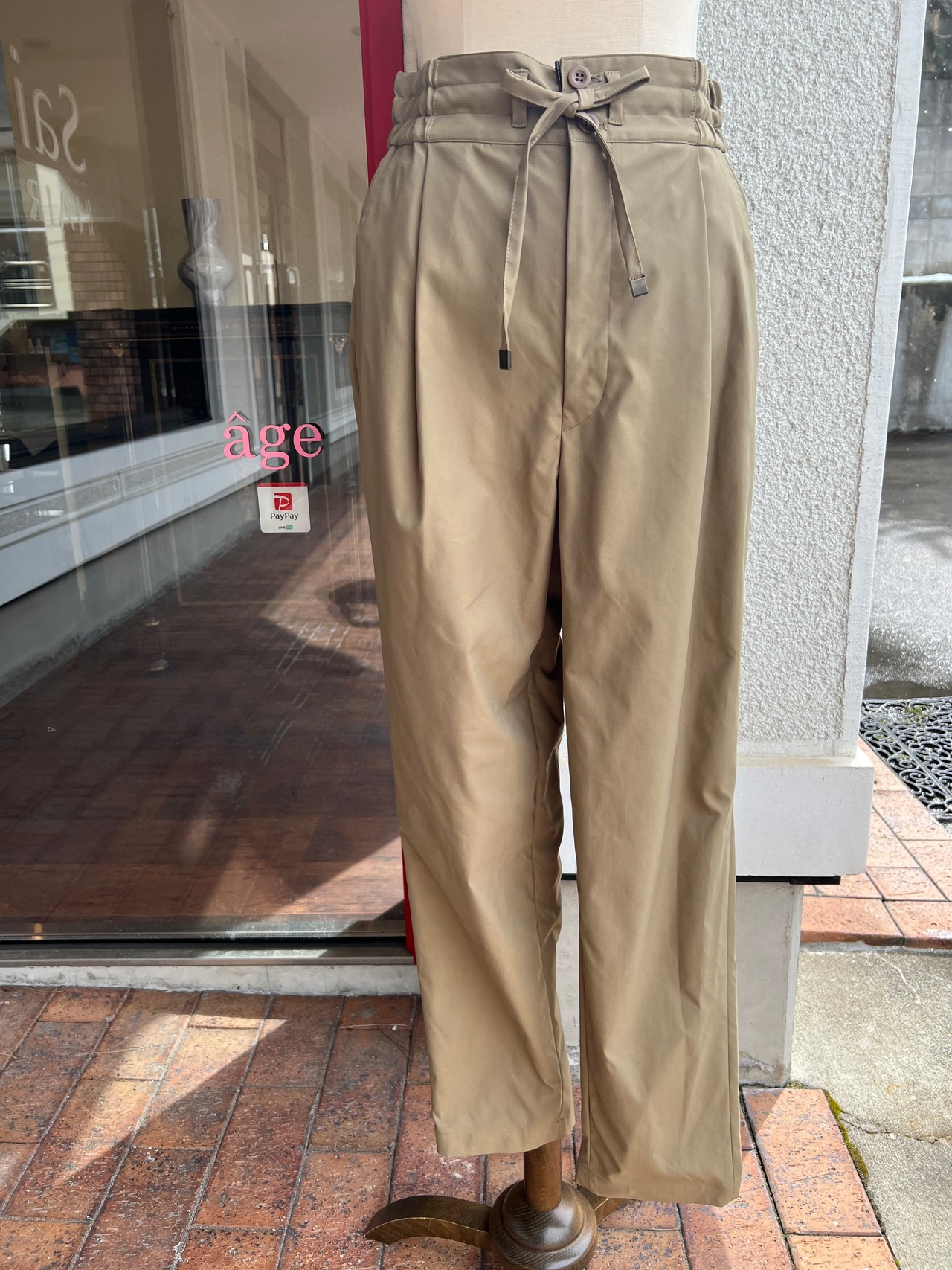 今シーズンは生地をツイルに変更し、綿のような天然素材見えする薄手の生地を仕様してますご家庭でのケアができ、速乾、ストレッチも効き、撥水加工も施され、耐シワ性と機能も兼ね備えたテーパード型パンツ