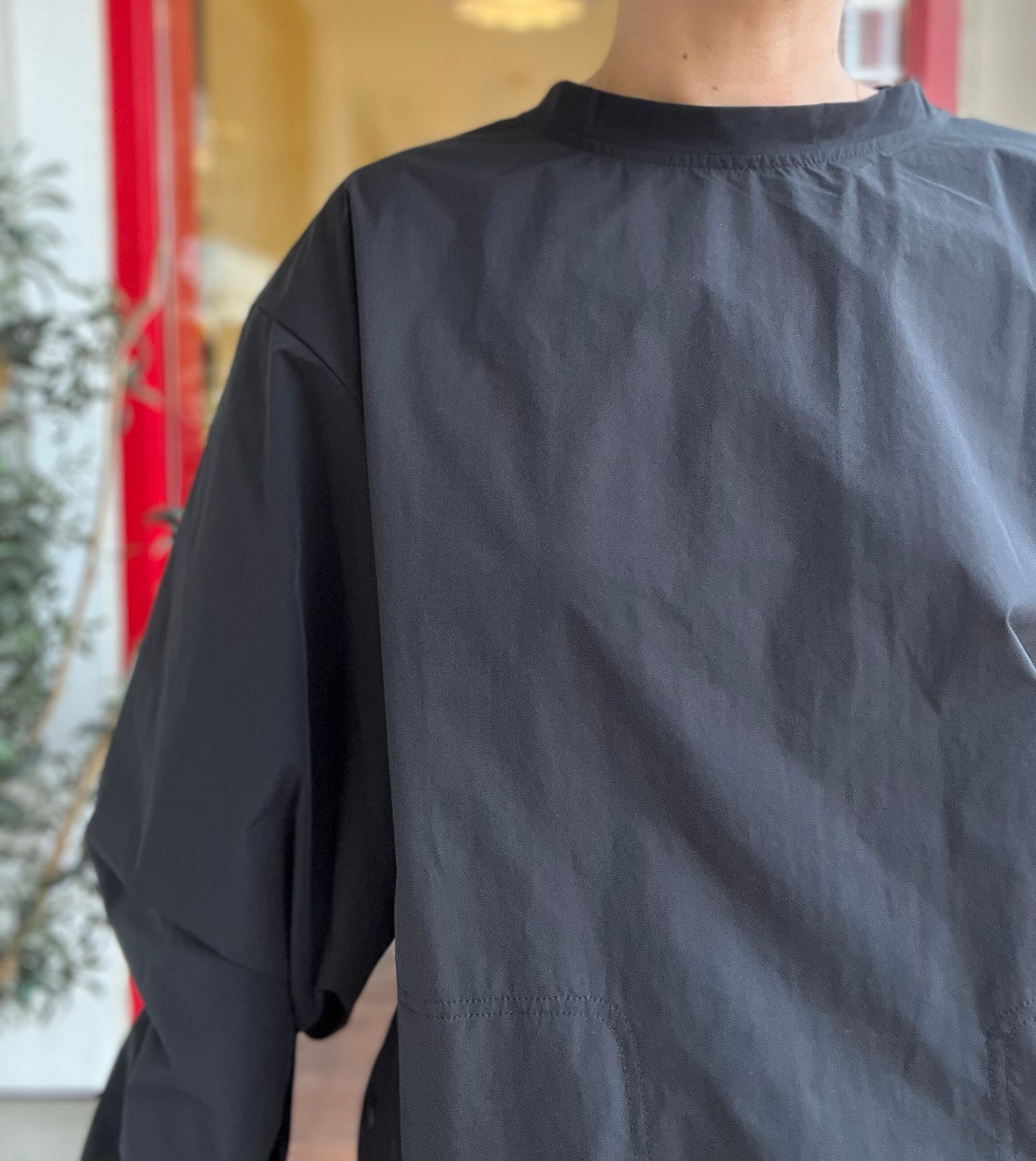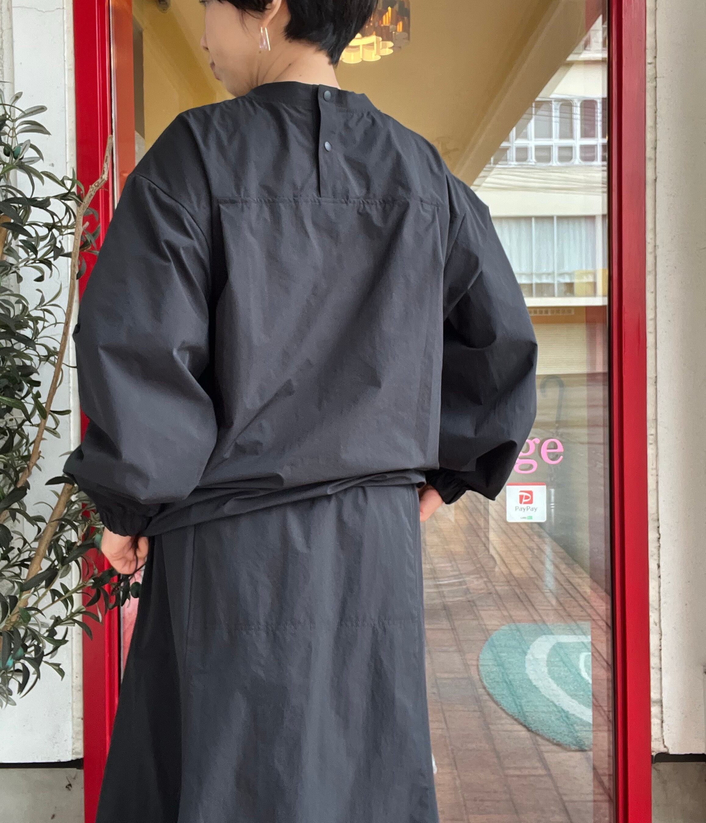 ハイテクポリエステルタイプライターを使用したポケッタブル仕様のプルオーバーブラウス