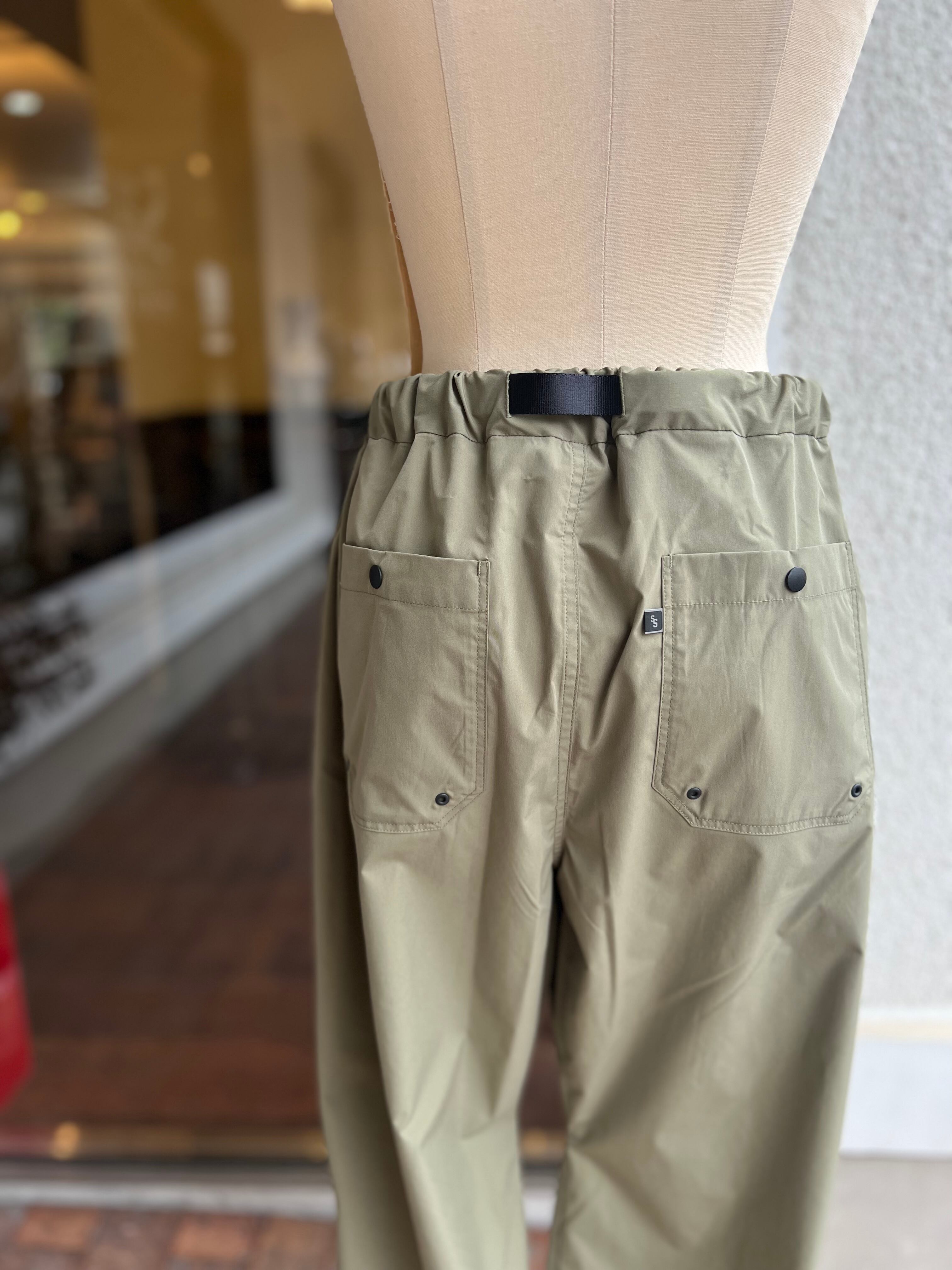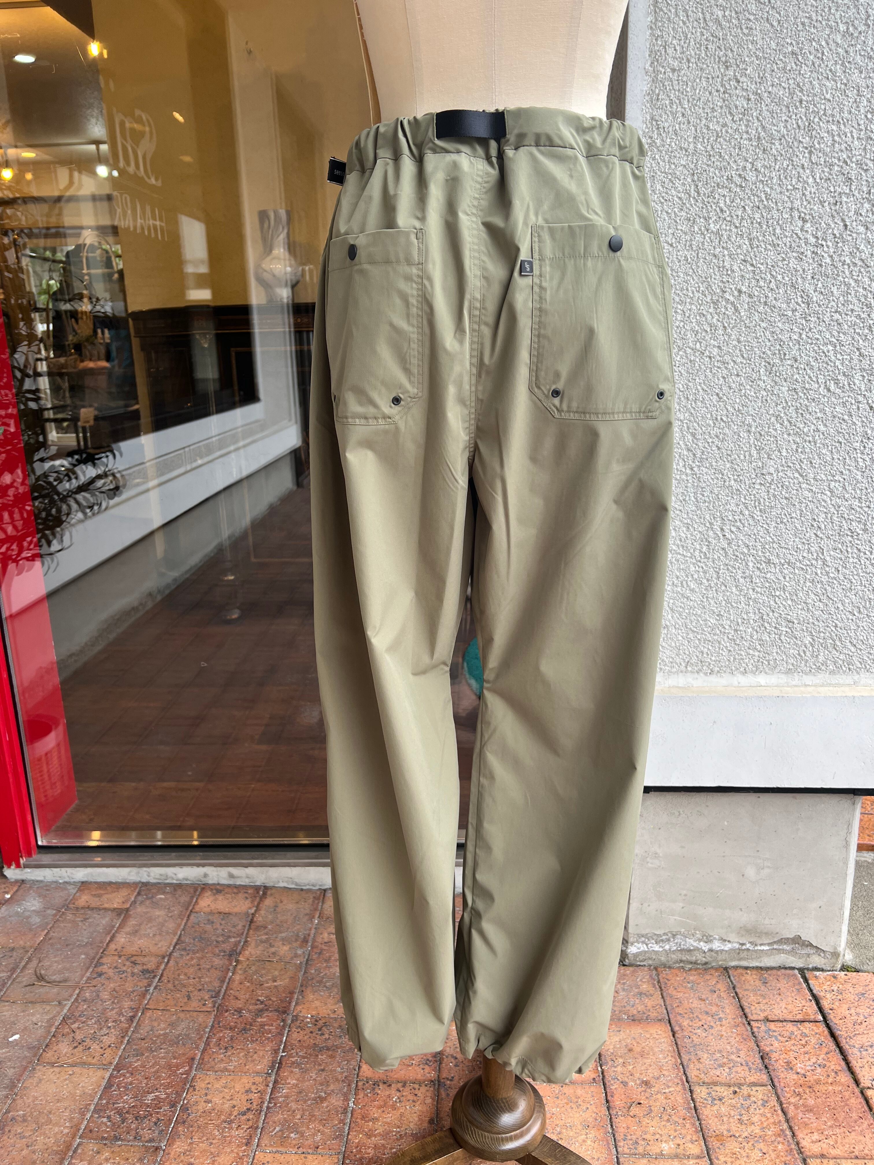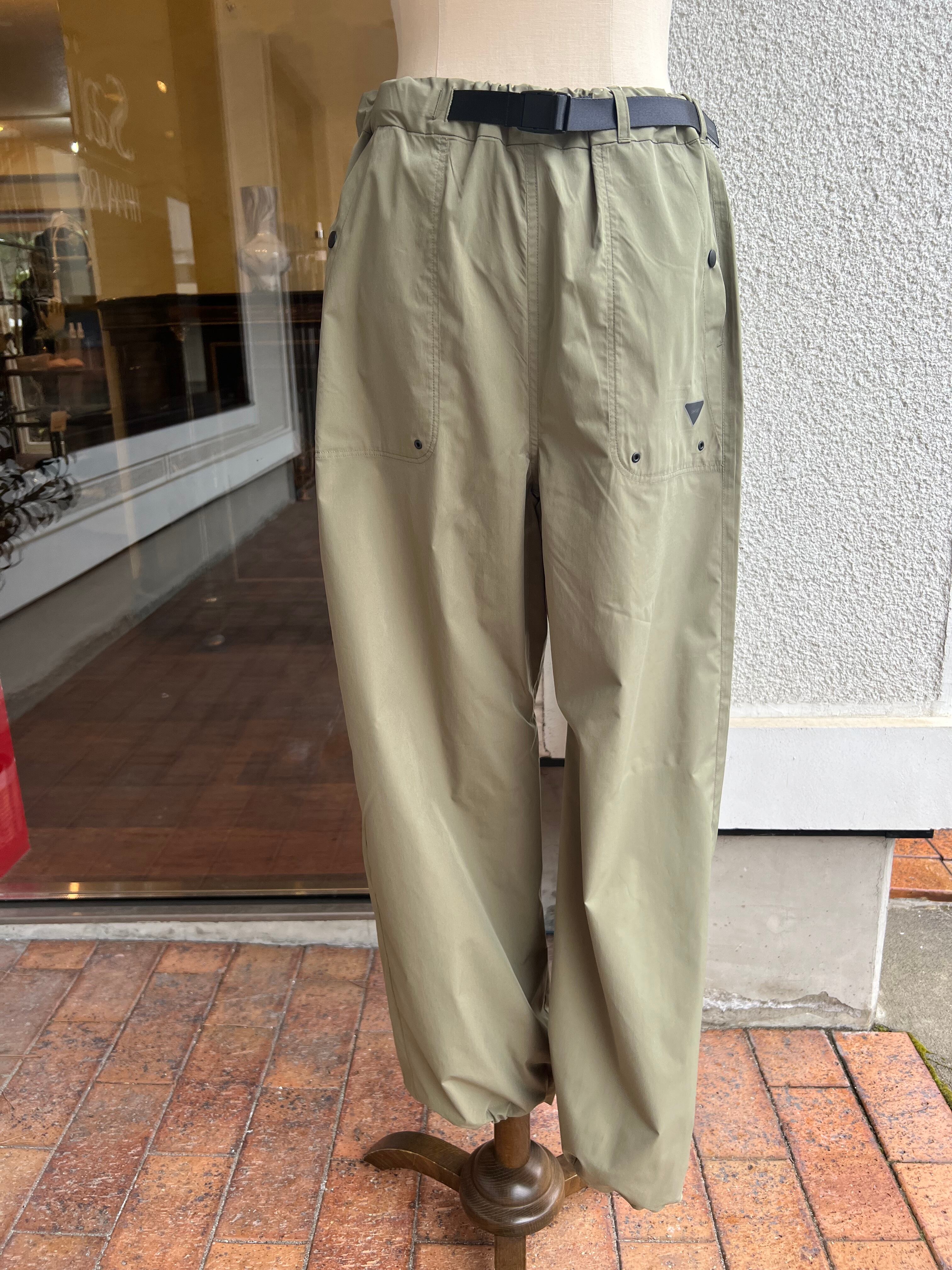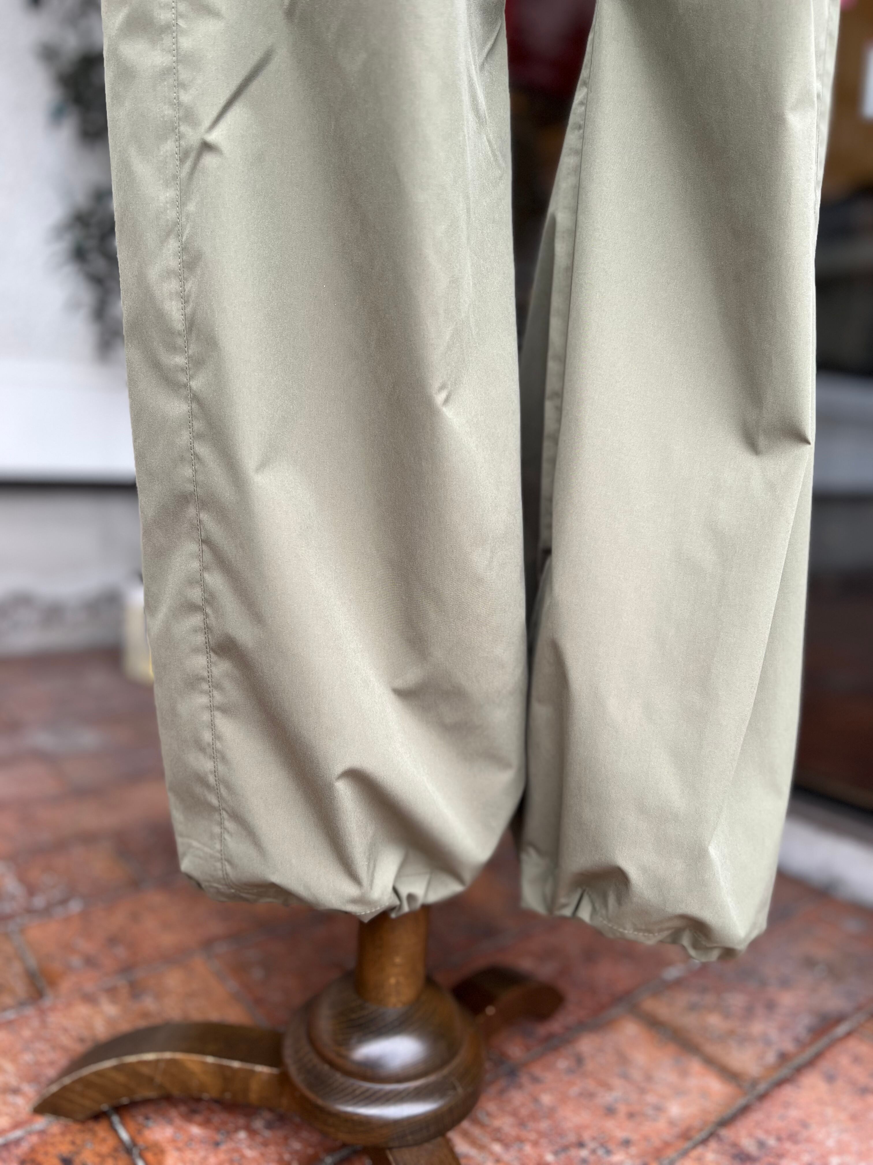 裾のドローコードを絞りパラシュートパンツのシルエットも楽しめます
