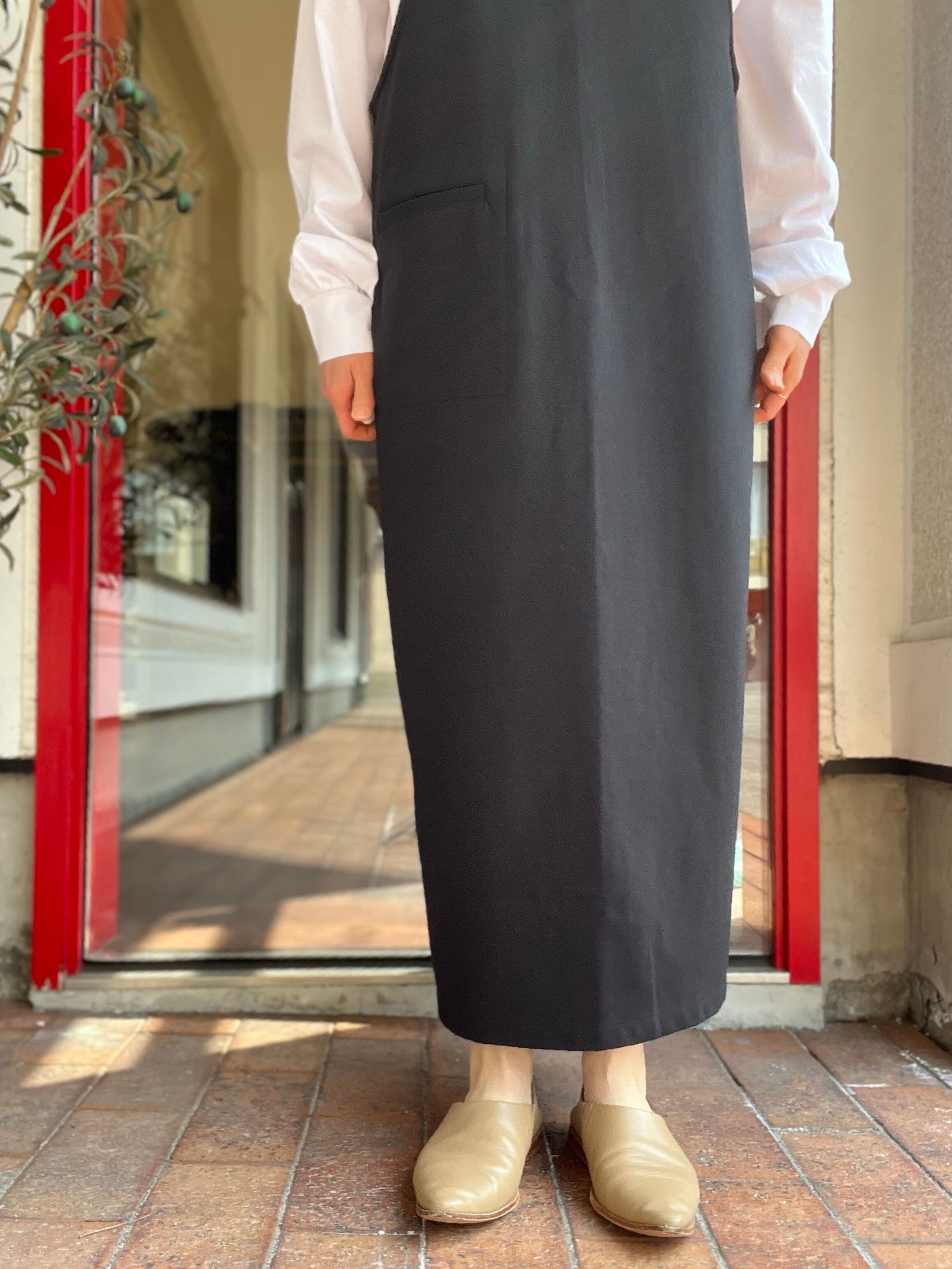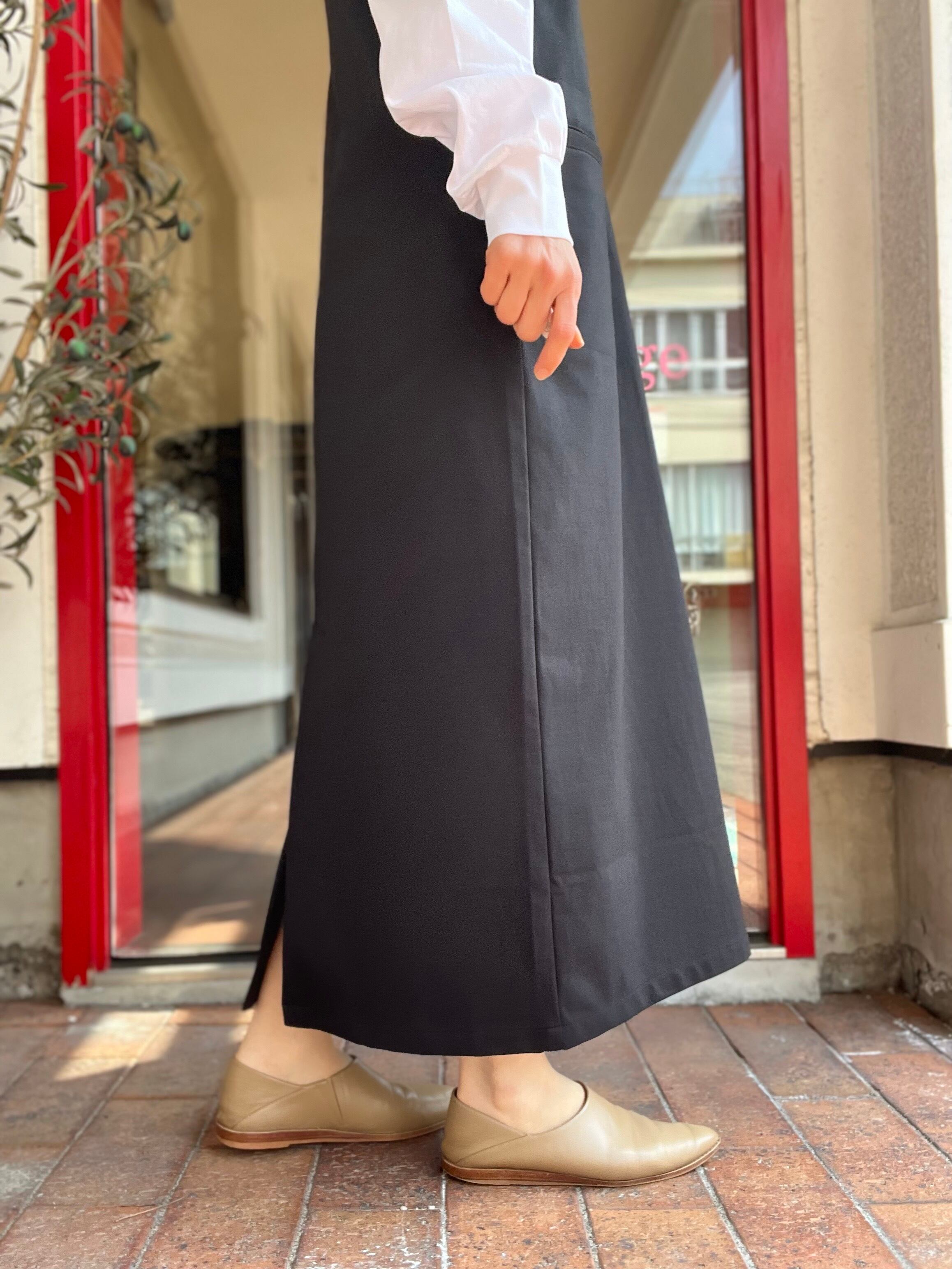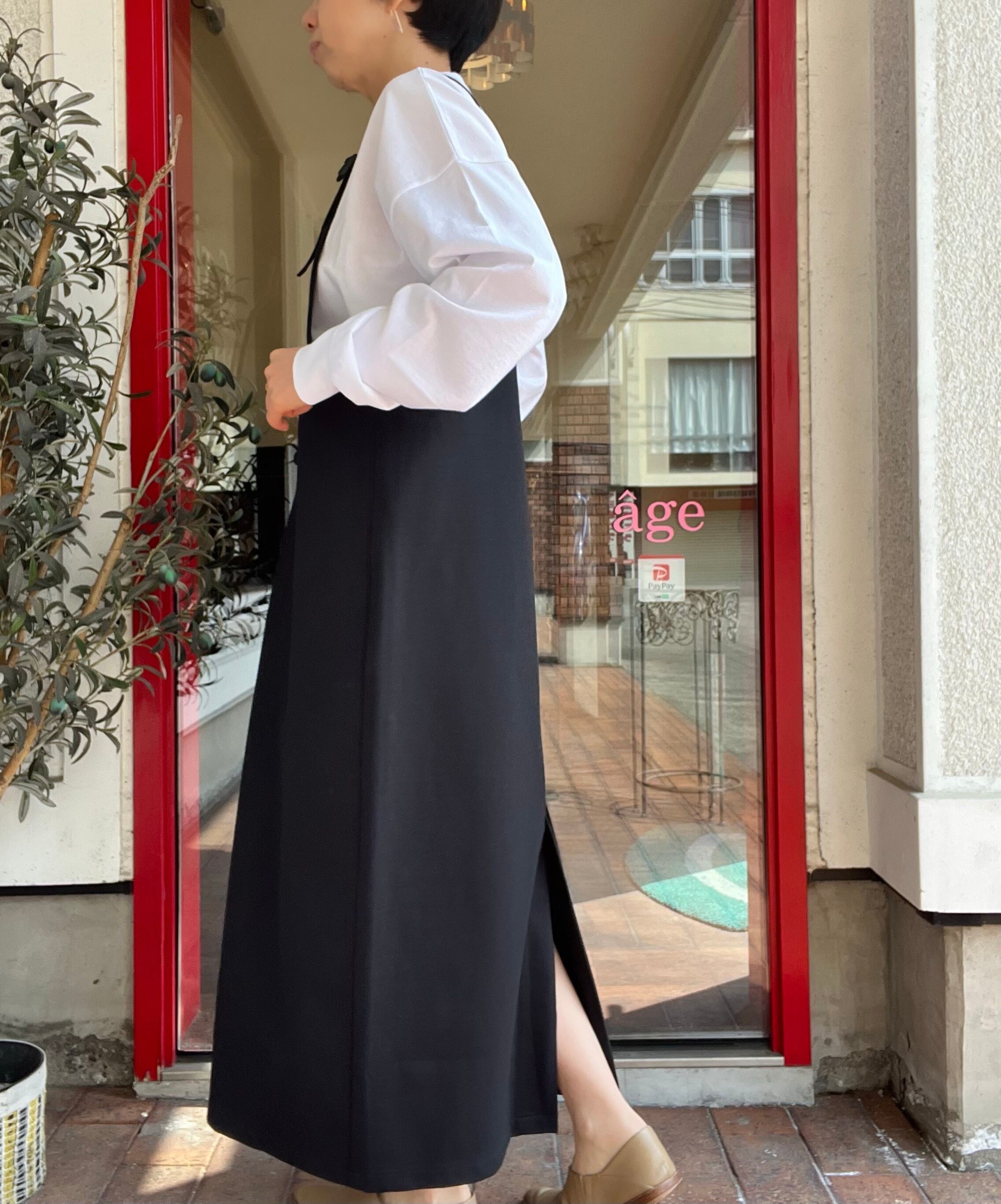 後ろ裾にスリットがあるので脚さばきが良く、身体をラクに包む直線的なシルエットです