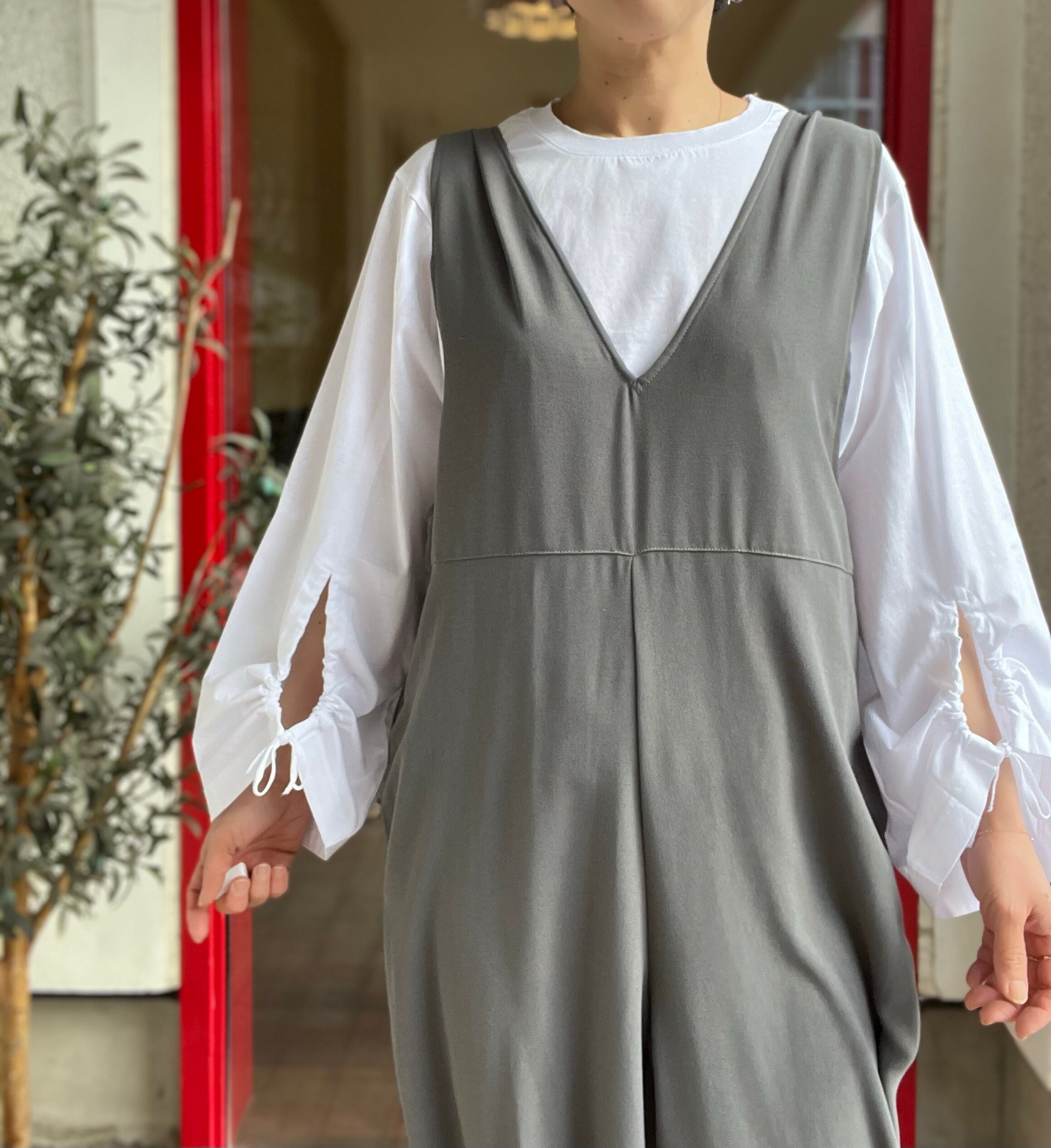 程よくゆったりとしながら、大人っぽく着こなして頂けるサロペットです