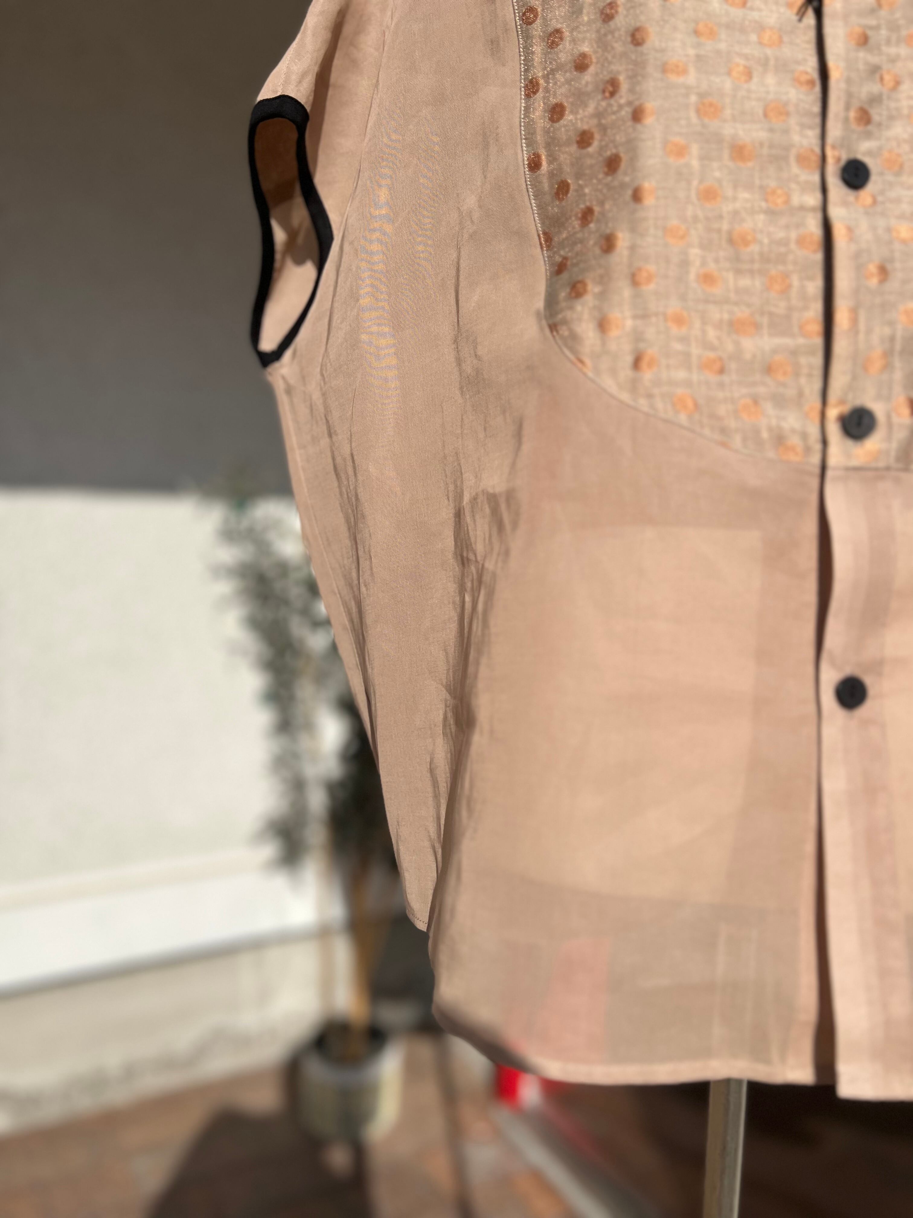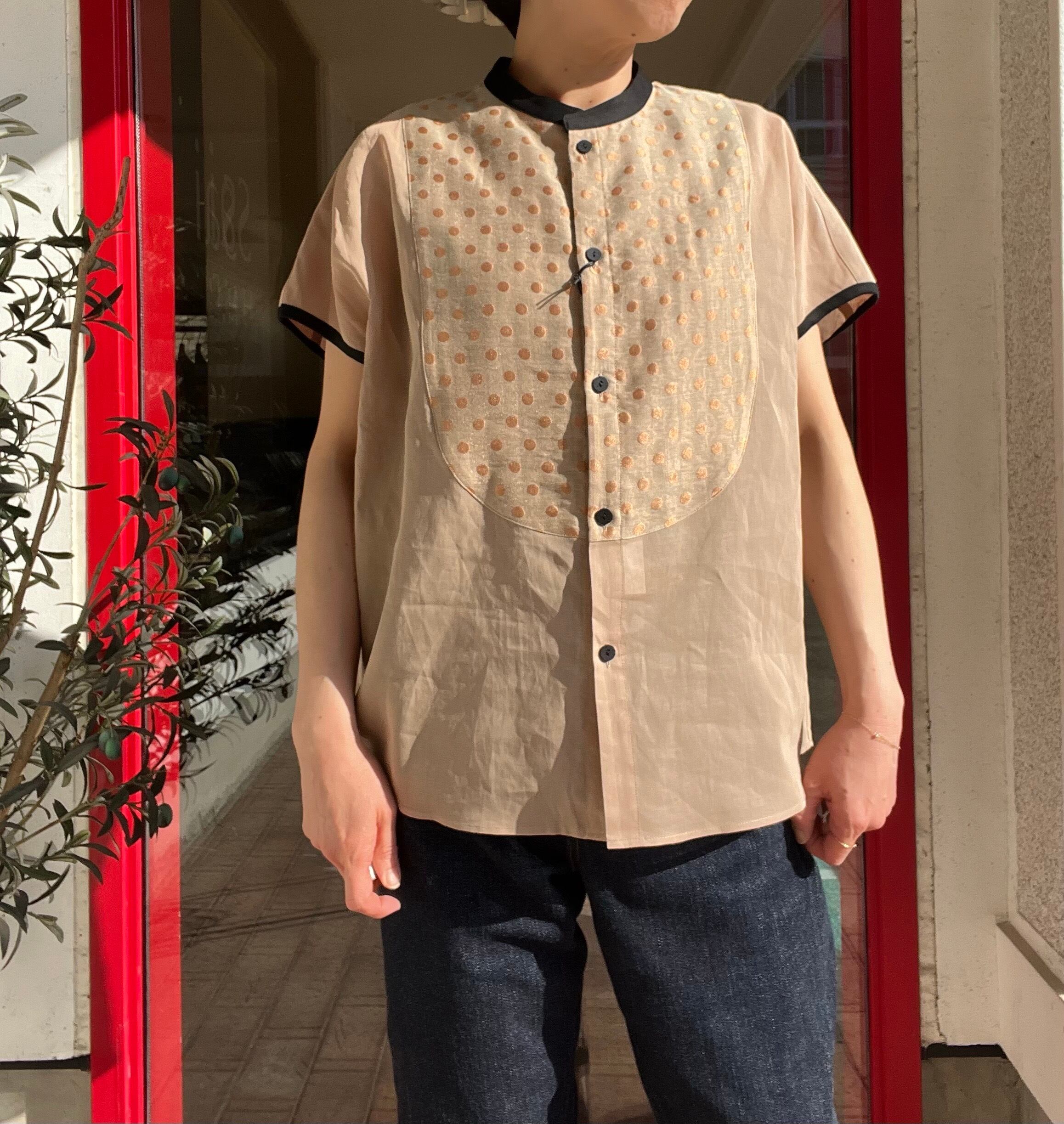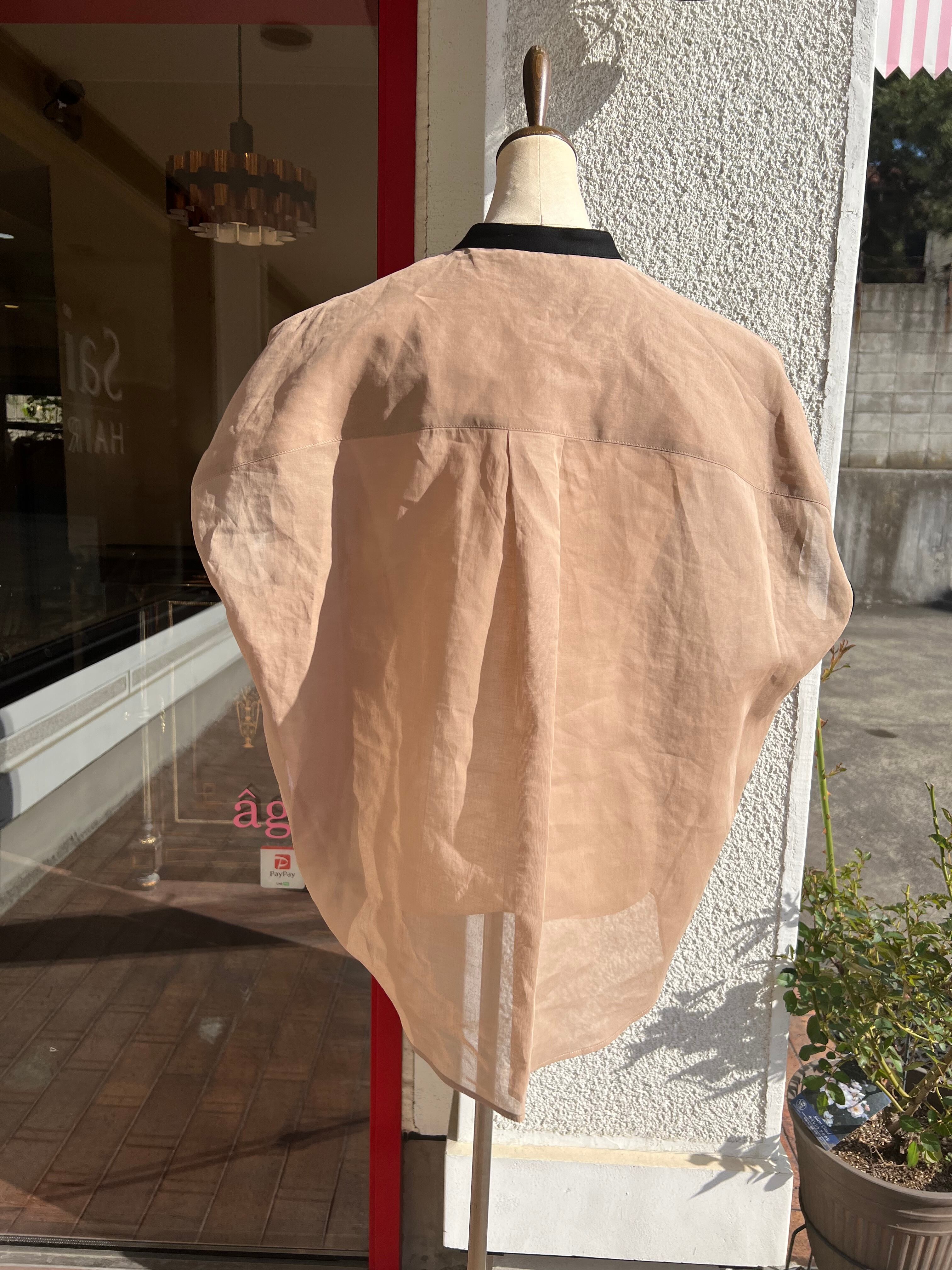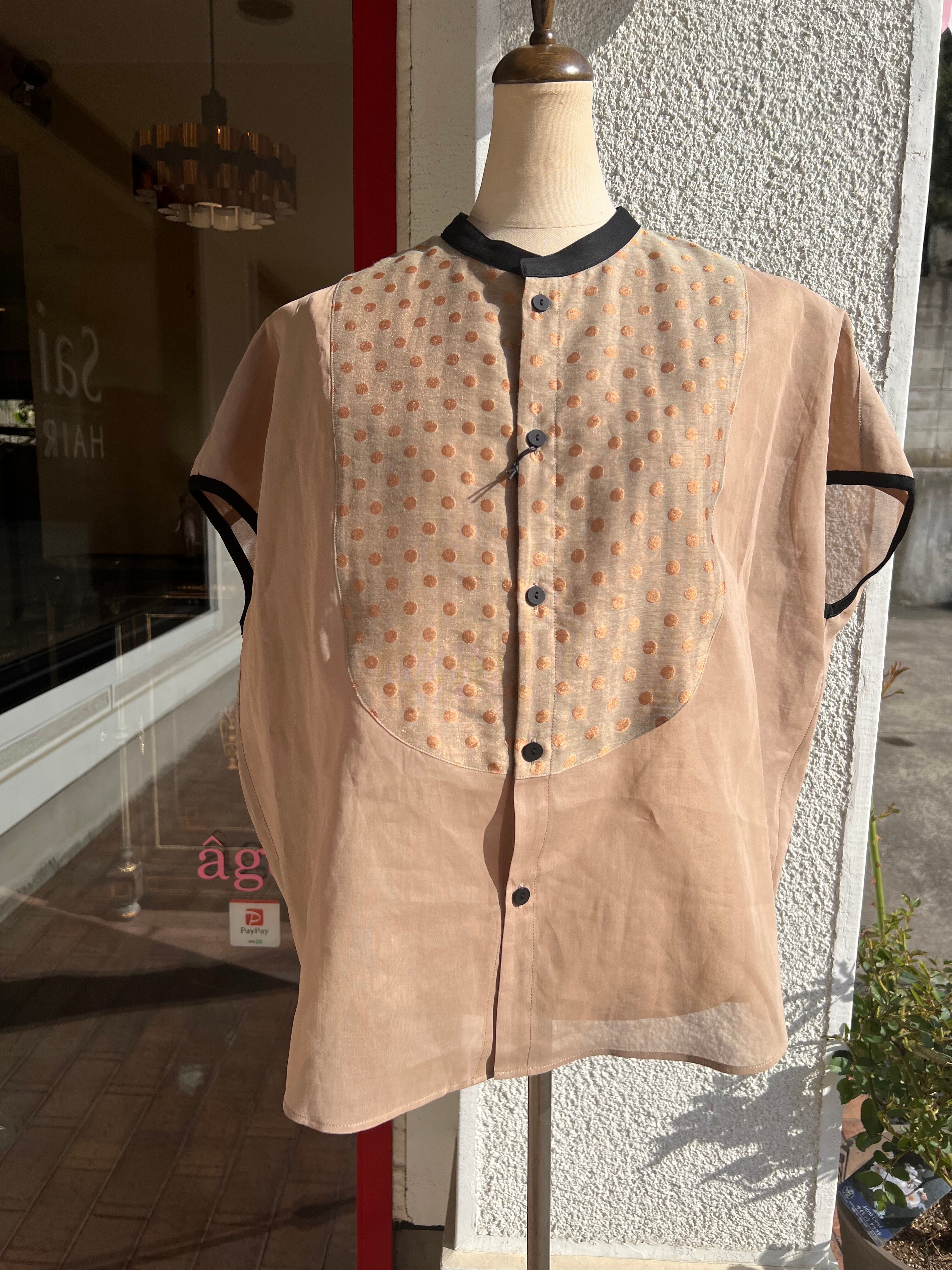 シルクオーガンジーのようなハリ感とドット柄のジャガード素材がコンビニなったシアーブラウス