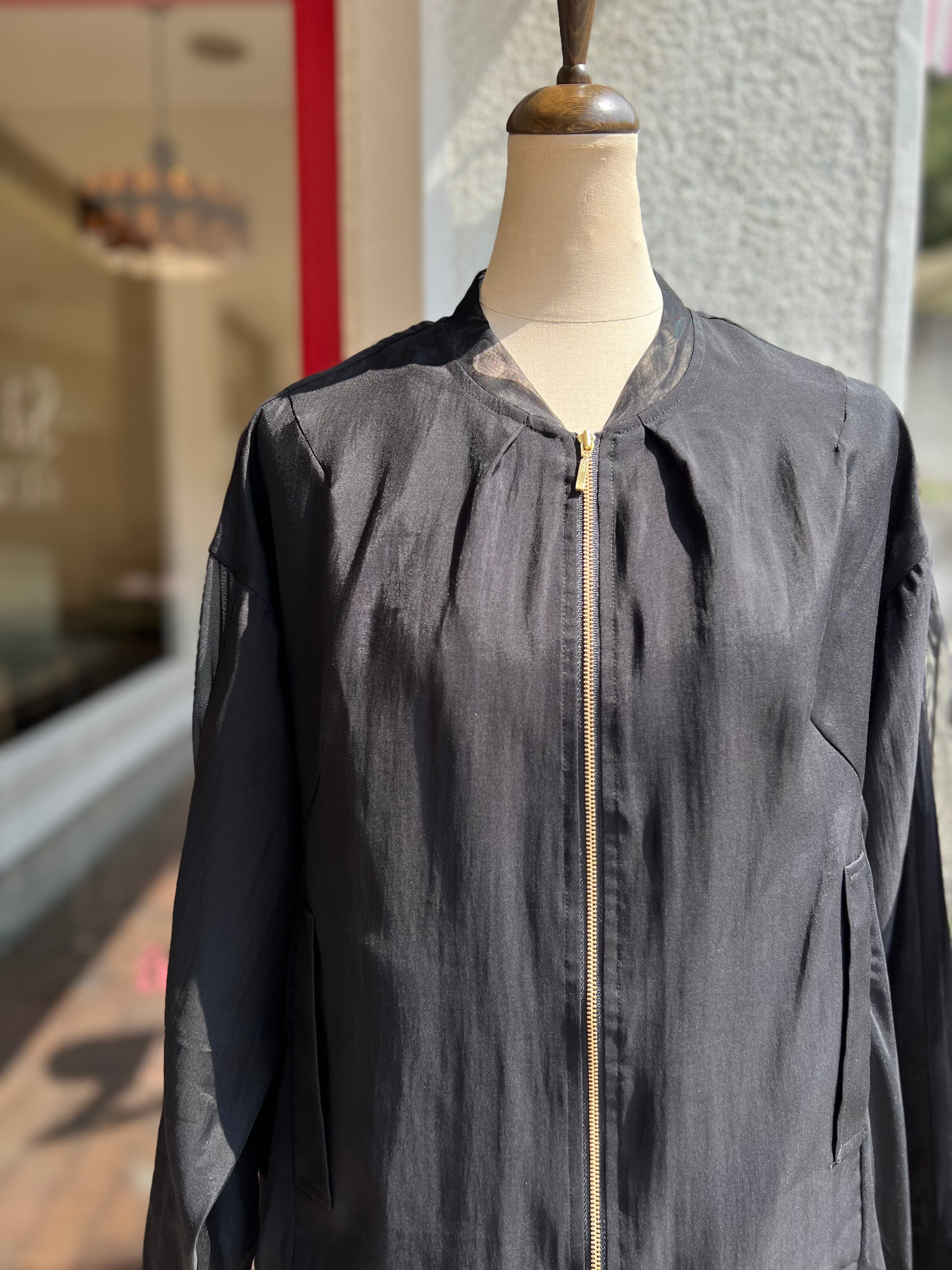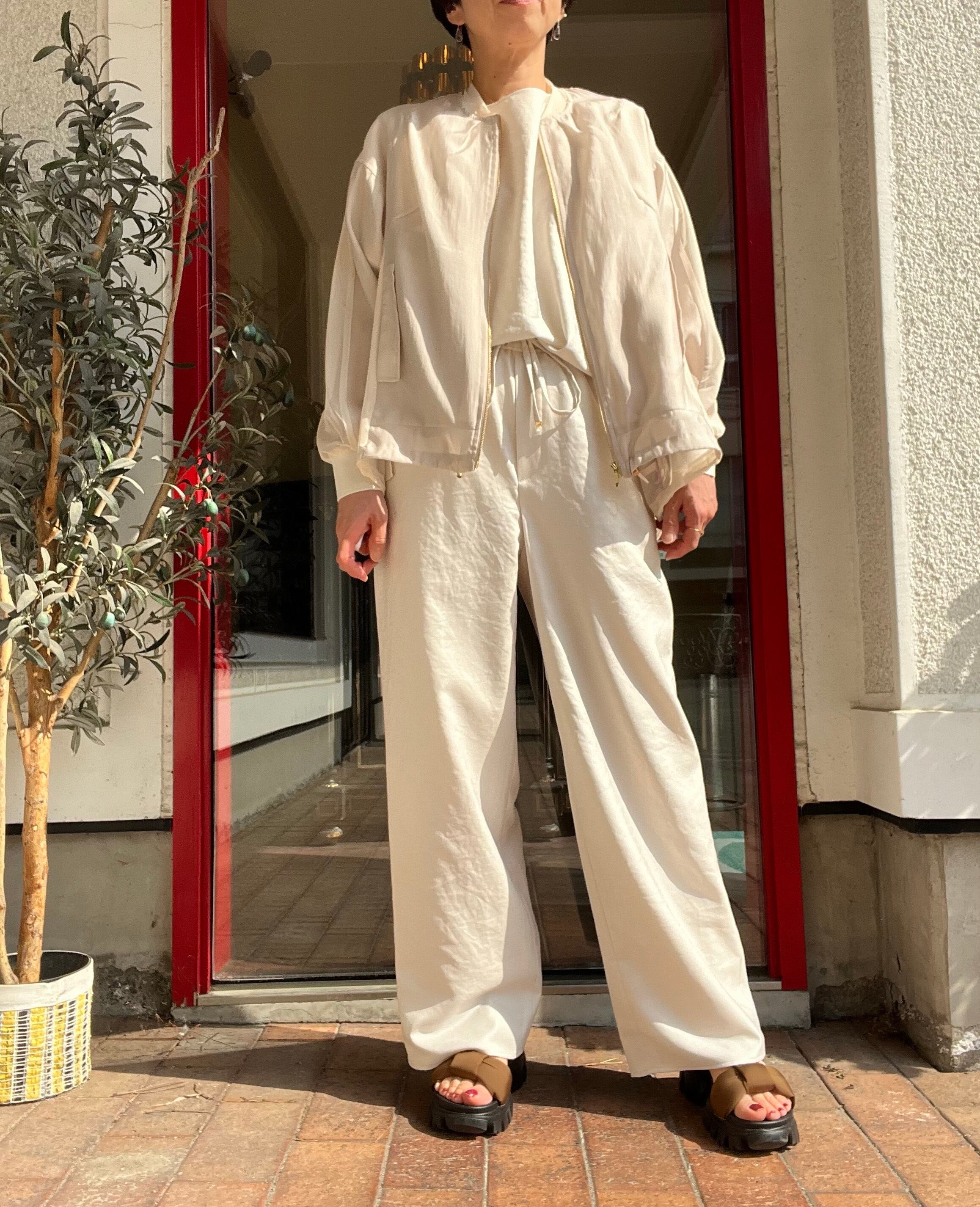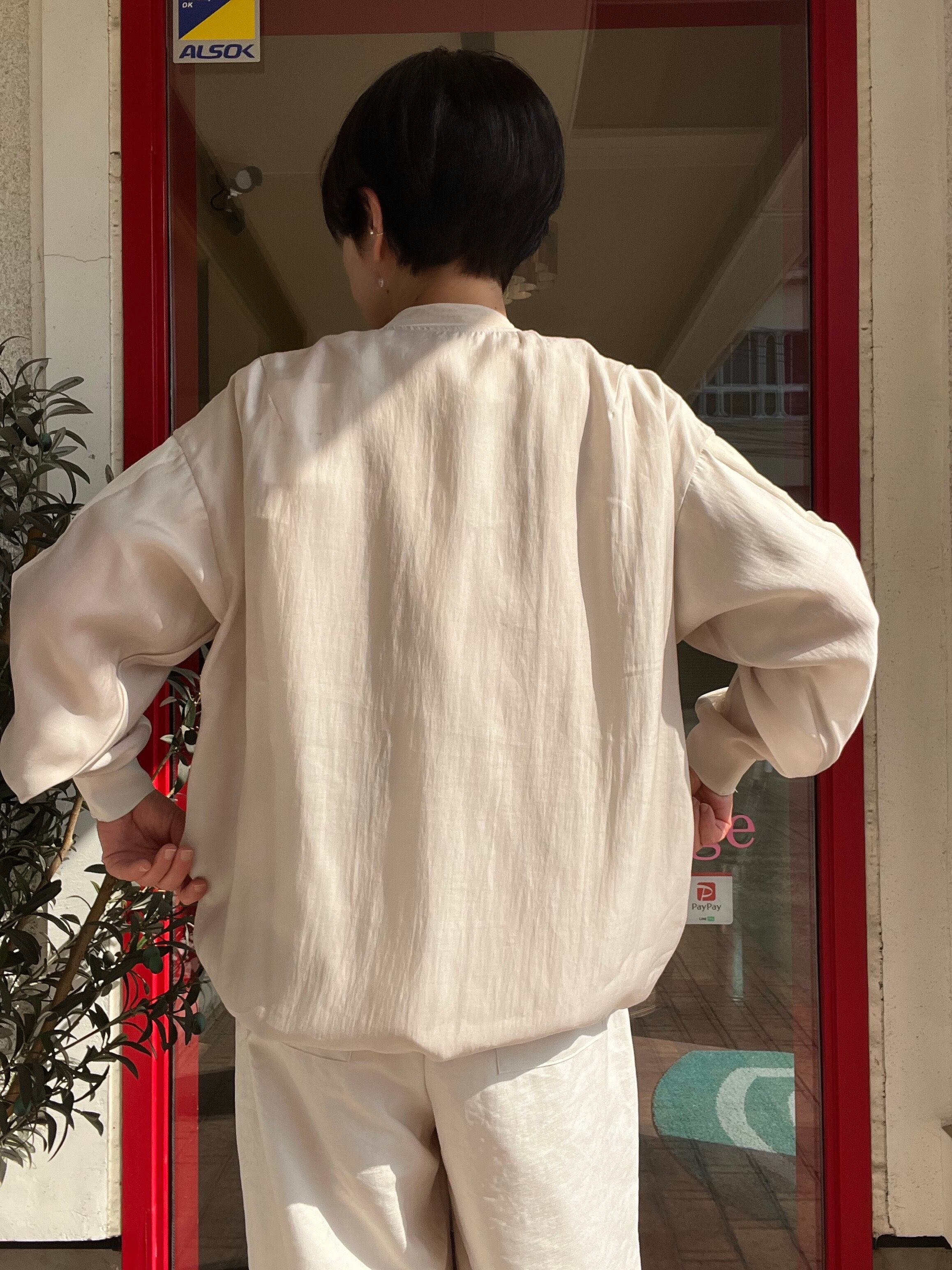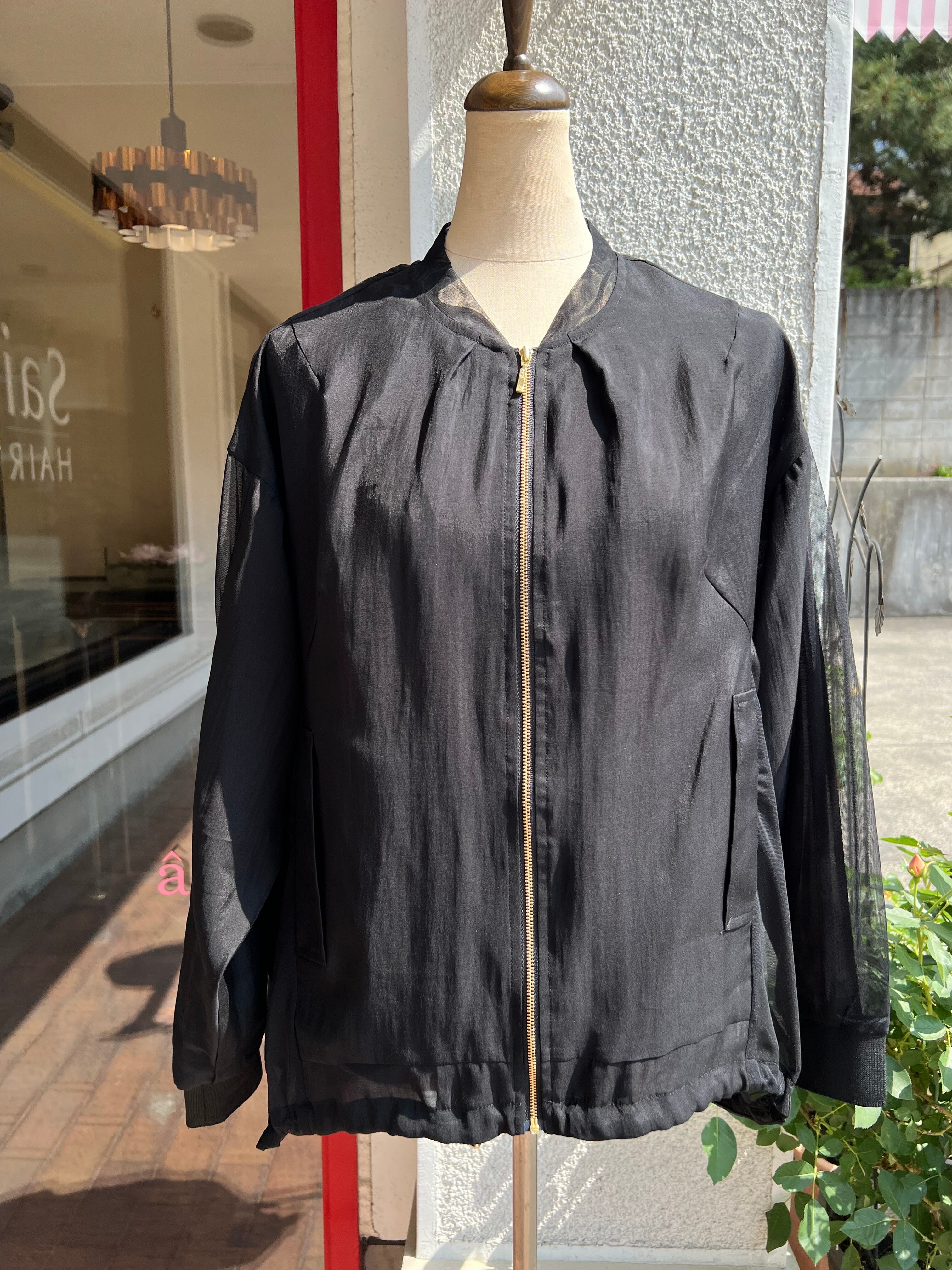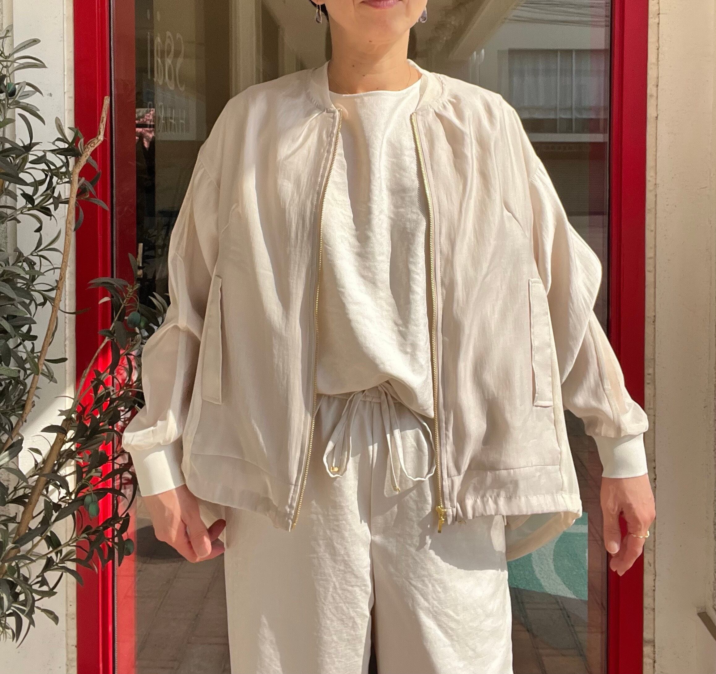 軽く、エアリーで光沢感があり、きれいめな印象のブルゾン