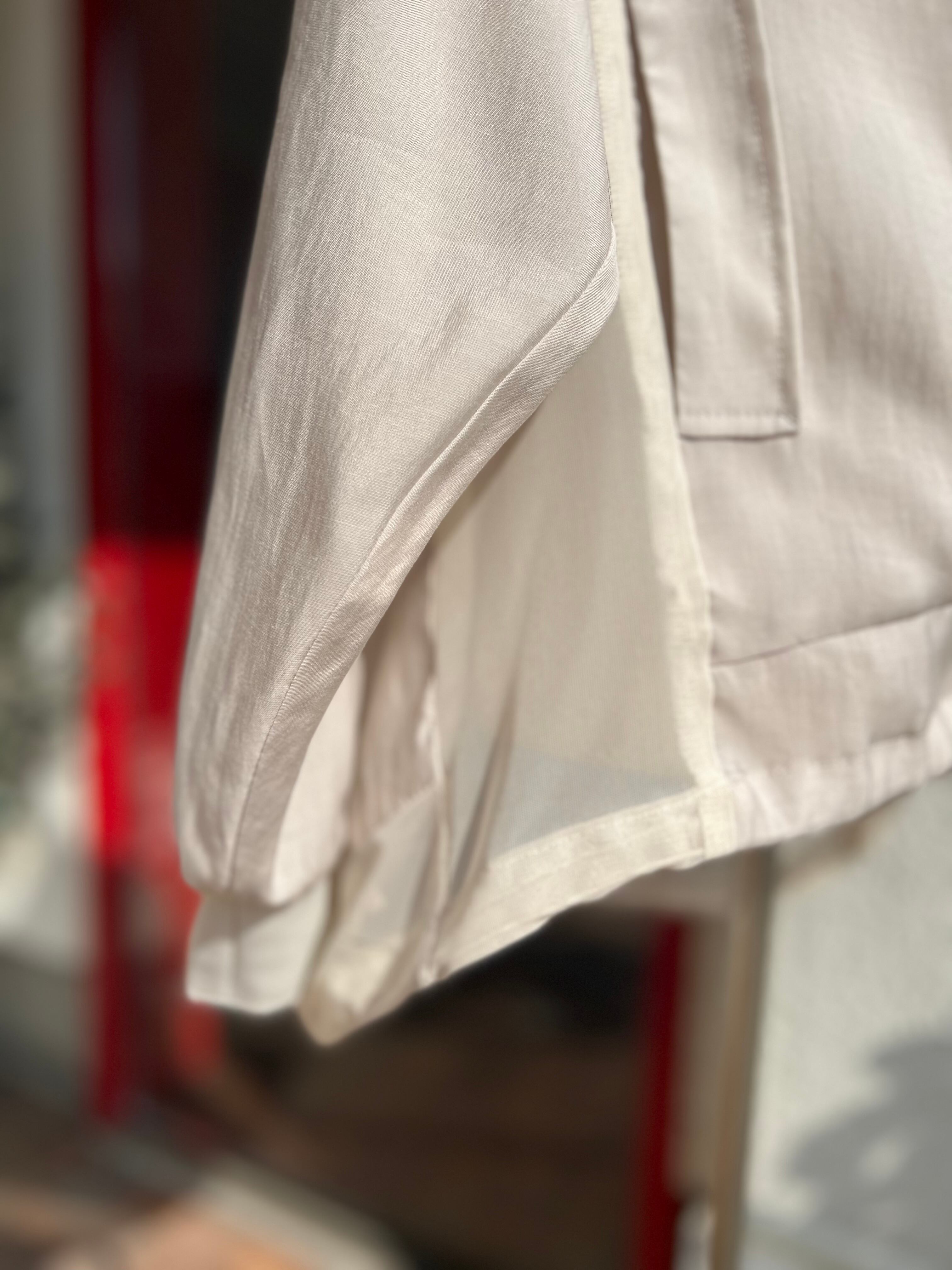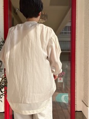 程よい透け感に袖、裾、サイド、襟元がメッシュ生地の切り替えになったデザインです