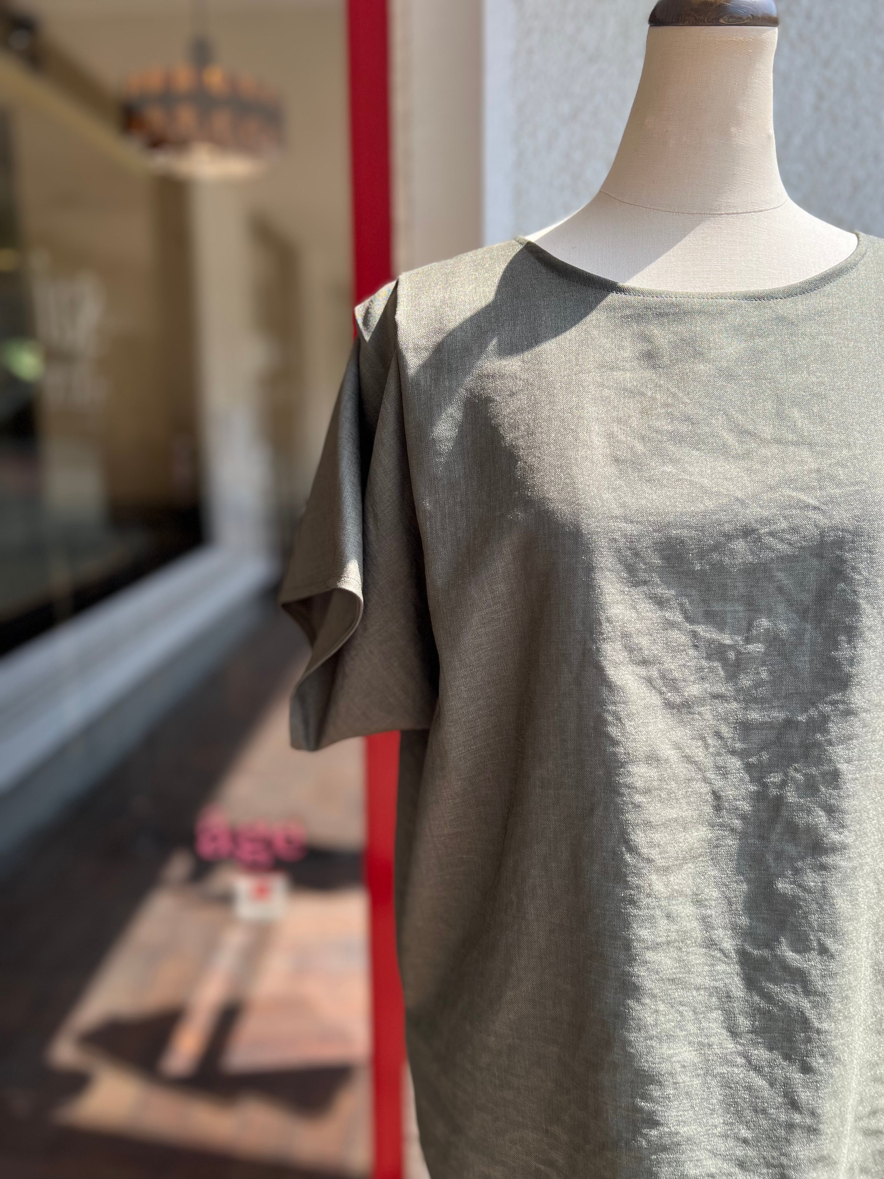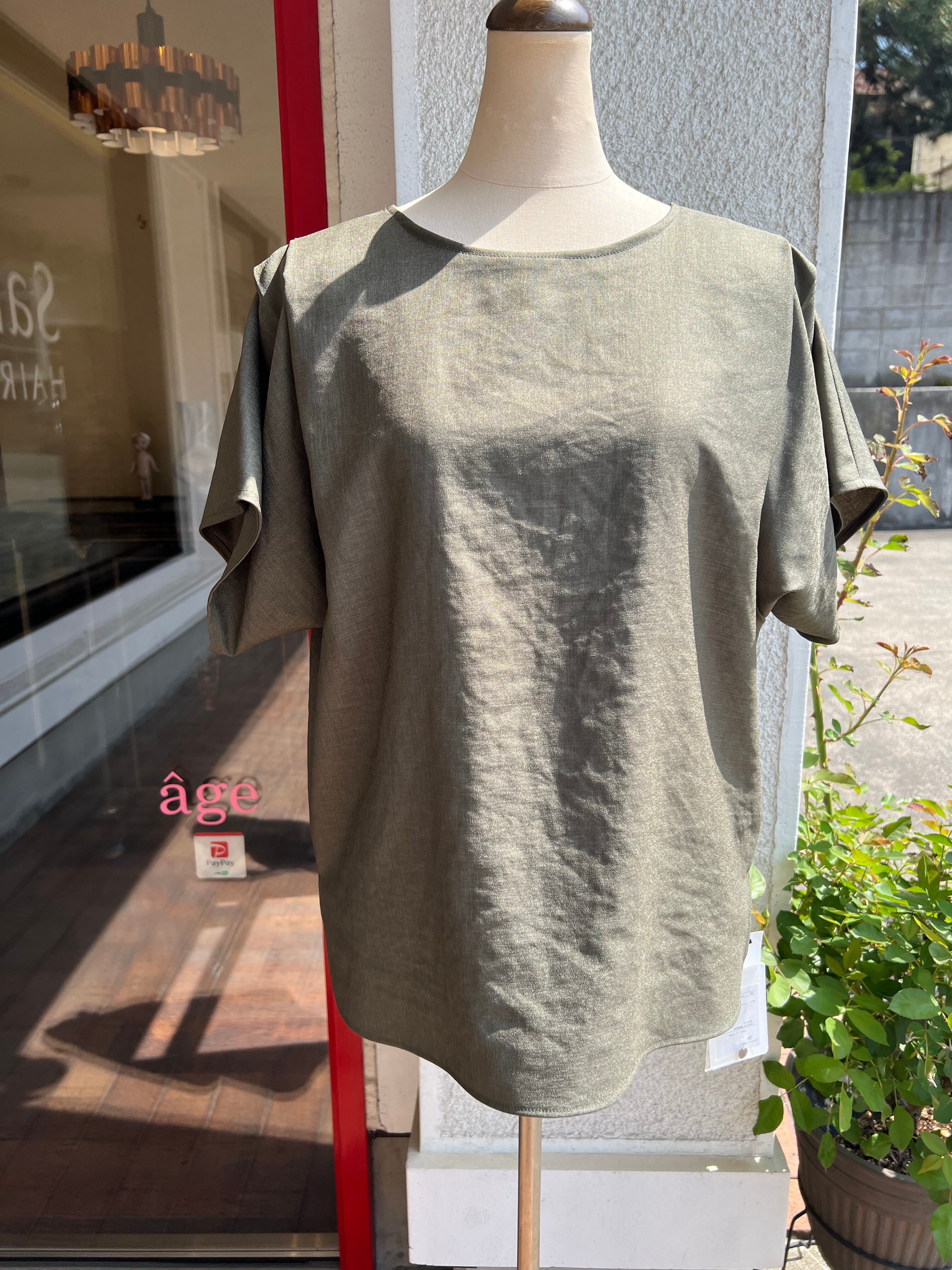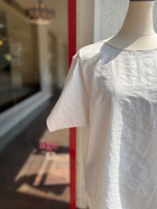 薄手で柔らかく、程よい光沢感と落ち感のある綺麗めに着て頂けるプルオーバーブラウス
