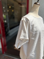 裾は前後差あり、フロントインもしやすくボトムとのバランスがとりやすいデザインです