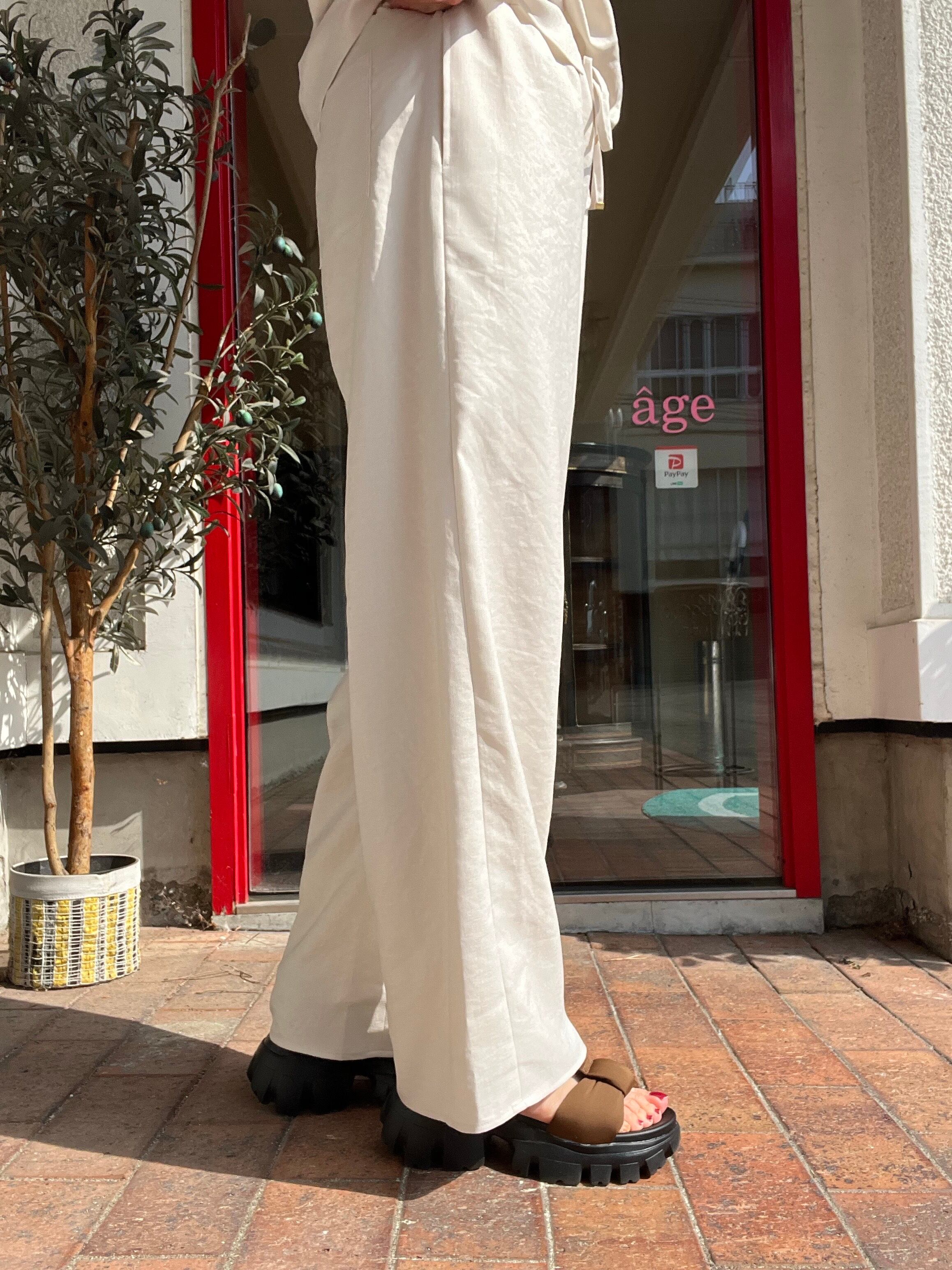 薄手で柔らかく、微光沢と落ち感のある綺麗めに穿いて頂けるパンツです