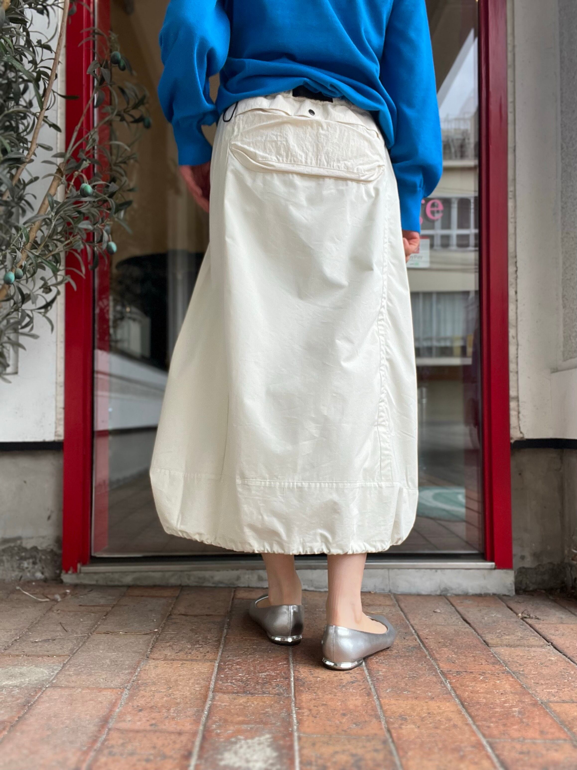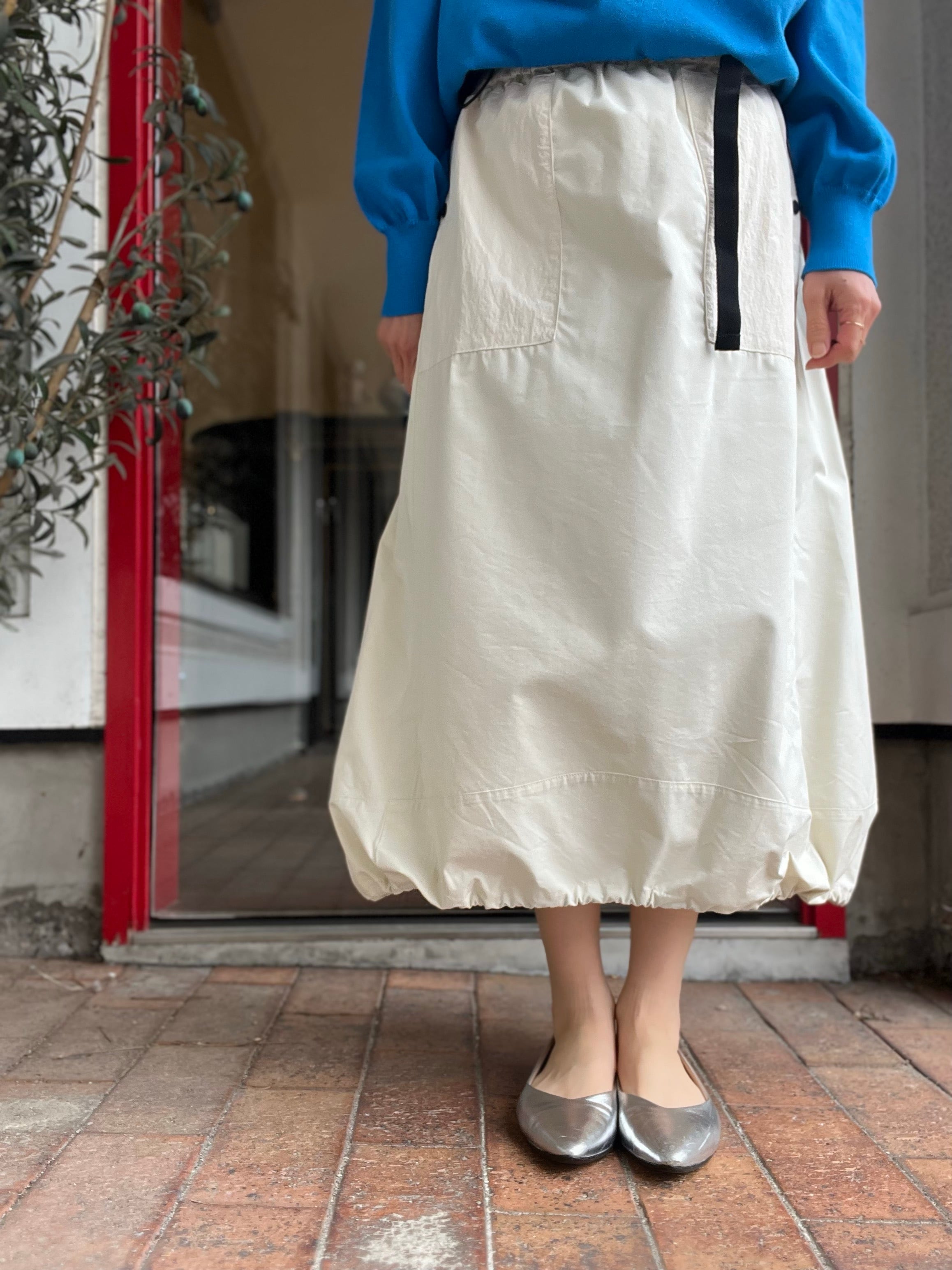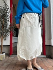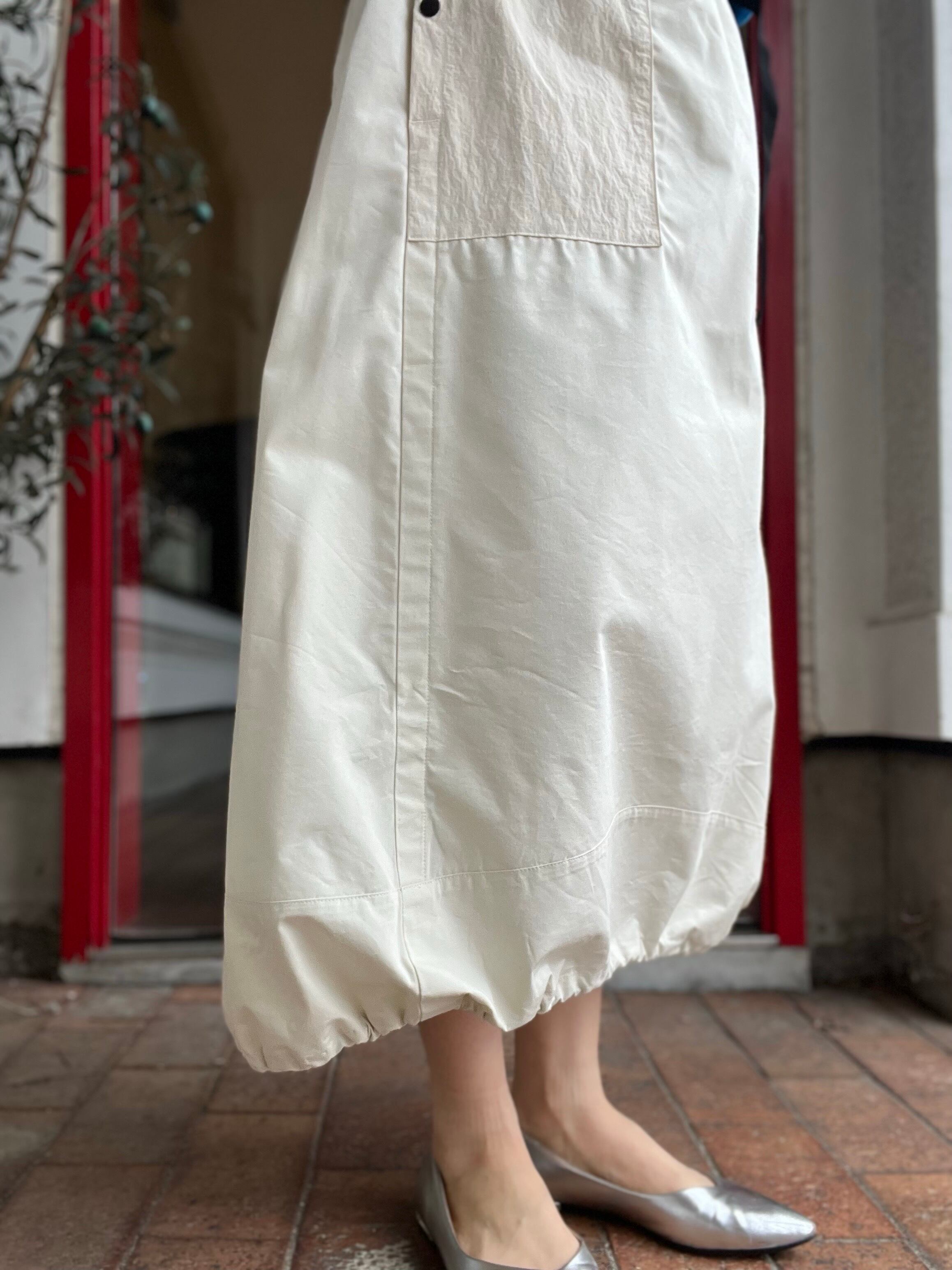 スカート丈は前後差あり、裾にはストリングスが入りコクーンシルエットにもアレンジ可能です