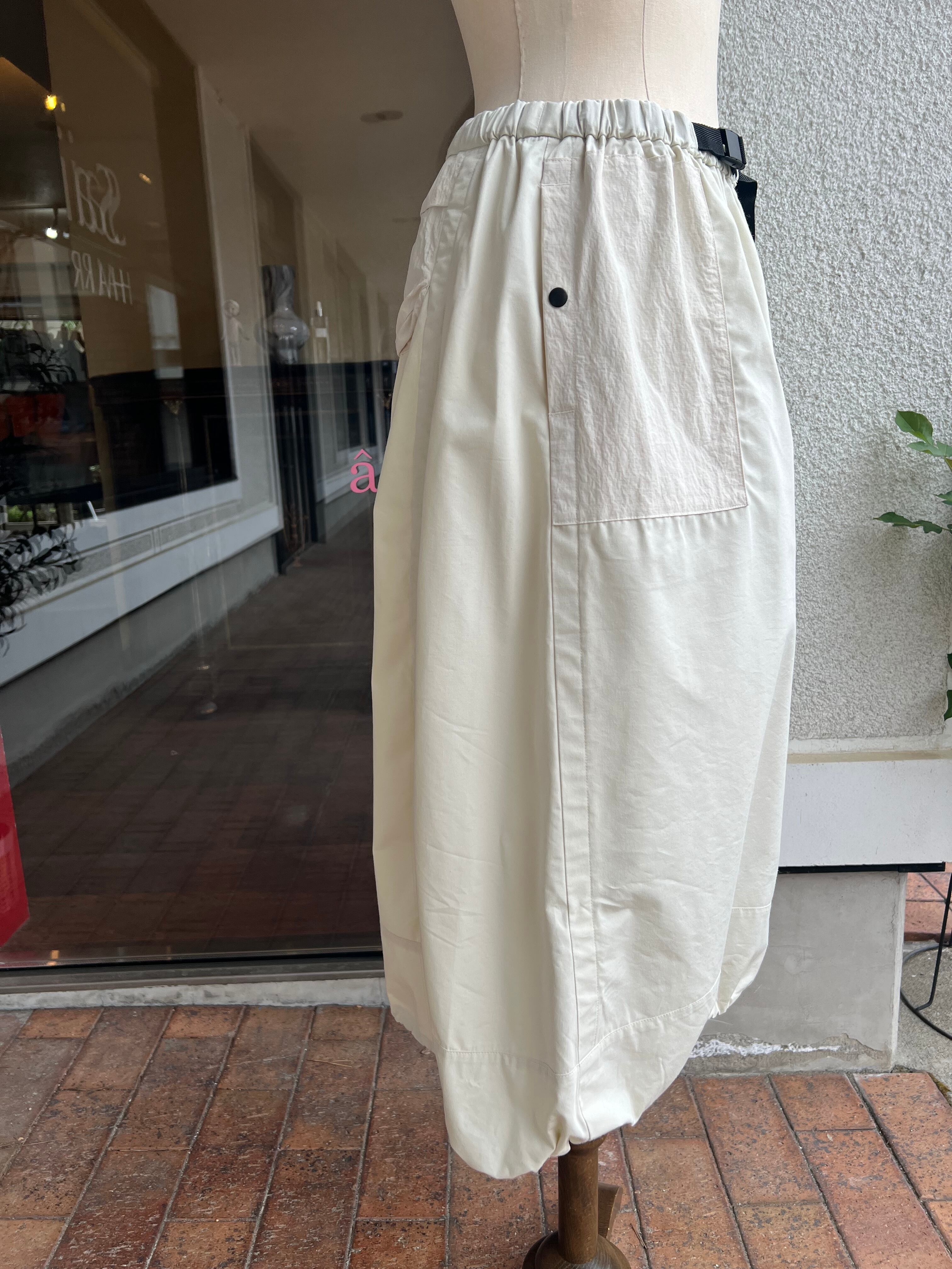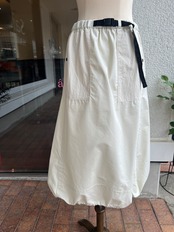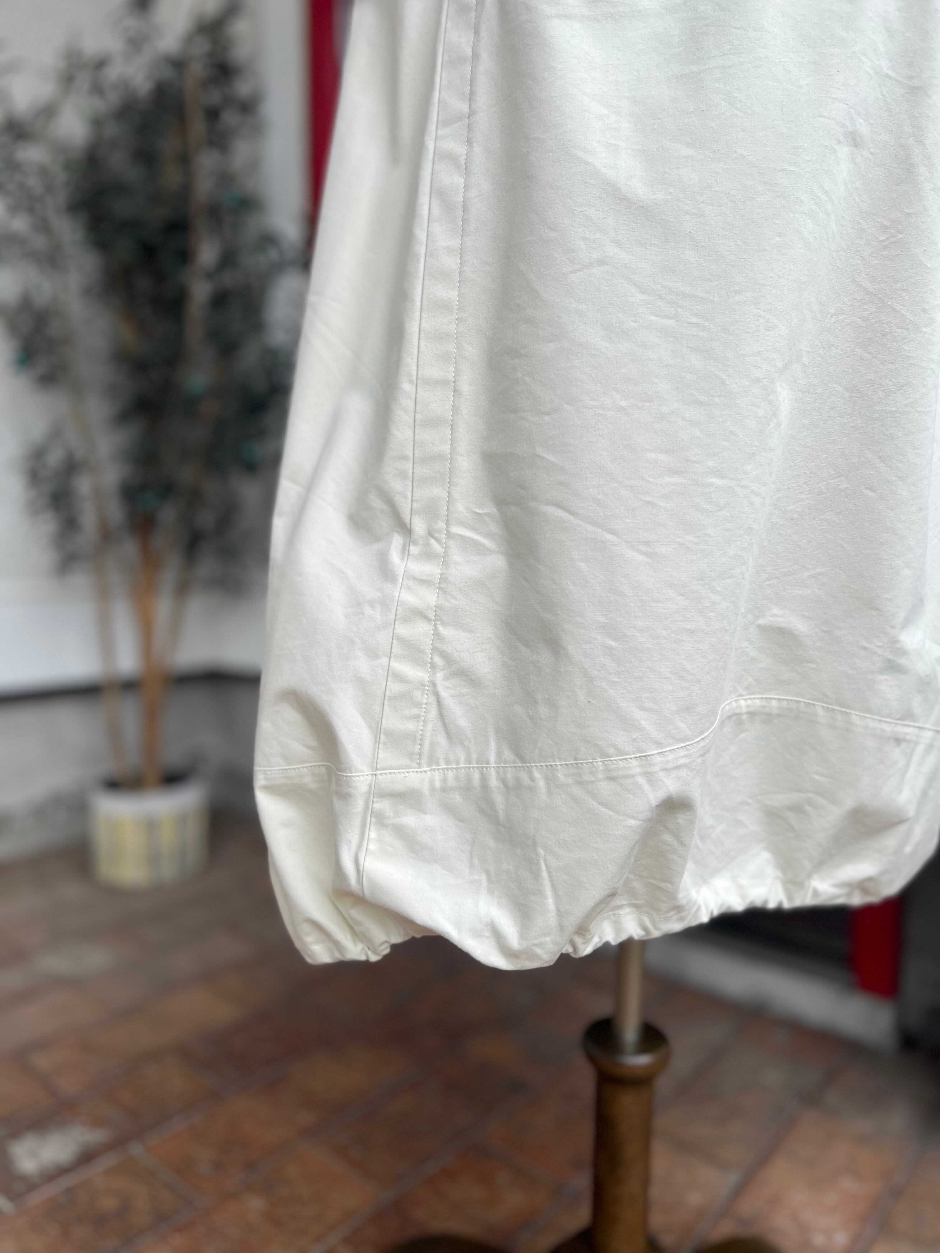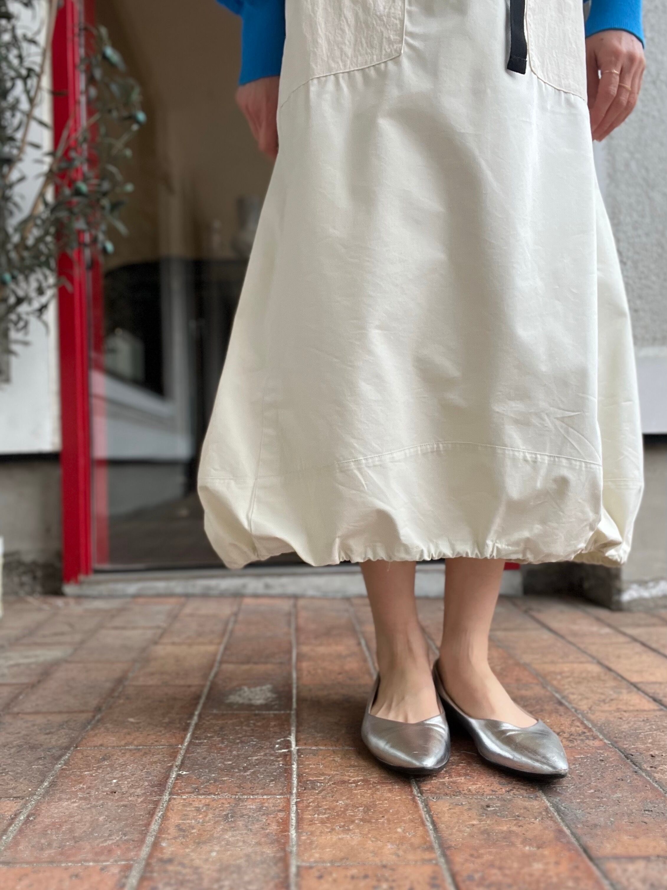 スカート丈は前後差あり、裾にはストリングスが入りコクーンシルエットにもアレンジ可能です