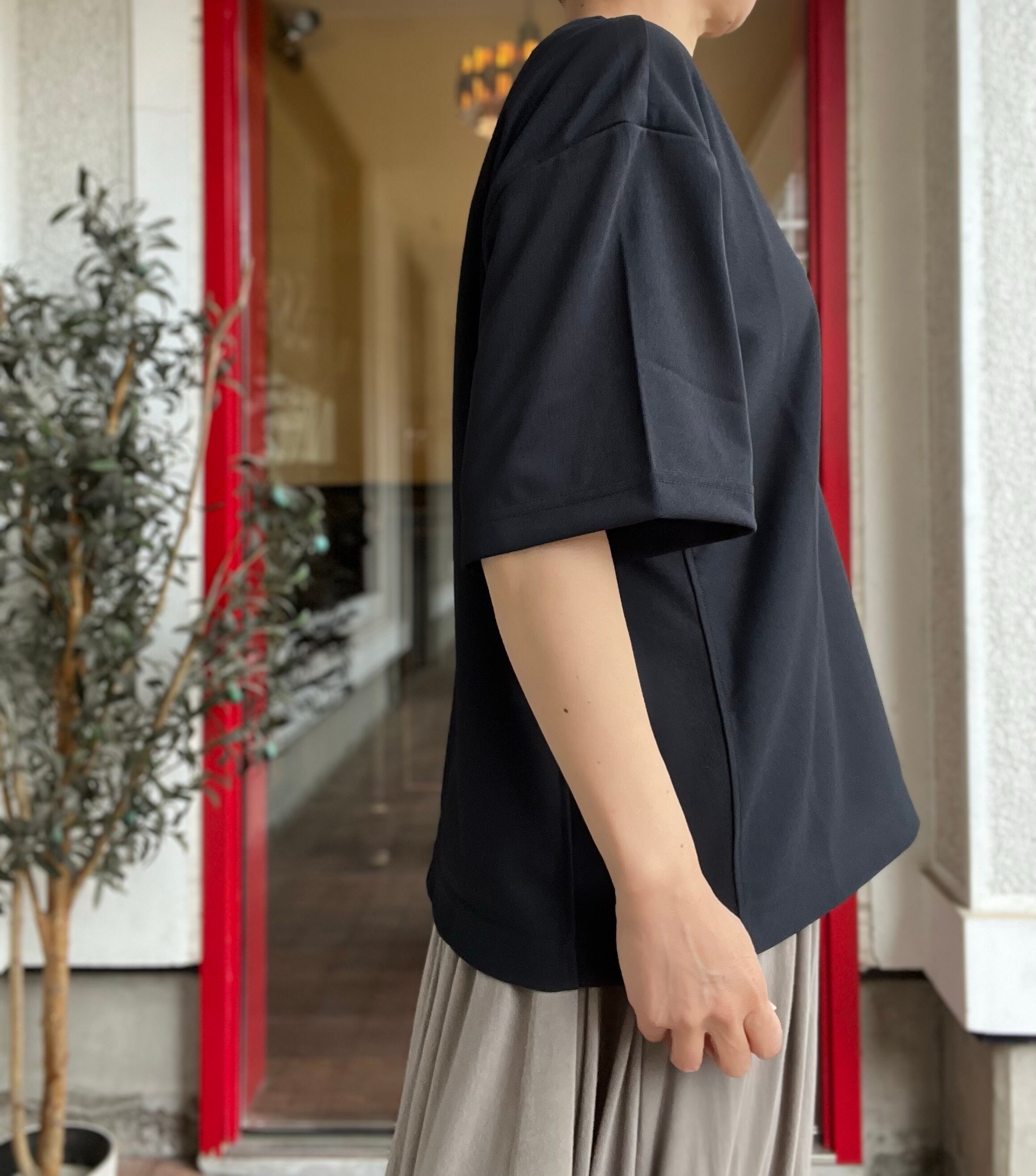 身頃には型崩れを防止するヨコ地を目にサイドにはリブを配した
