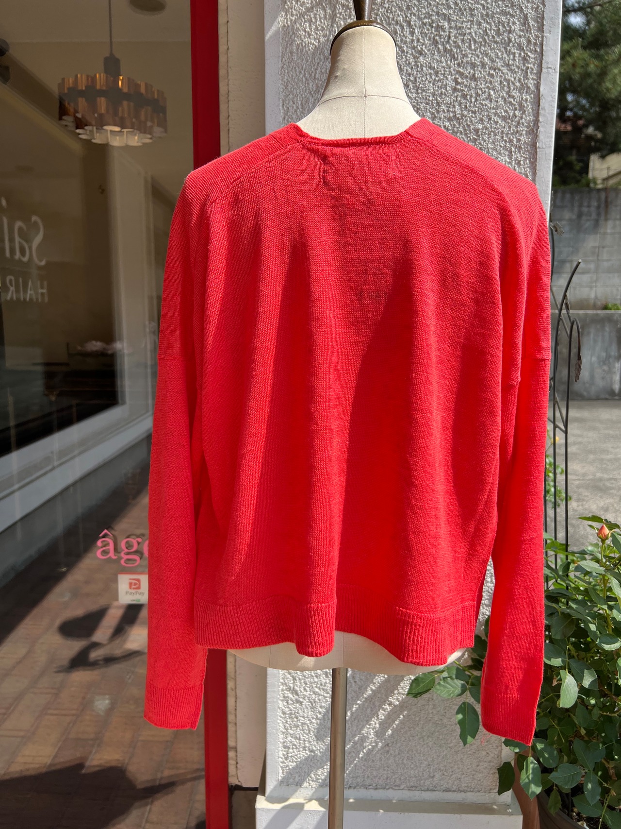 透け感も少なく、深く開いたV襟がスッキリとした印象で