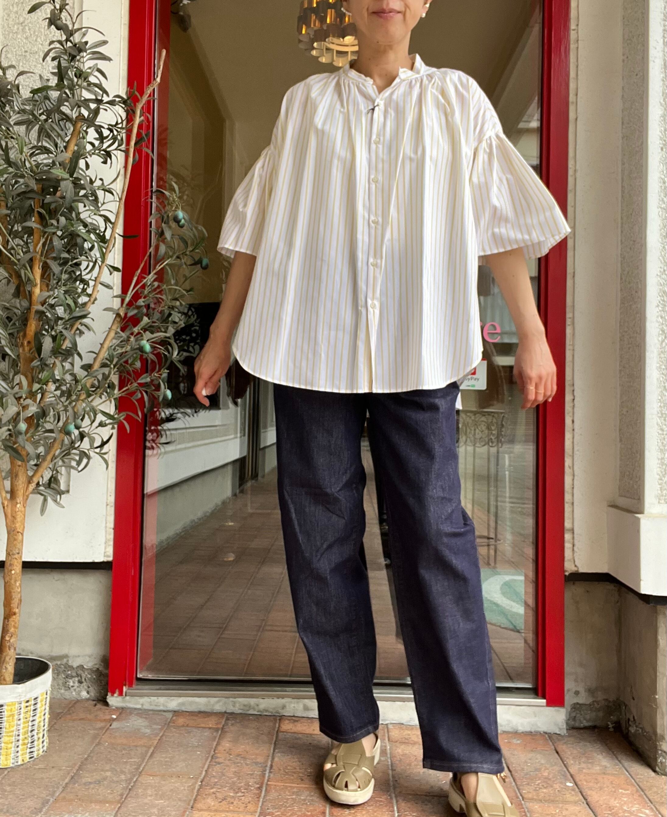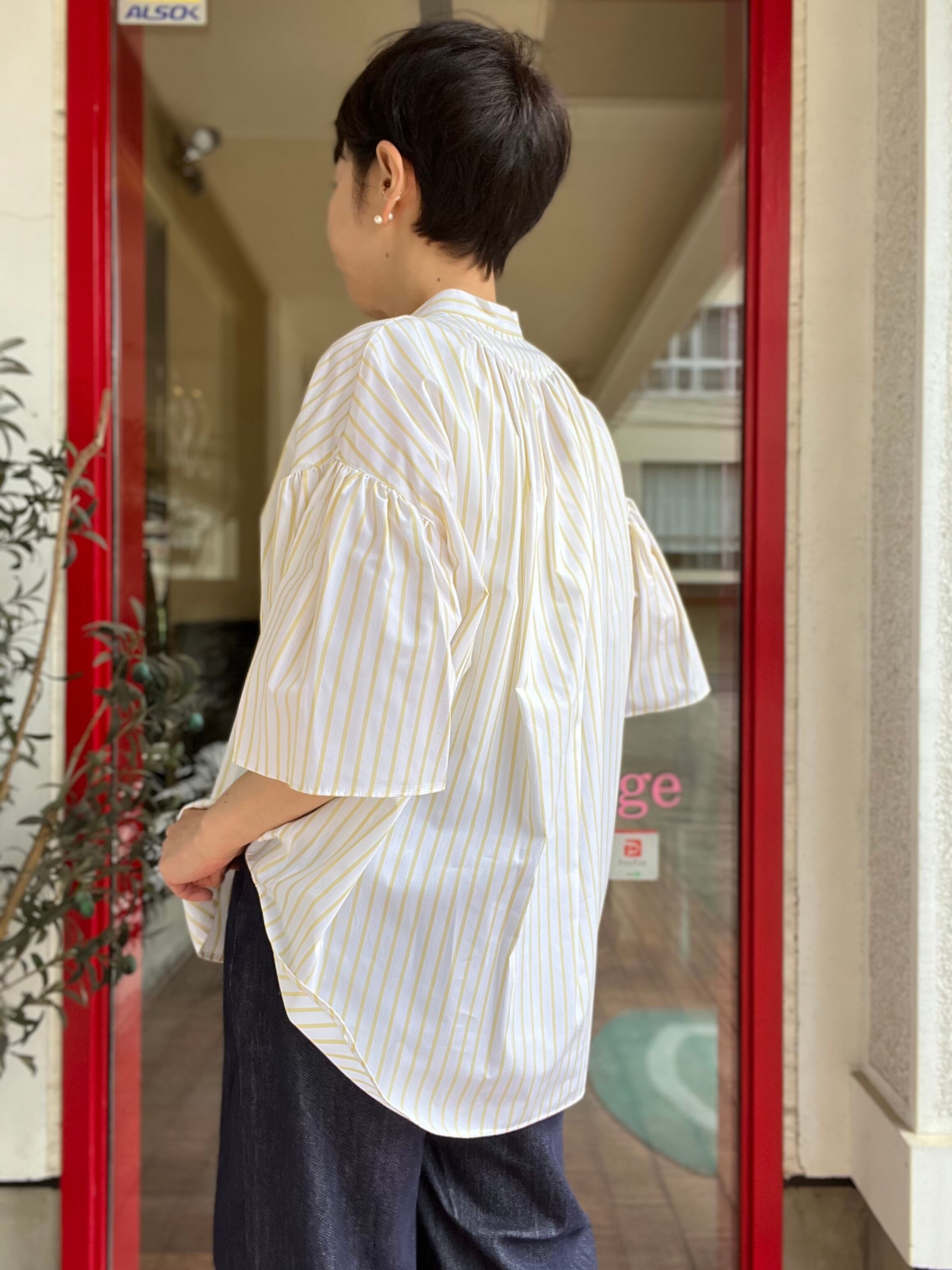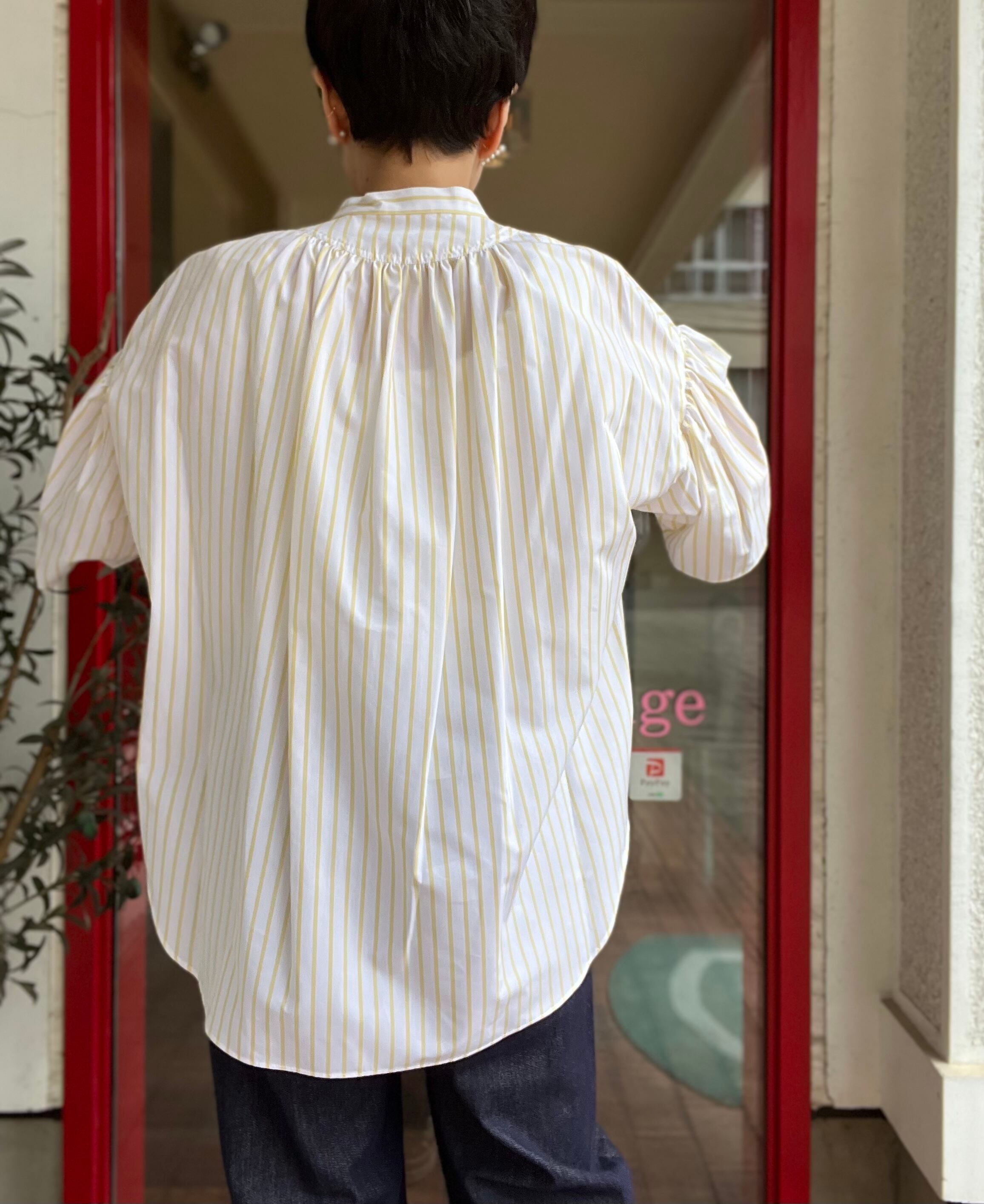 衿まわり、ヨーク、袖にたっぷりとギャザーを入れた柔らかな膨らみのある