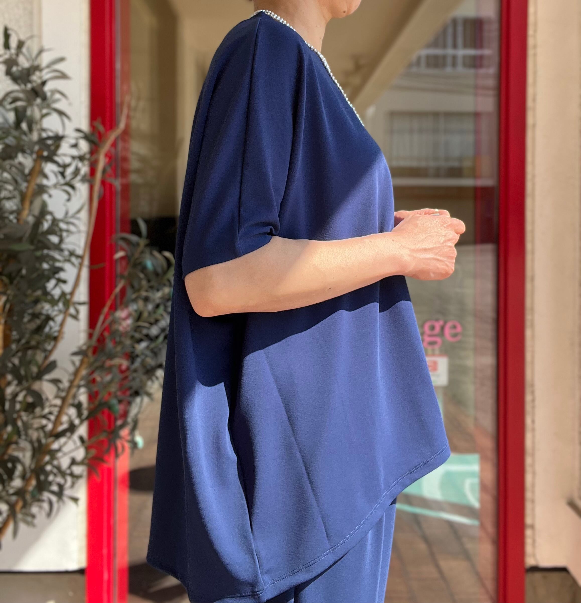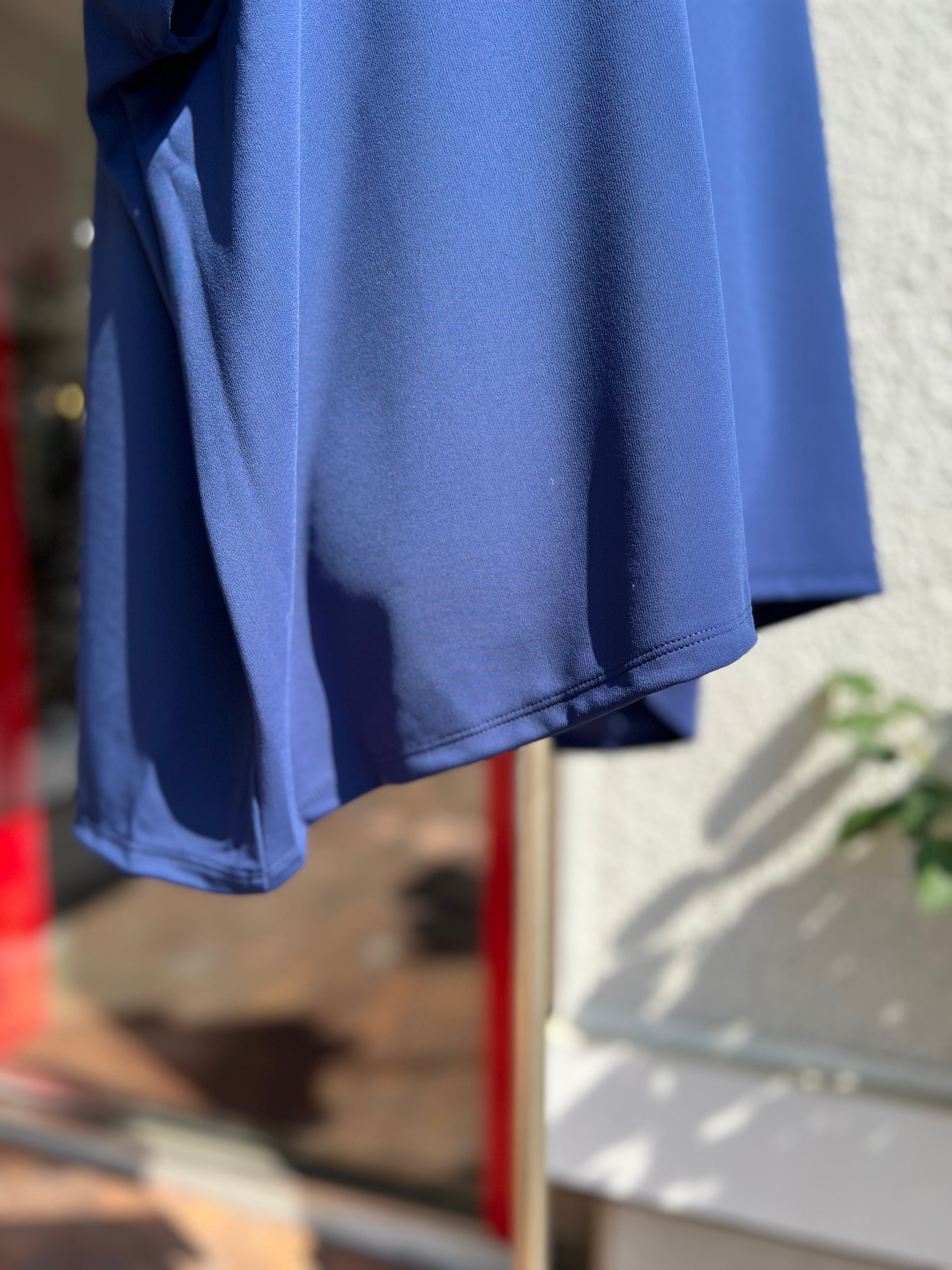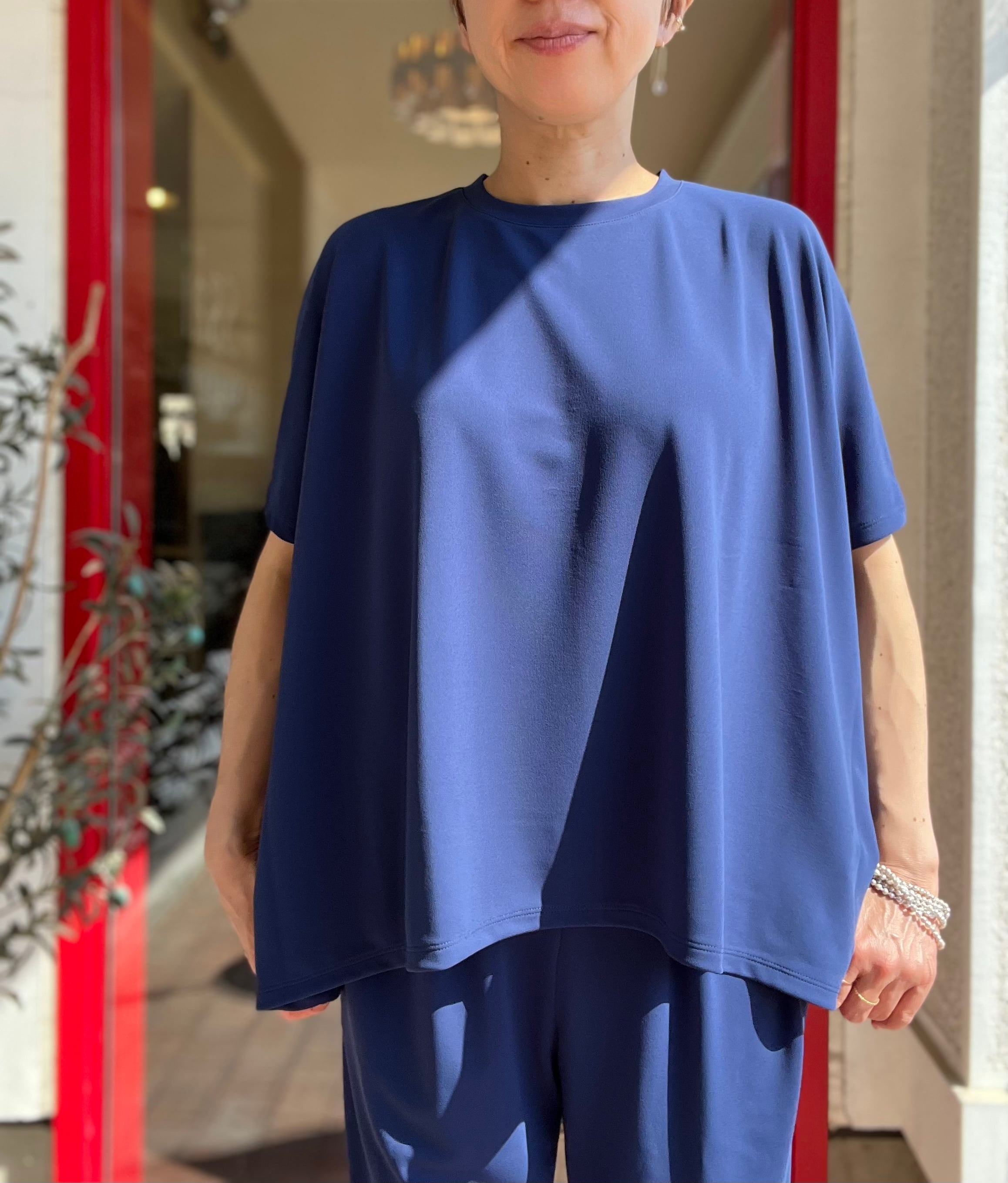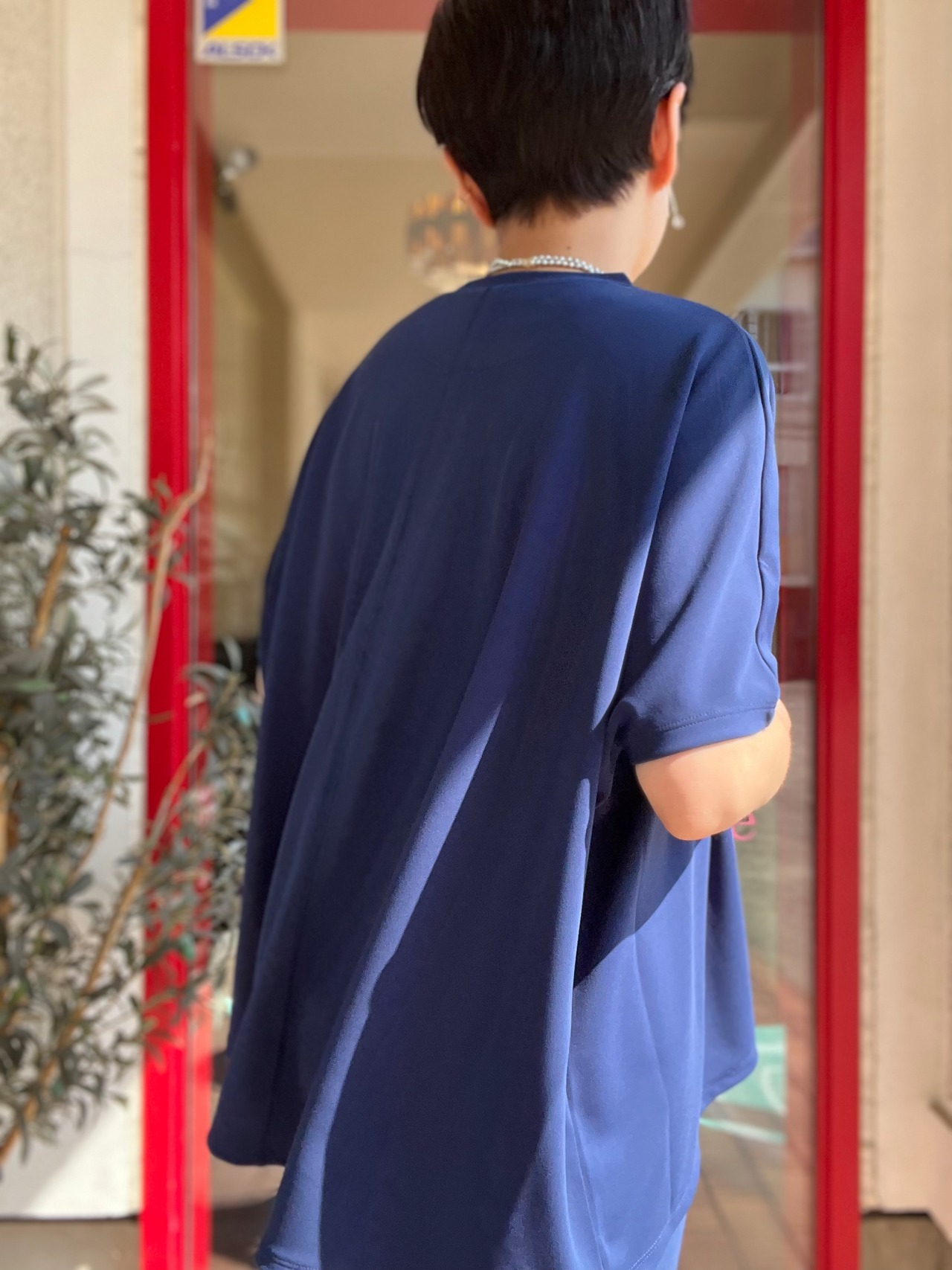 二の腕をカバーするドルマンスリーブでゆったりとしたシルエットながら、動いてもインナーが見えづらいように設計しているため1枚で着用可能です