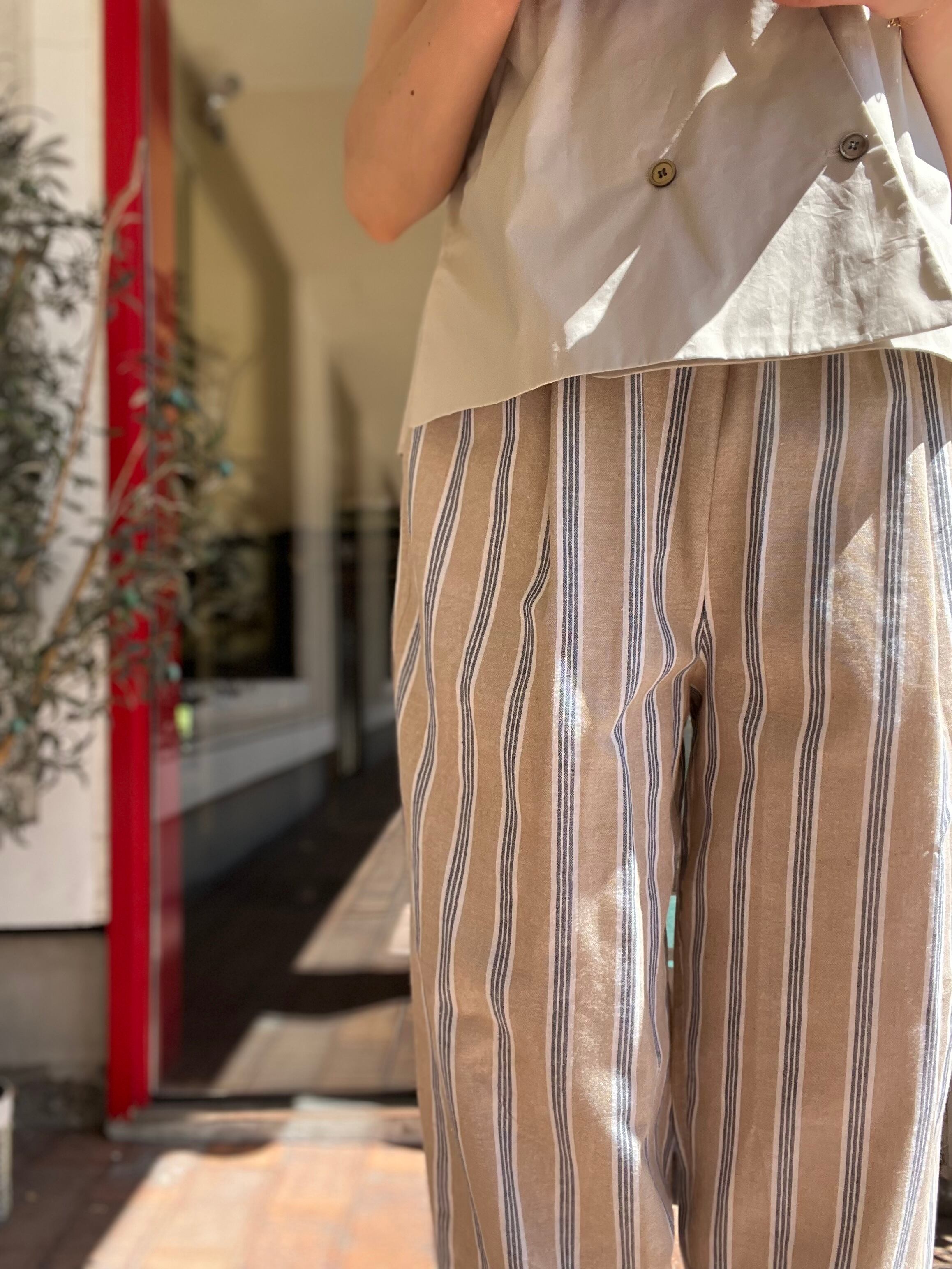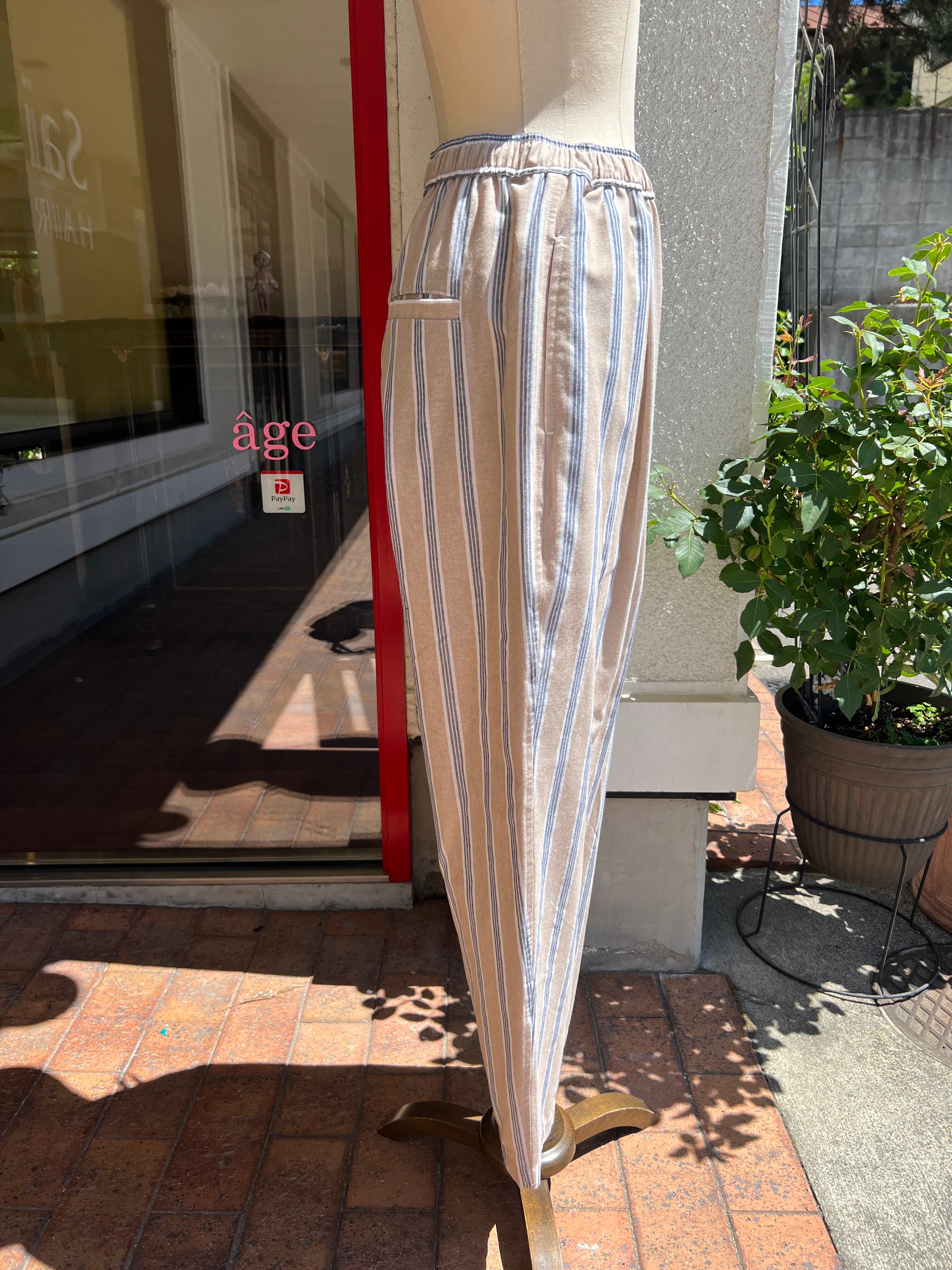 ウエストはゴム仕様に、紐も通っているので調整が可能です