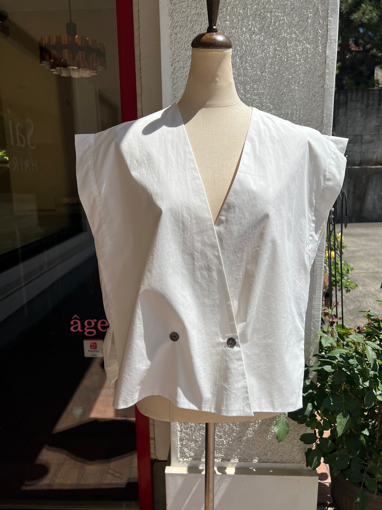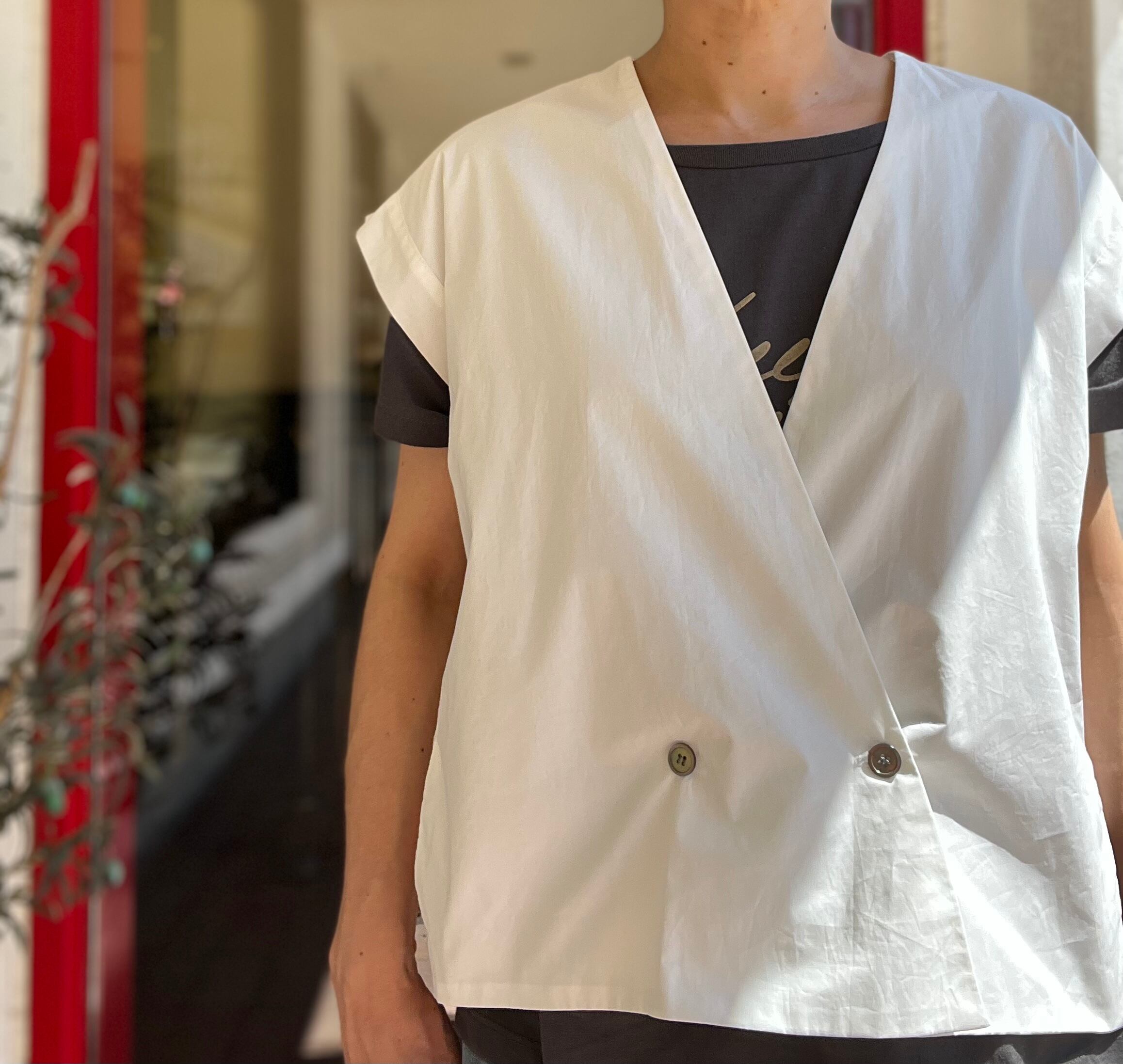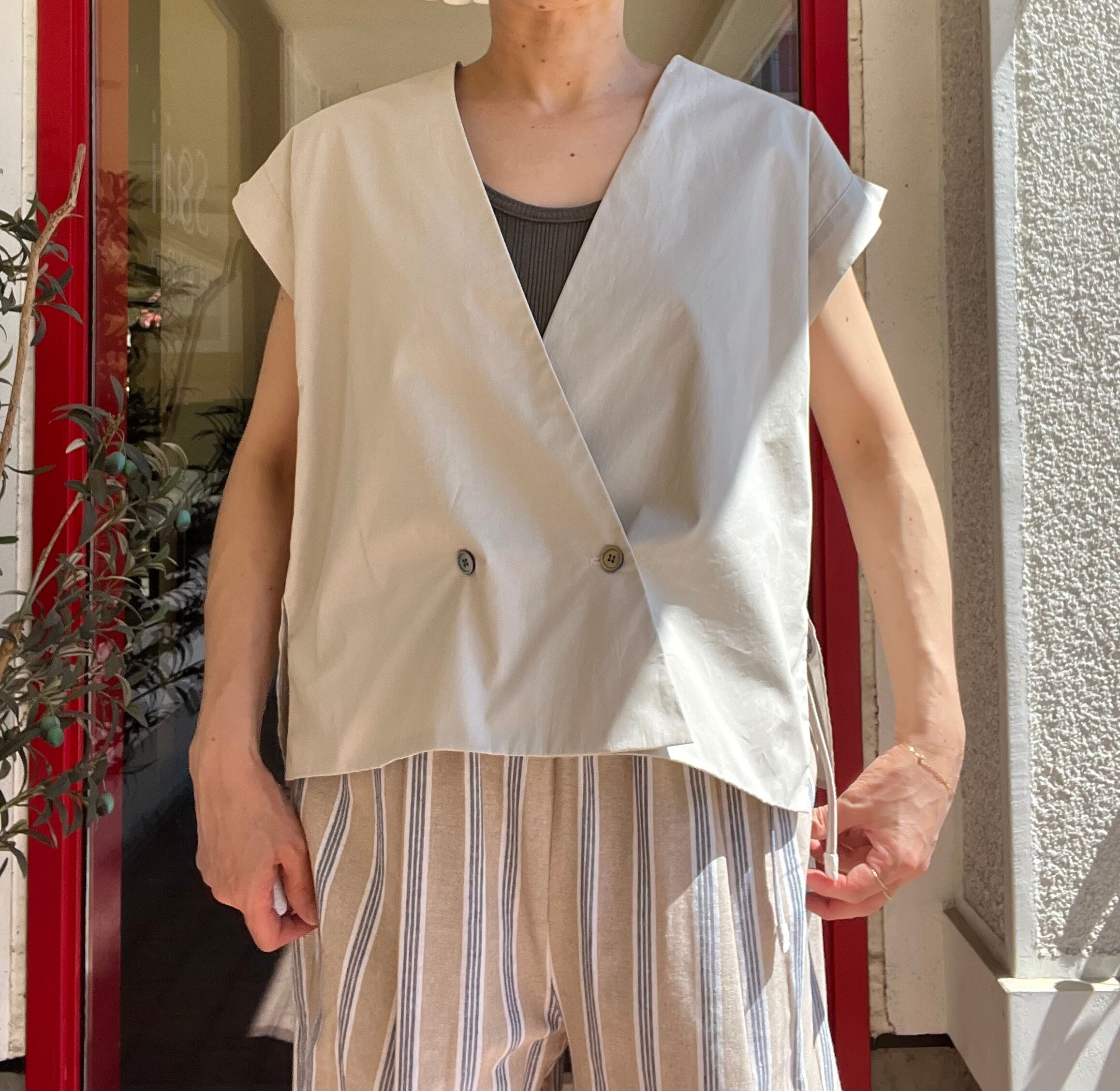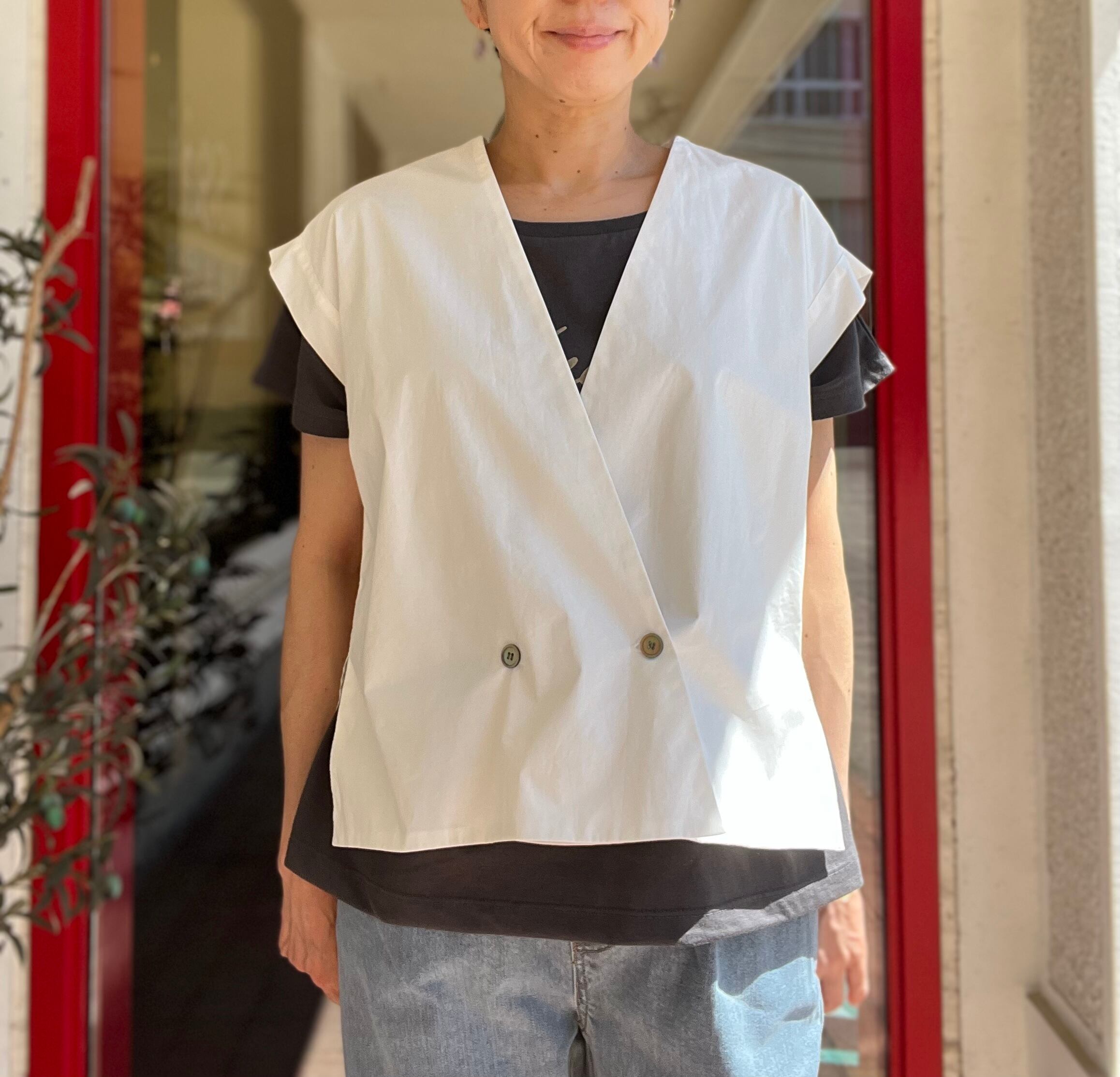 夏のレイヤードに便利な、薄手のハリのあるシャツ生地のジレ