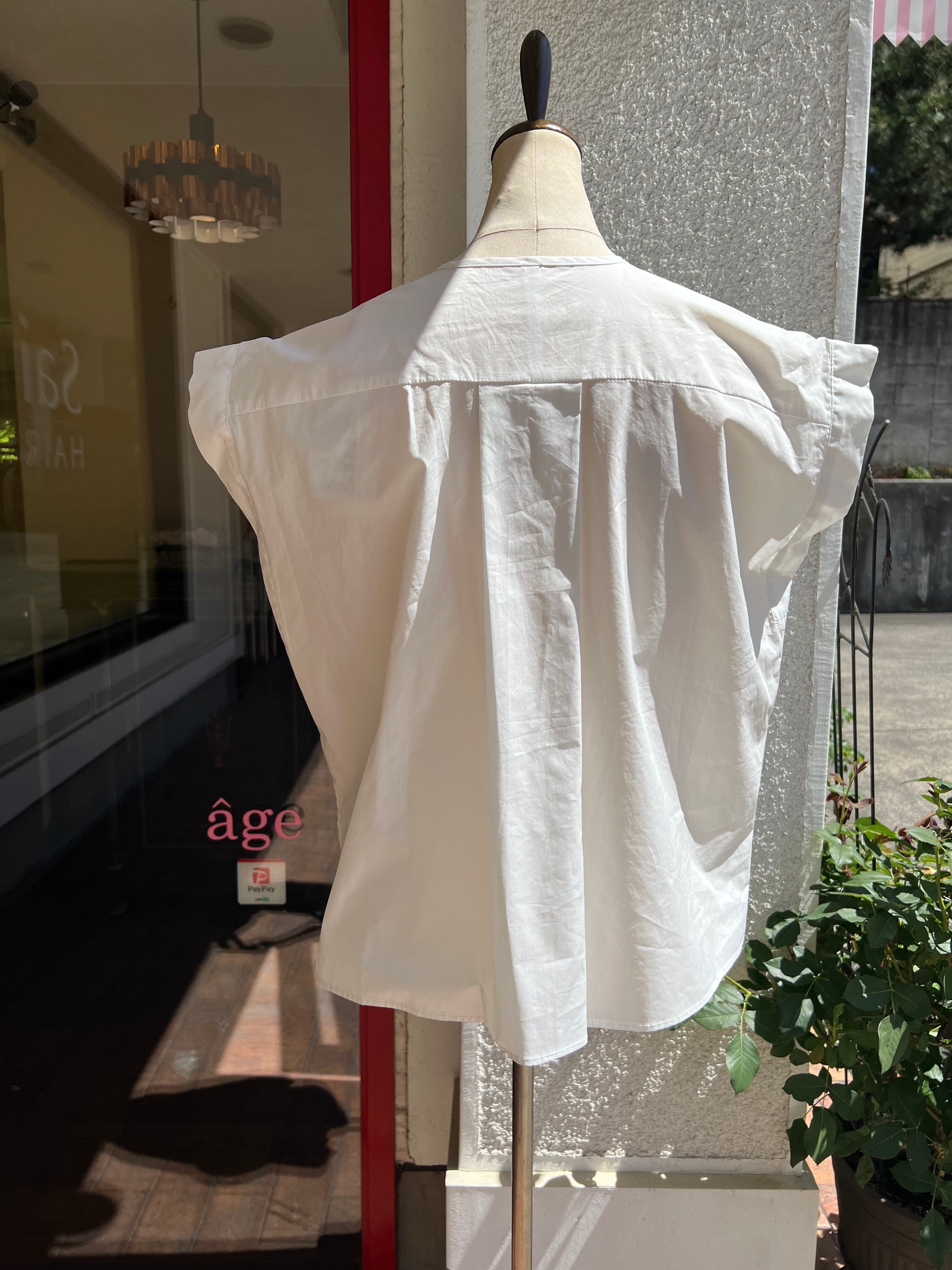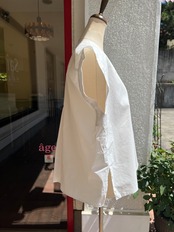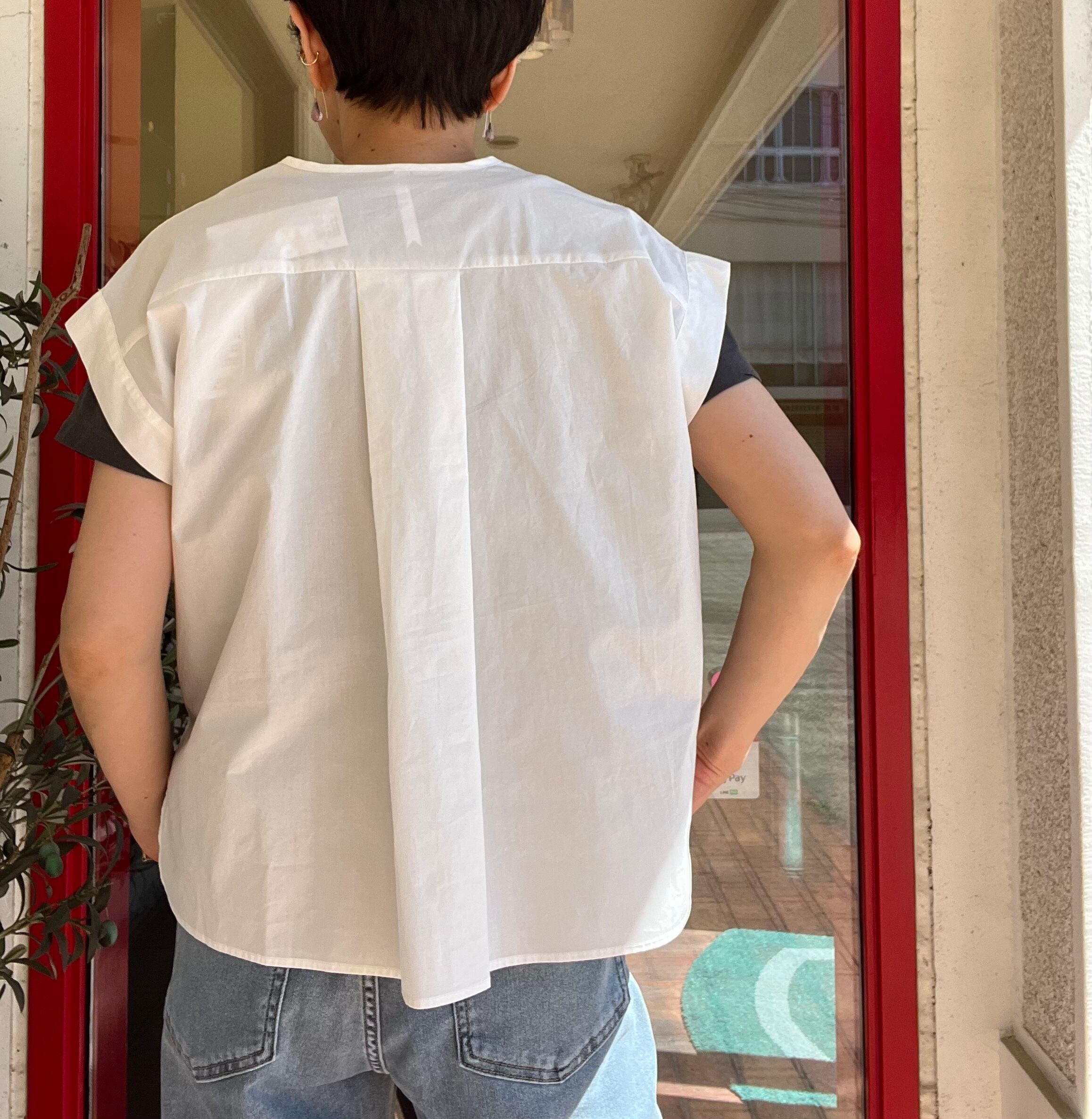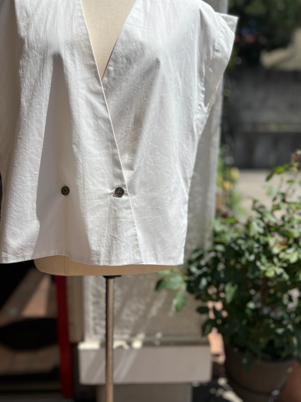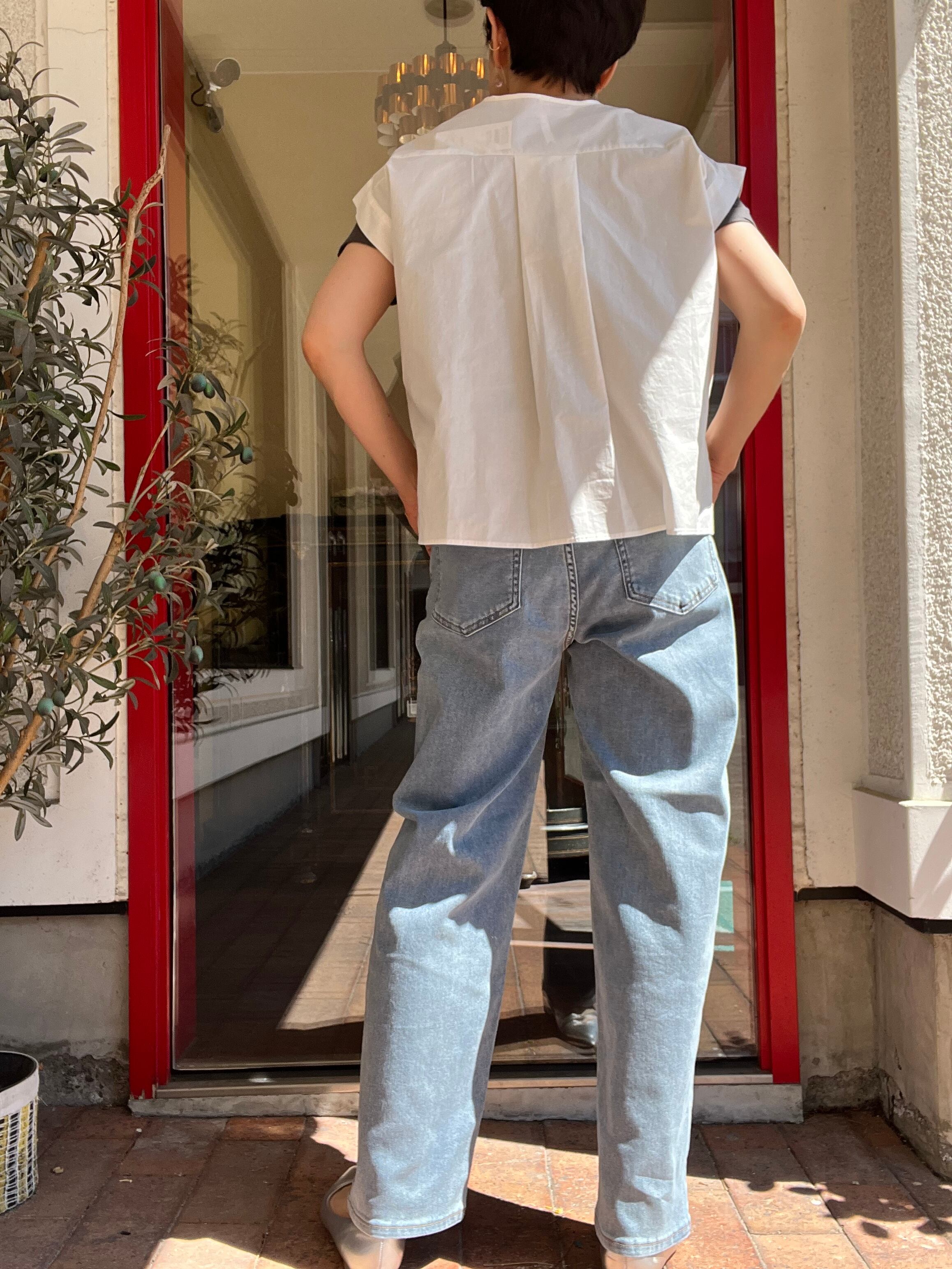 夏のレイヤードに便利な、薄手のハリのあるシャツ生地のジレ