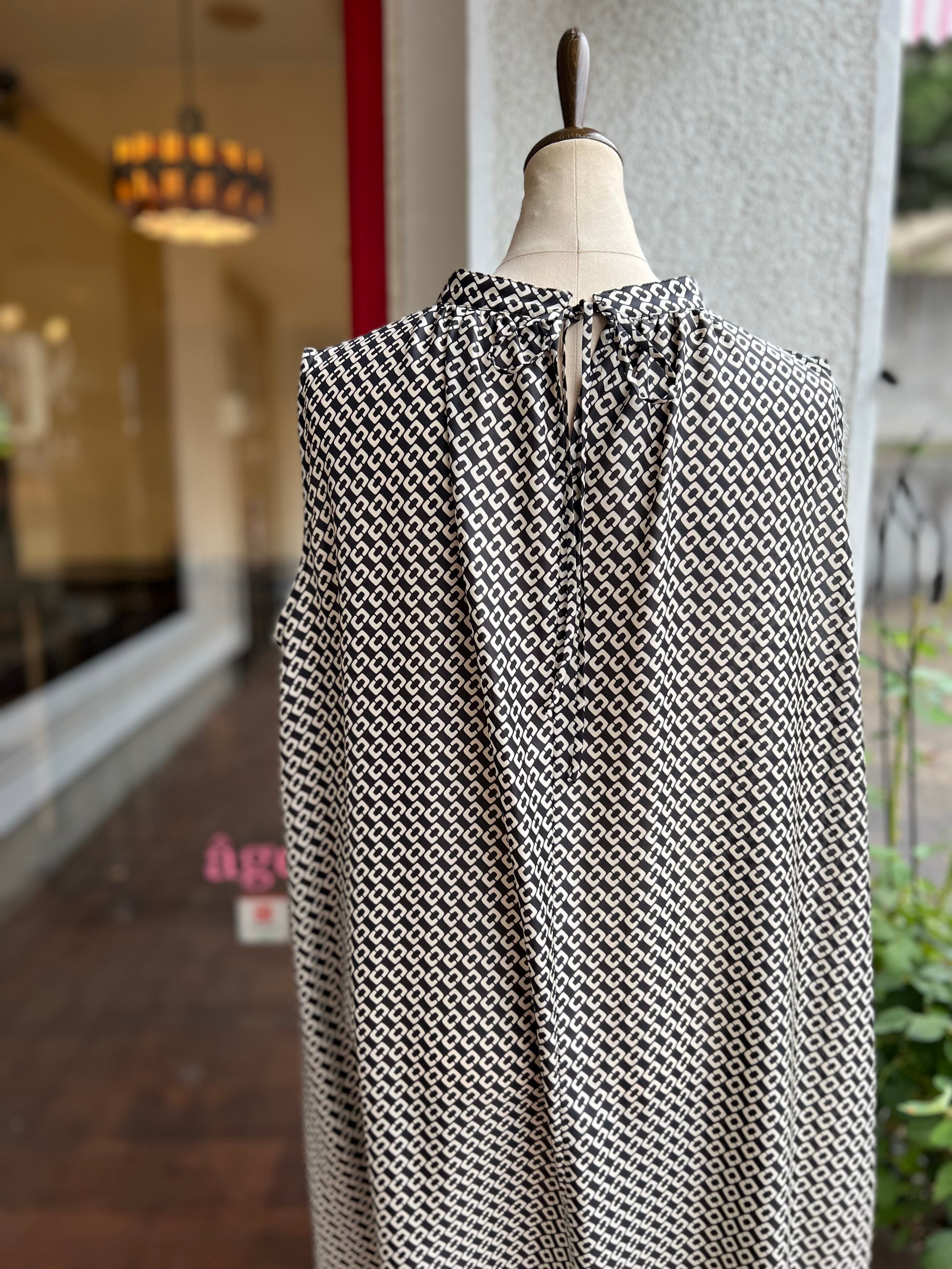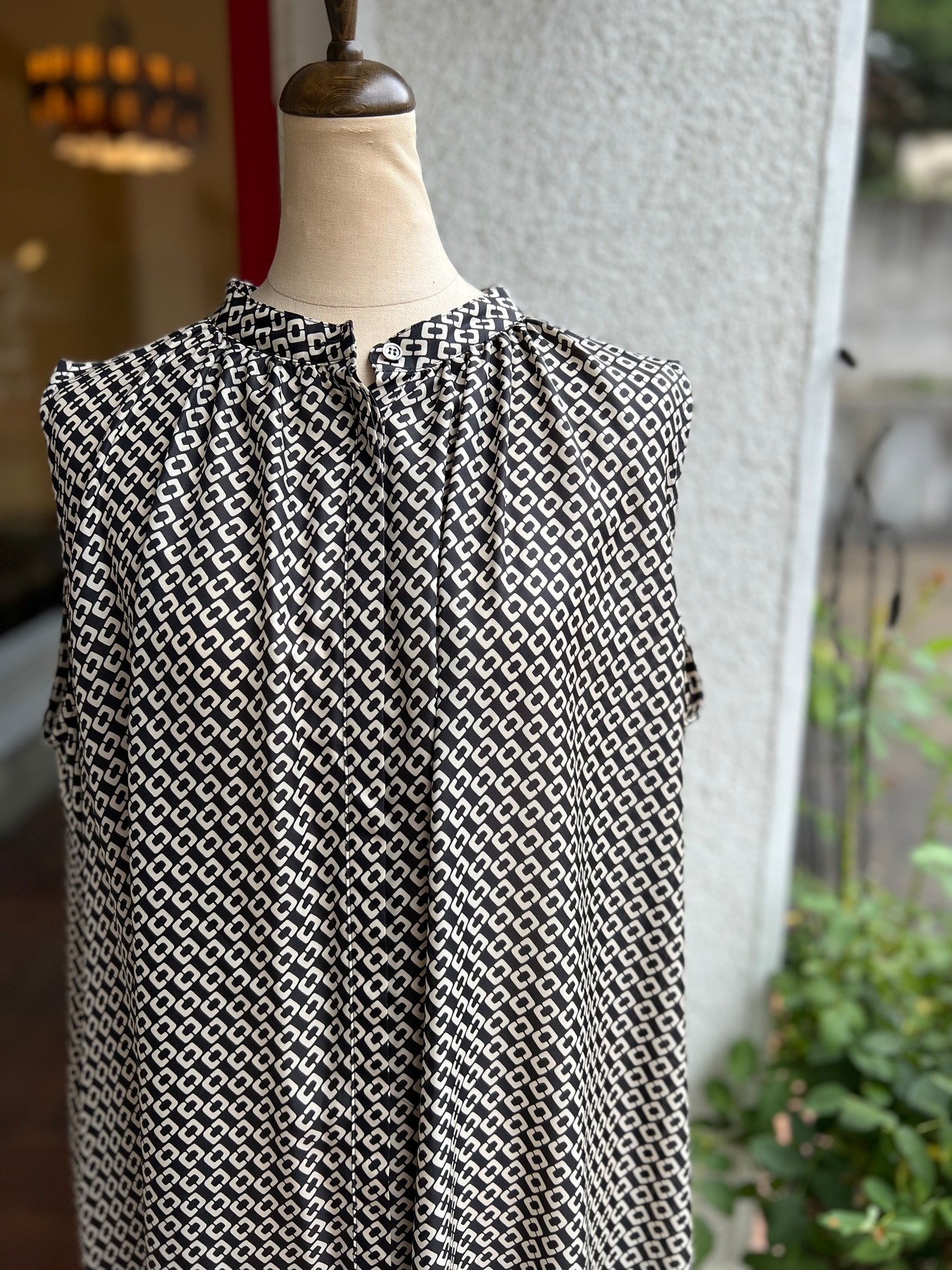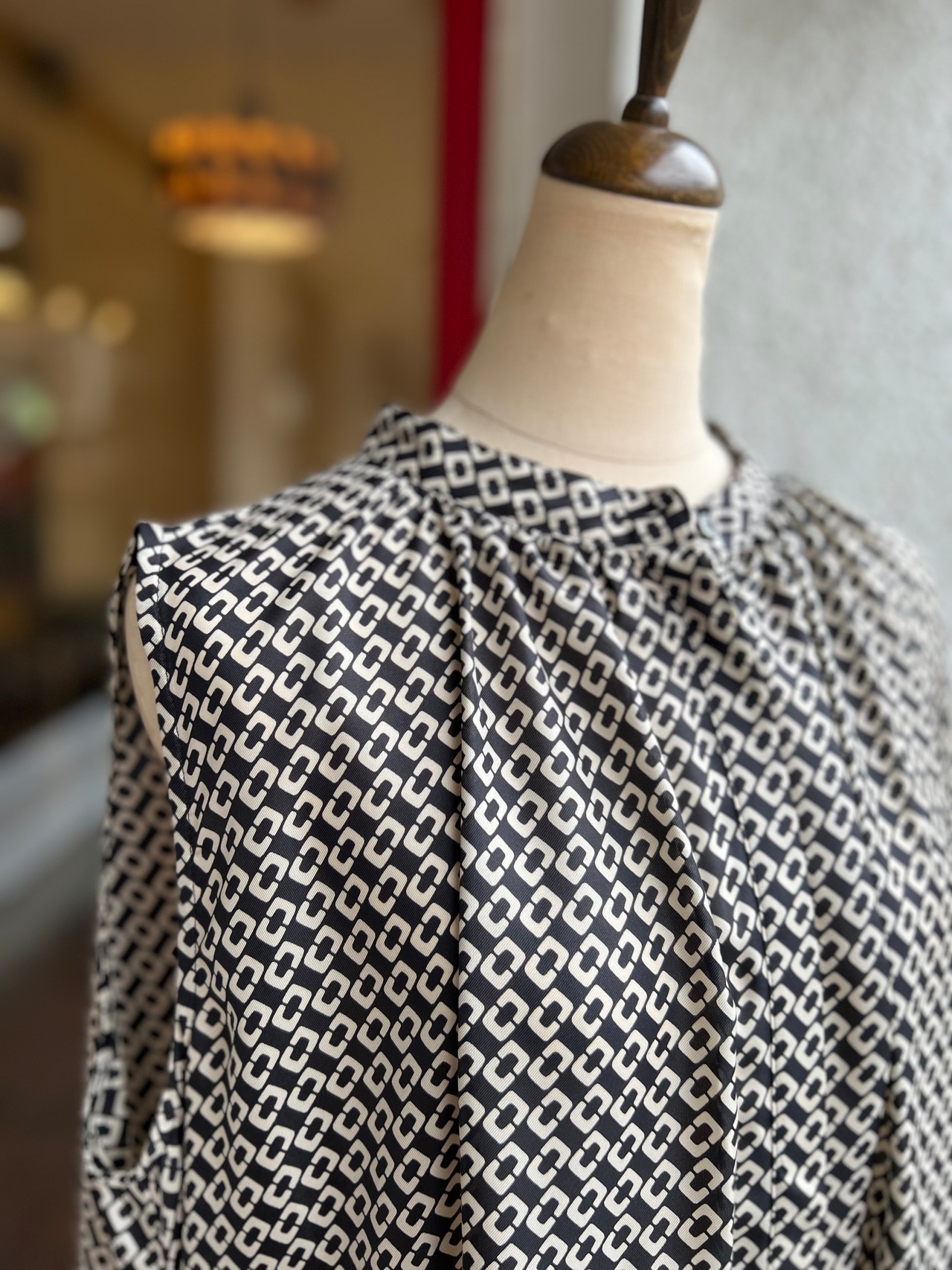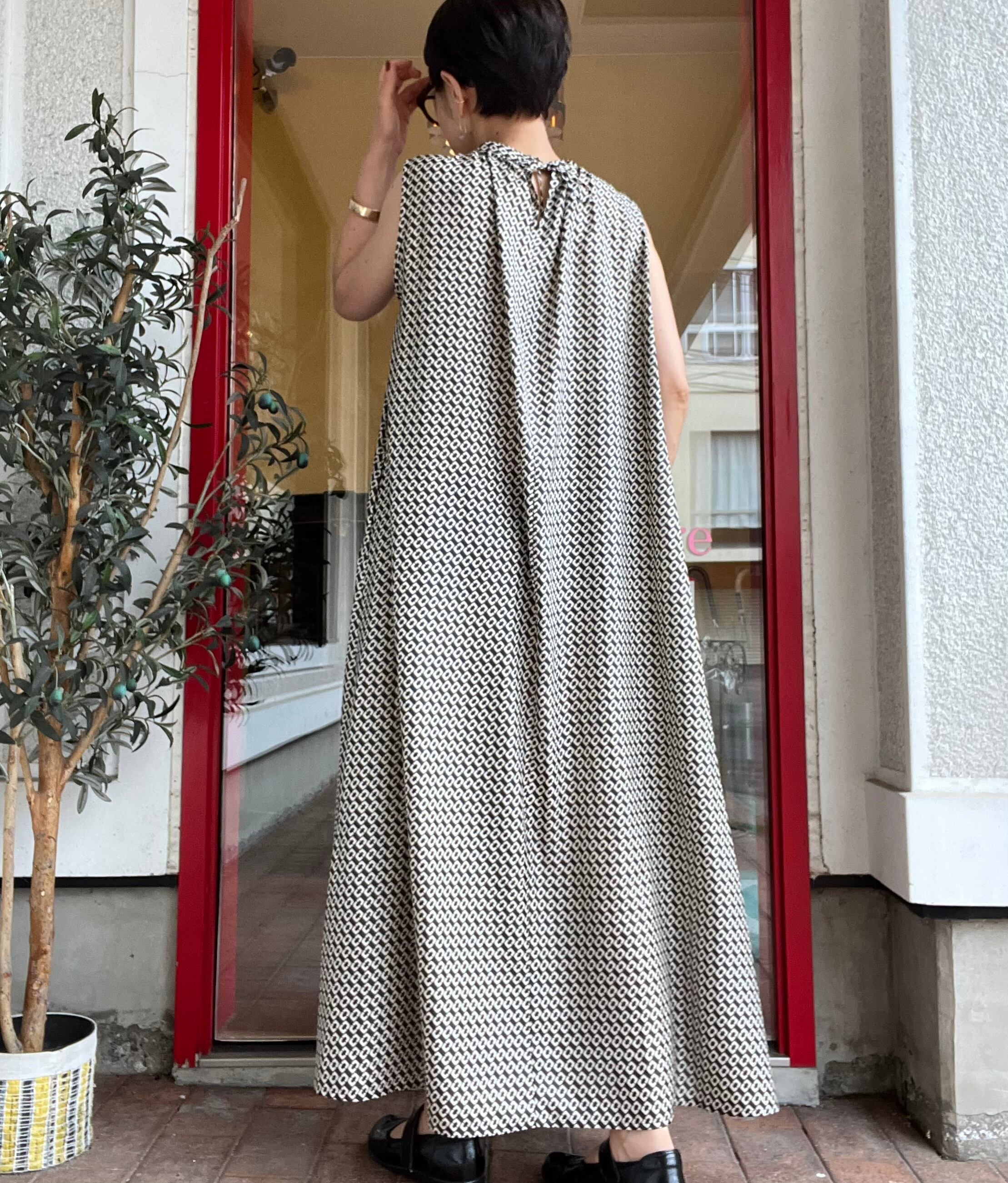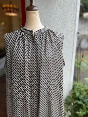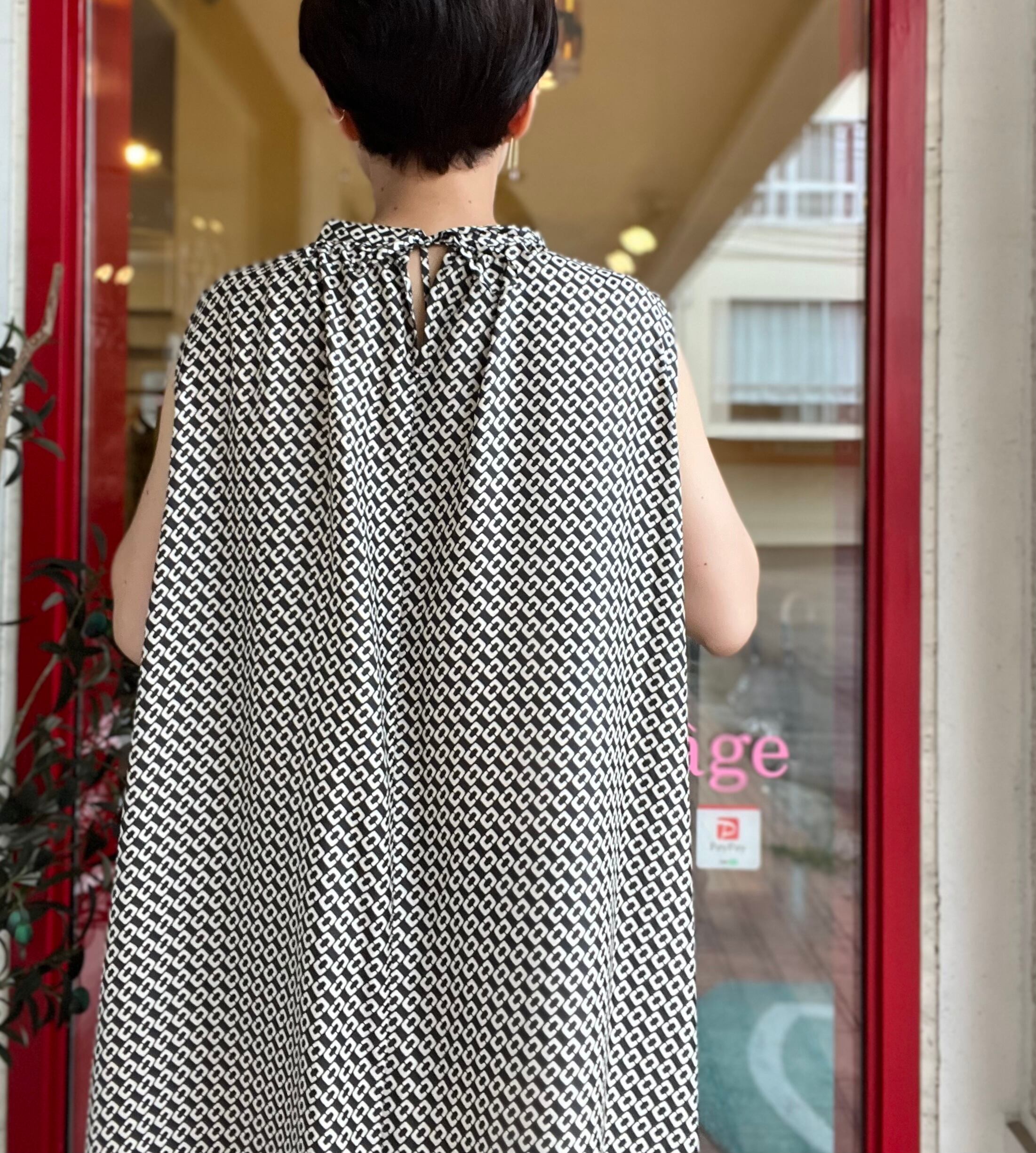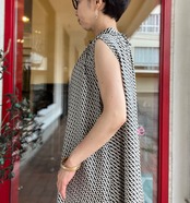 前開きのシャツワンピース型なので、パンツやタンクトップを合わせてジレのようなコーディネートも可能です