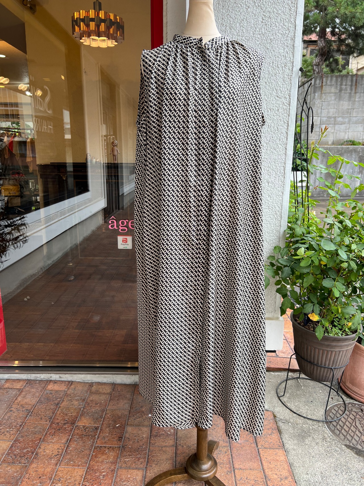 シルクのような光沢感があり、滑らかな質感のロングワンピース