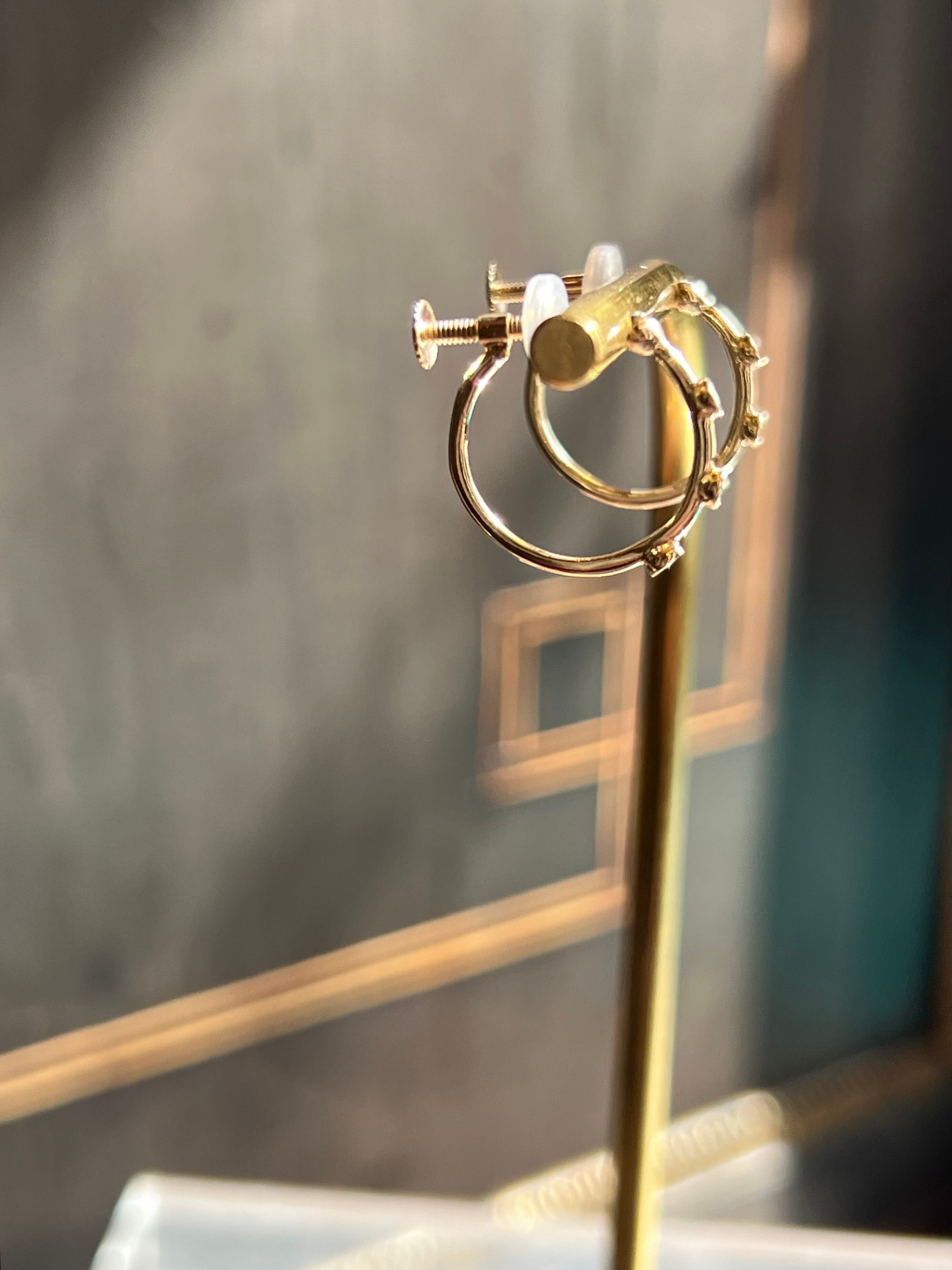 幅が細めのデザインは、イヤカフともレイヤードしやすく耳元を華やかに彩ります