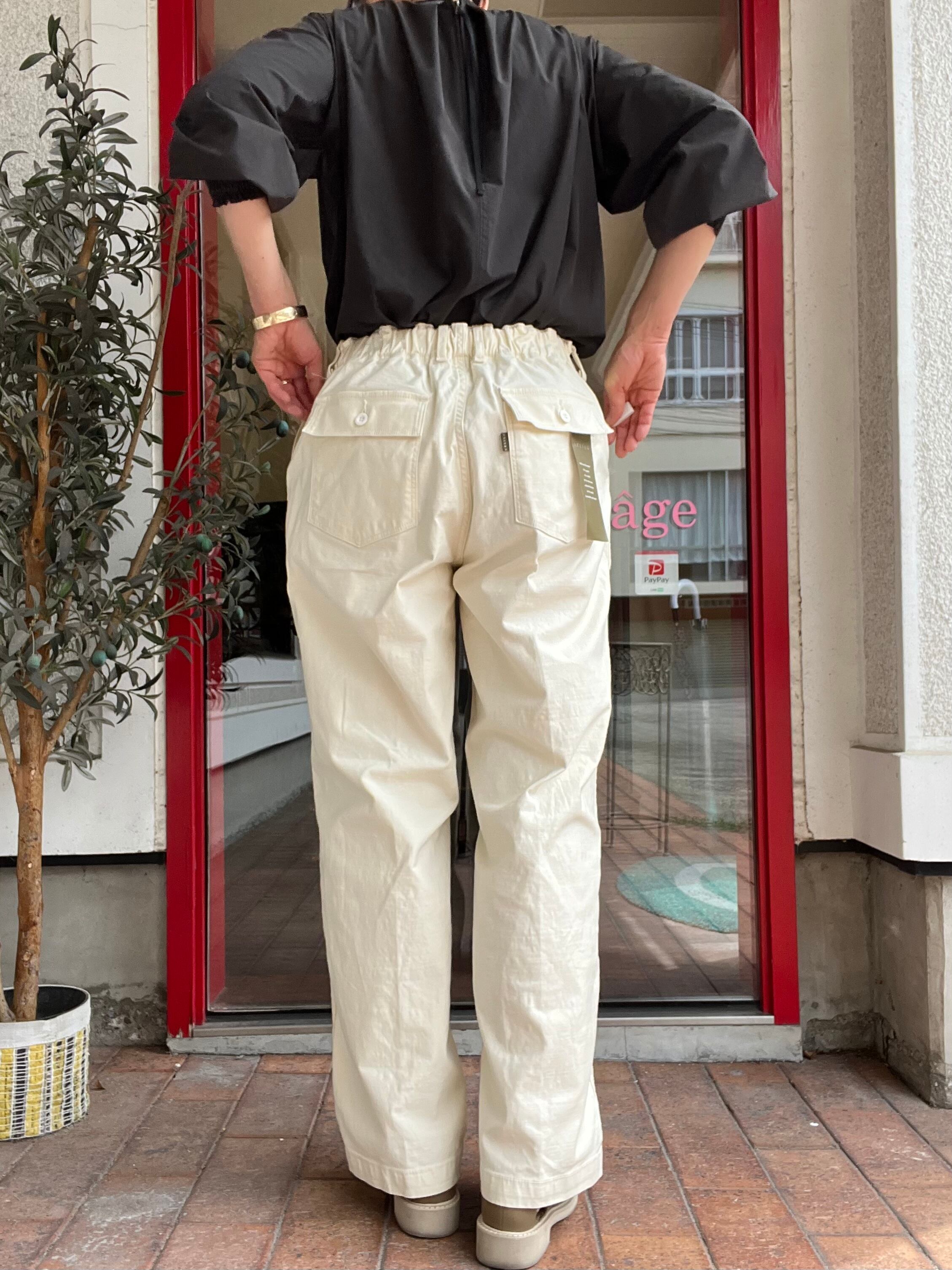 ウエストの後ろゴムによるウエストのイージーなフィット感や伸縮性もあり
