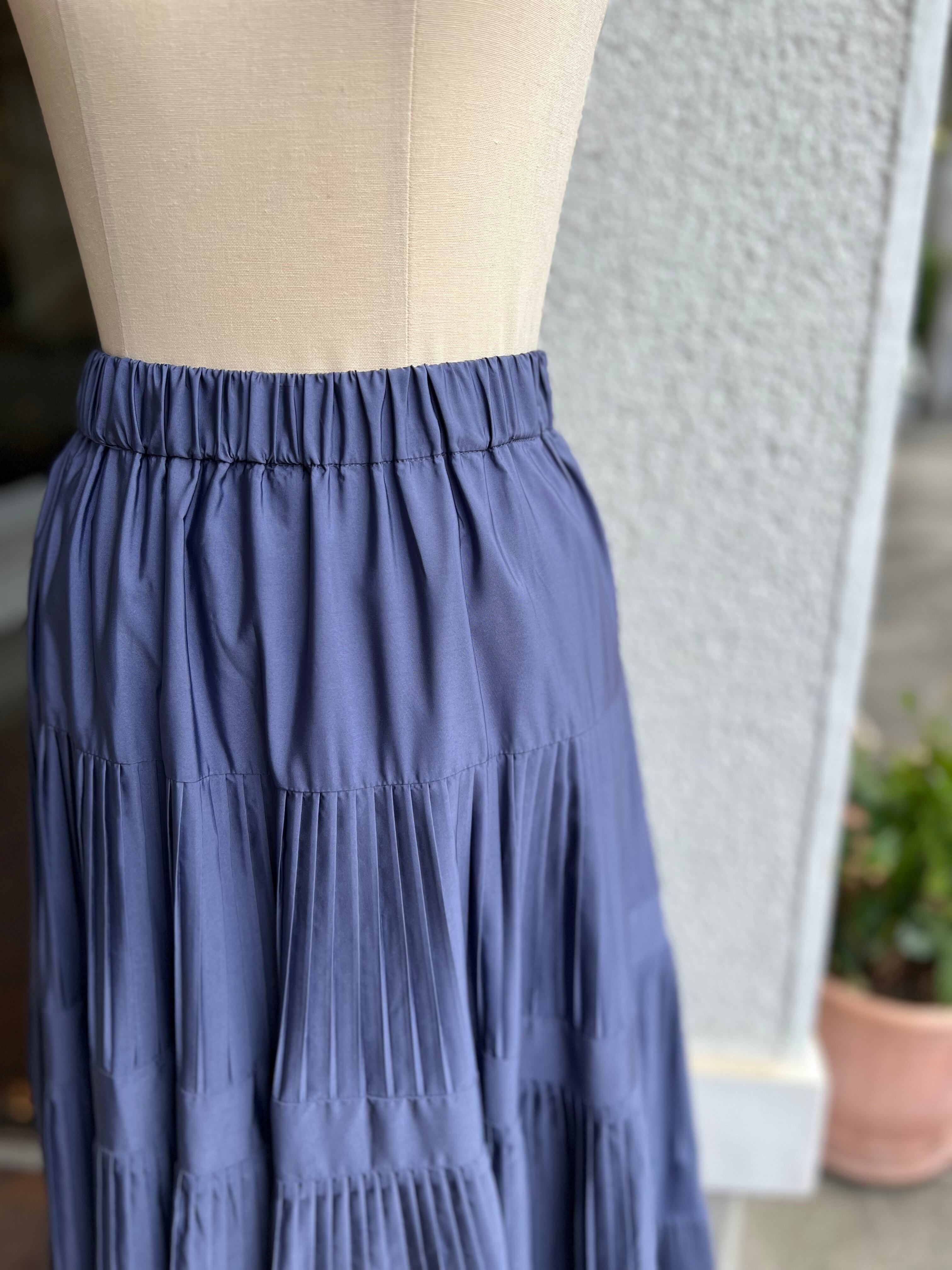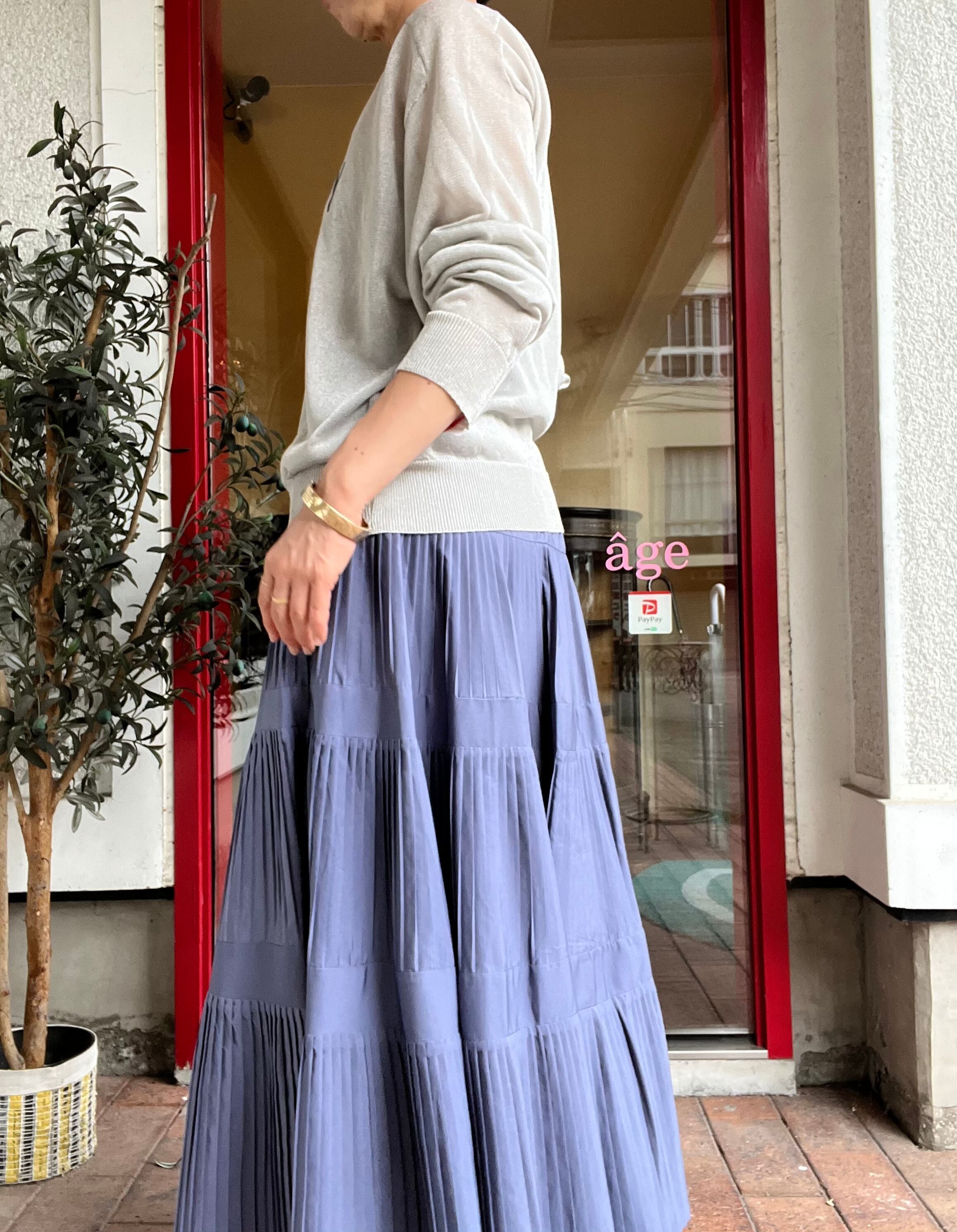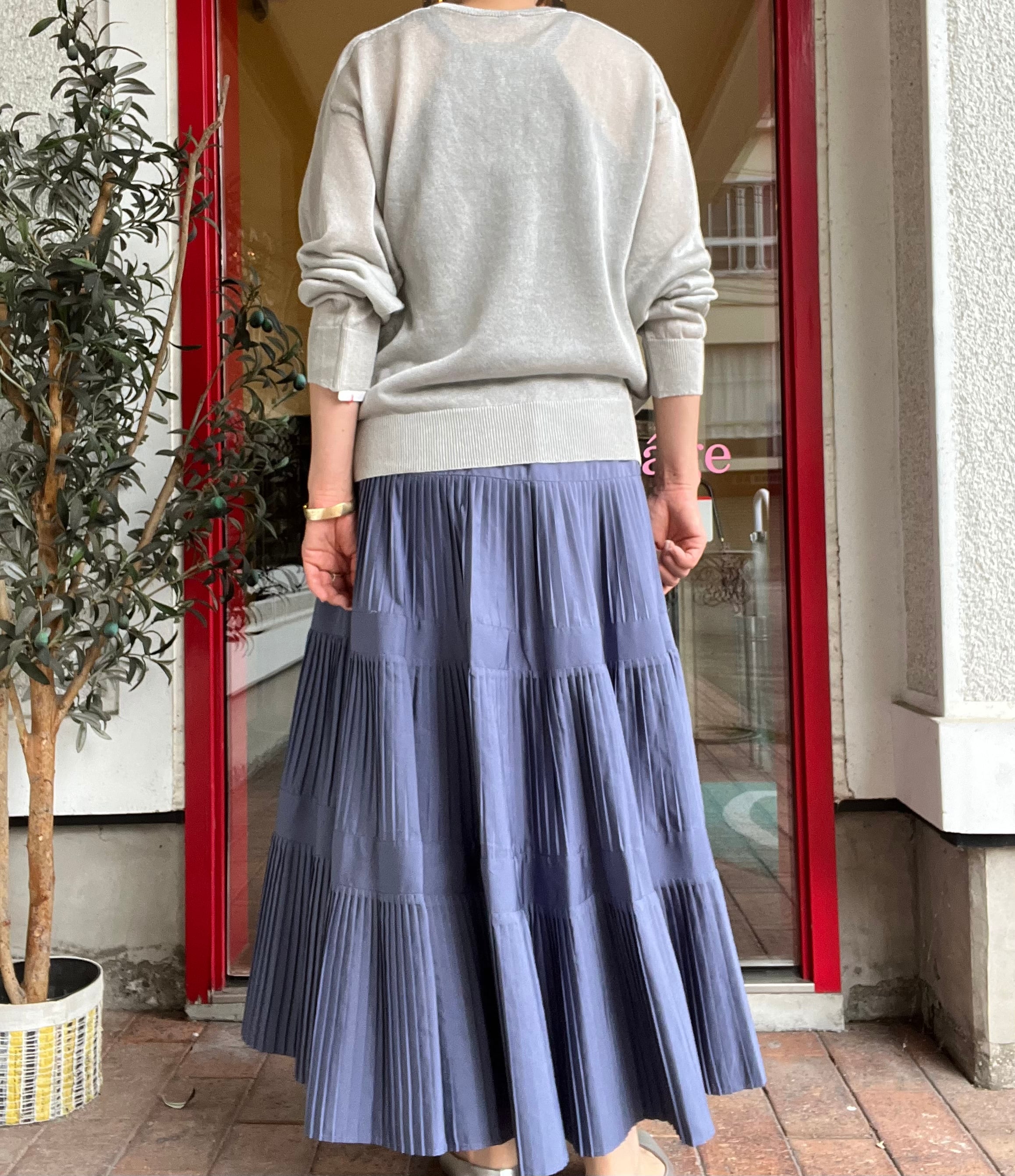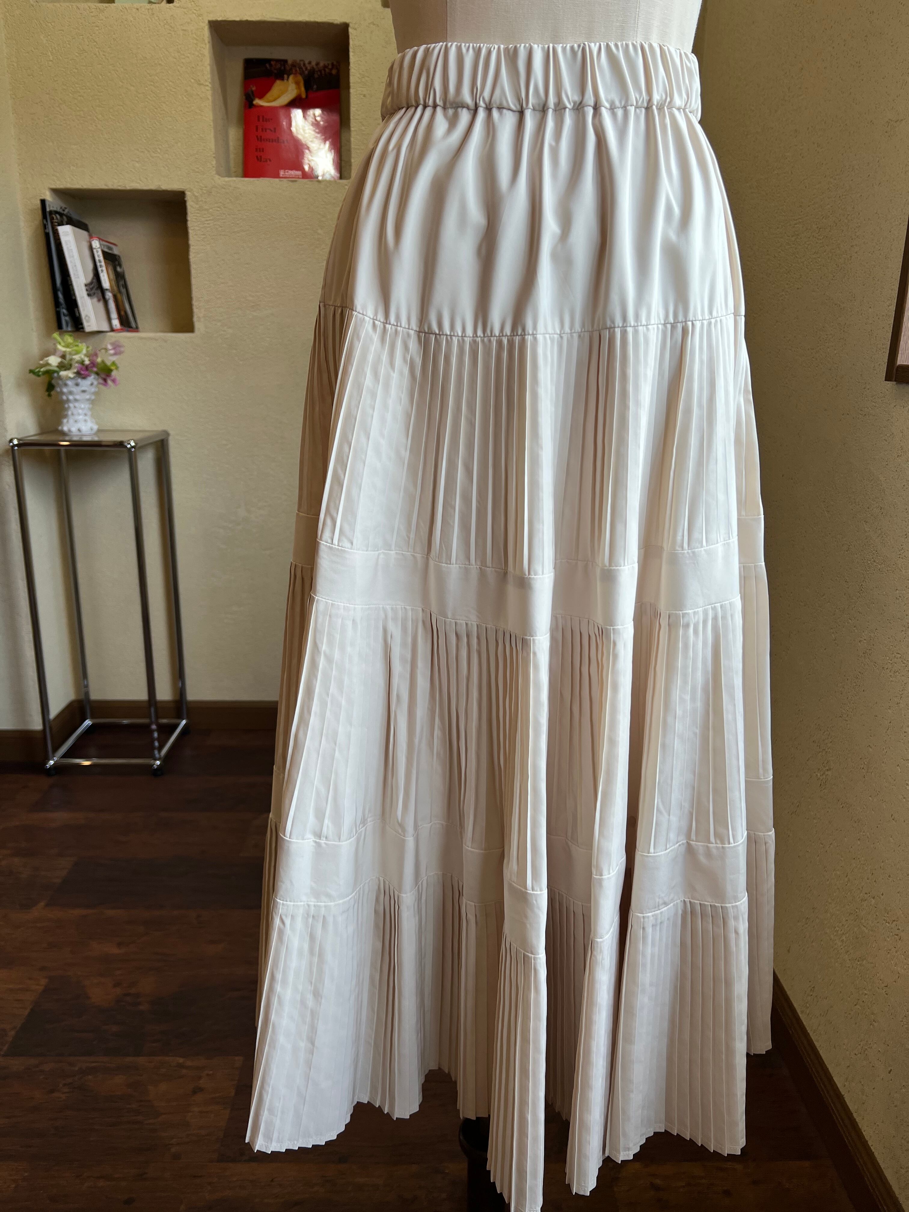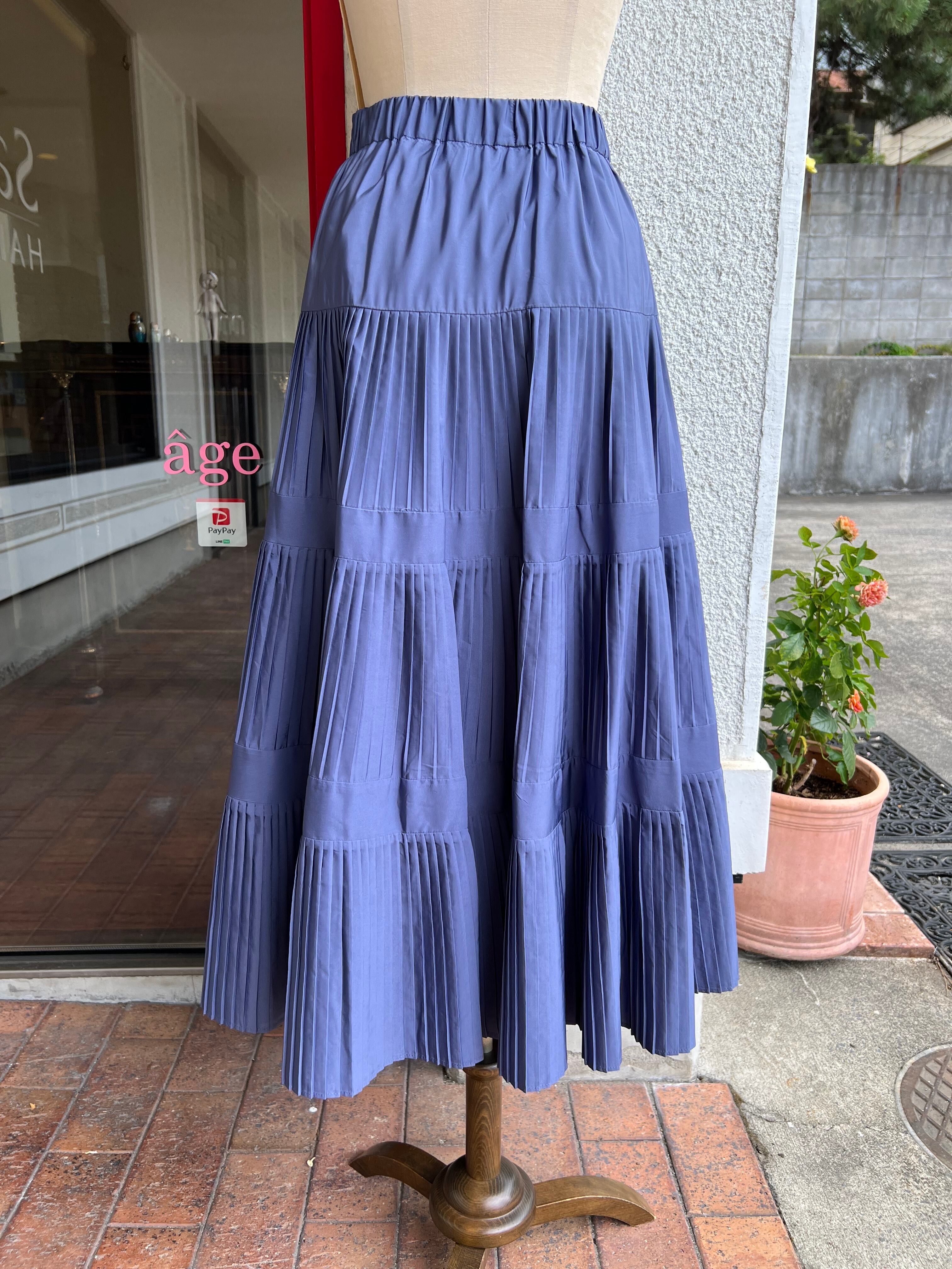 合わせるシューズの変化でオールシーズン穿いていただけるプリーツティアードスカート