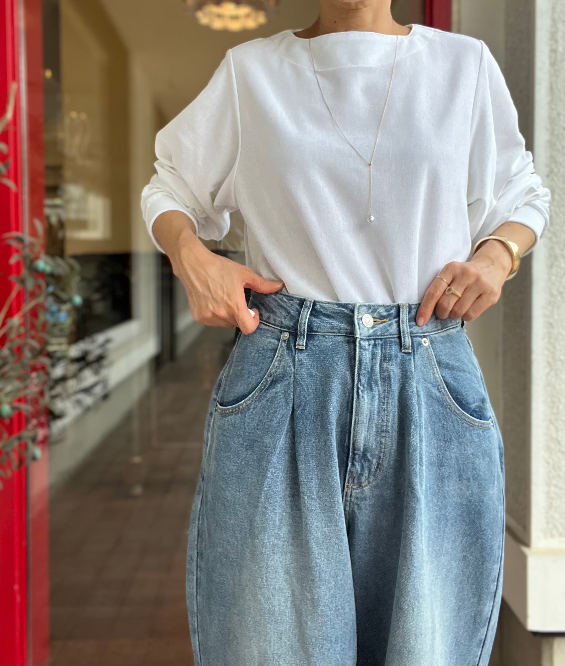 ウエストを少し落としてイージーに履くのがおすすめです