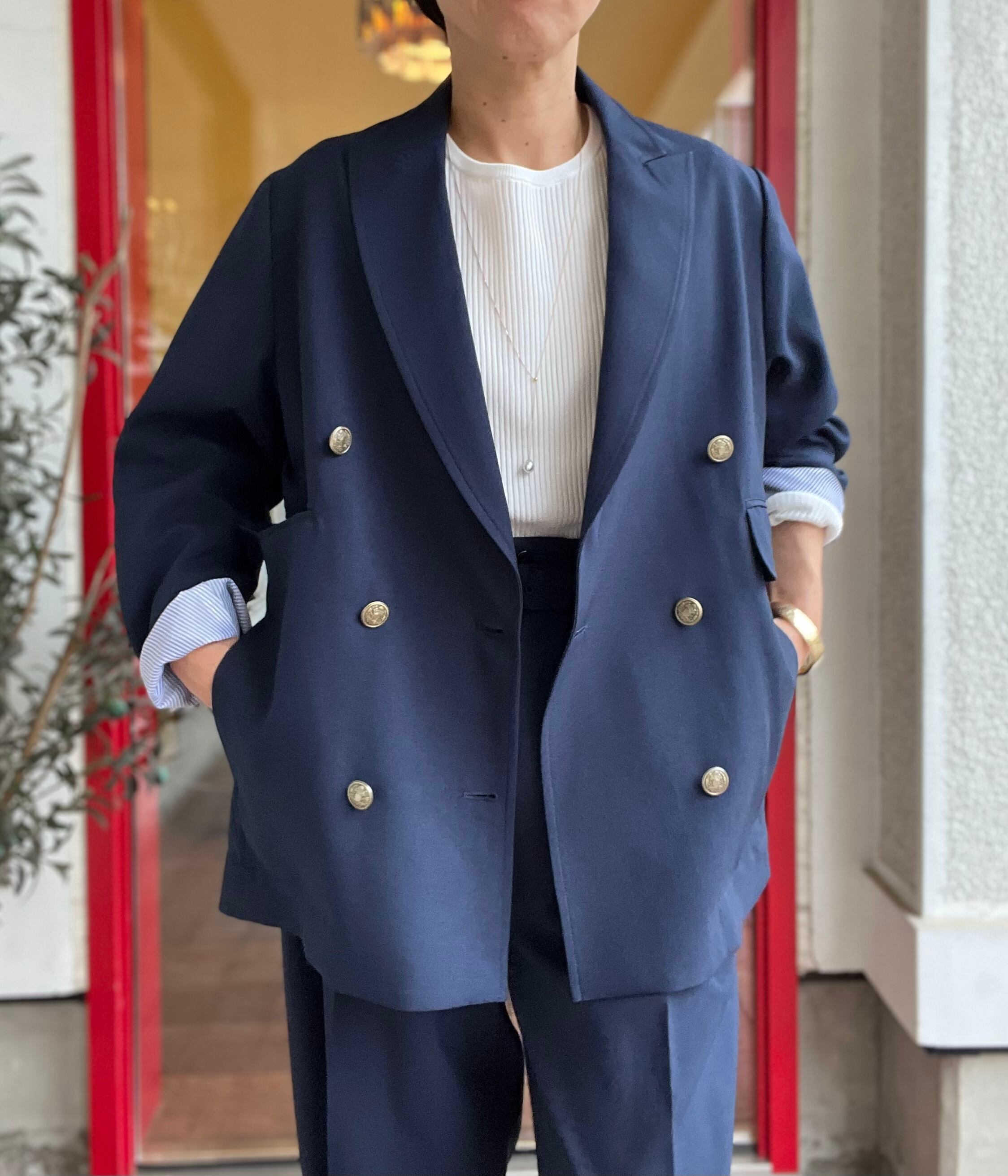 ドライでオールシーズン着用可能なポリエステルストレッチトロピカル素材を採用した