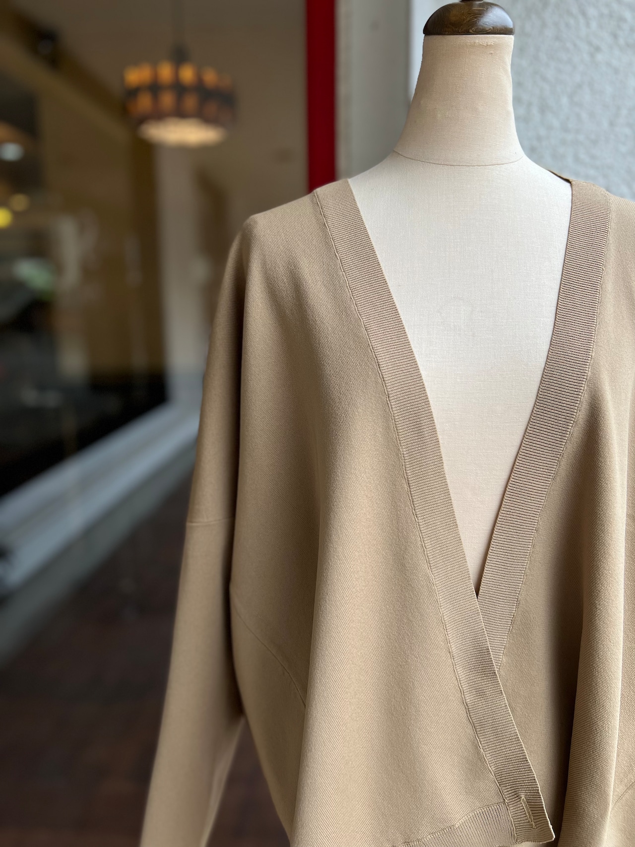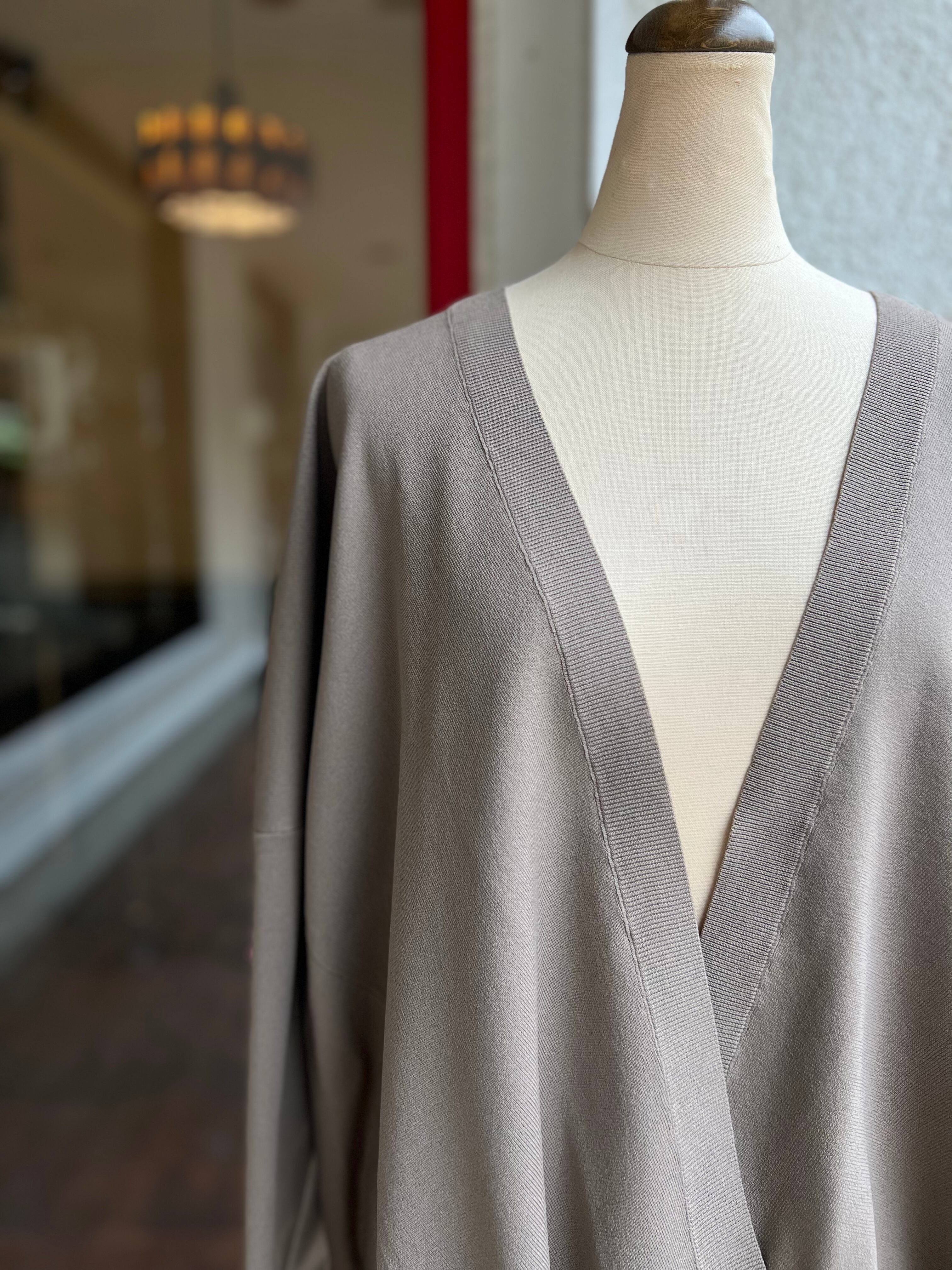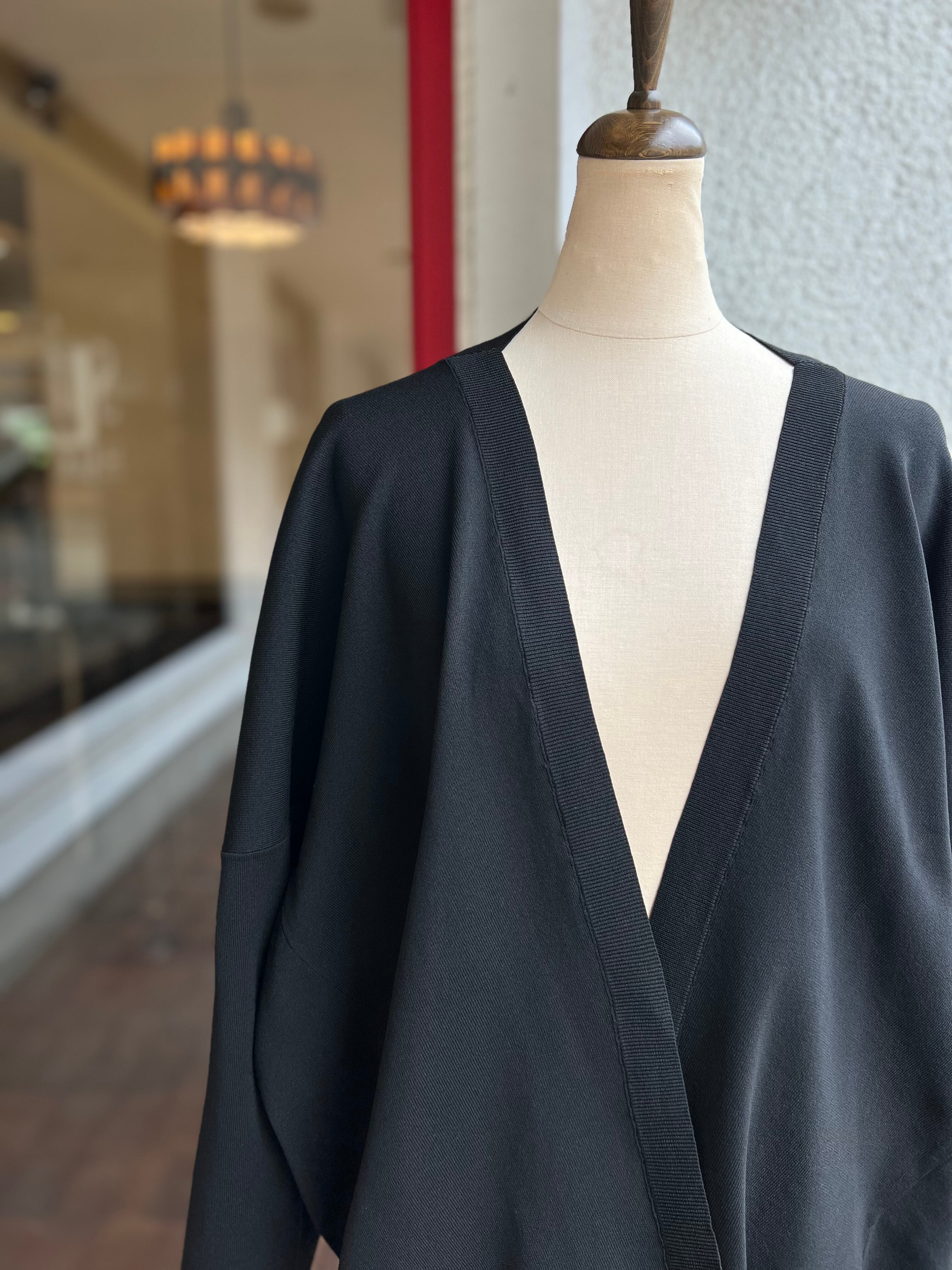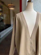 フロントの釦もシングル留め、カシュクール留めとアレンジが可能です