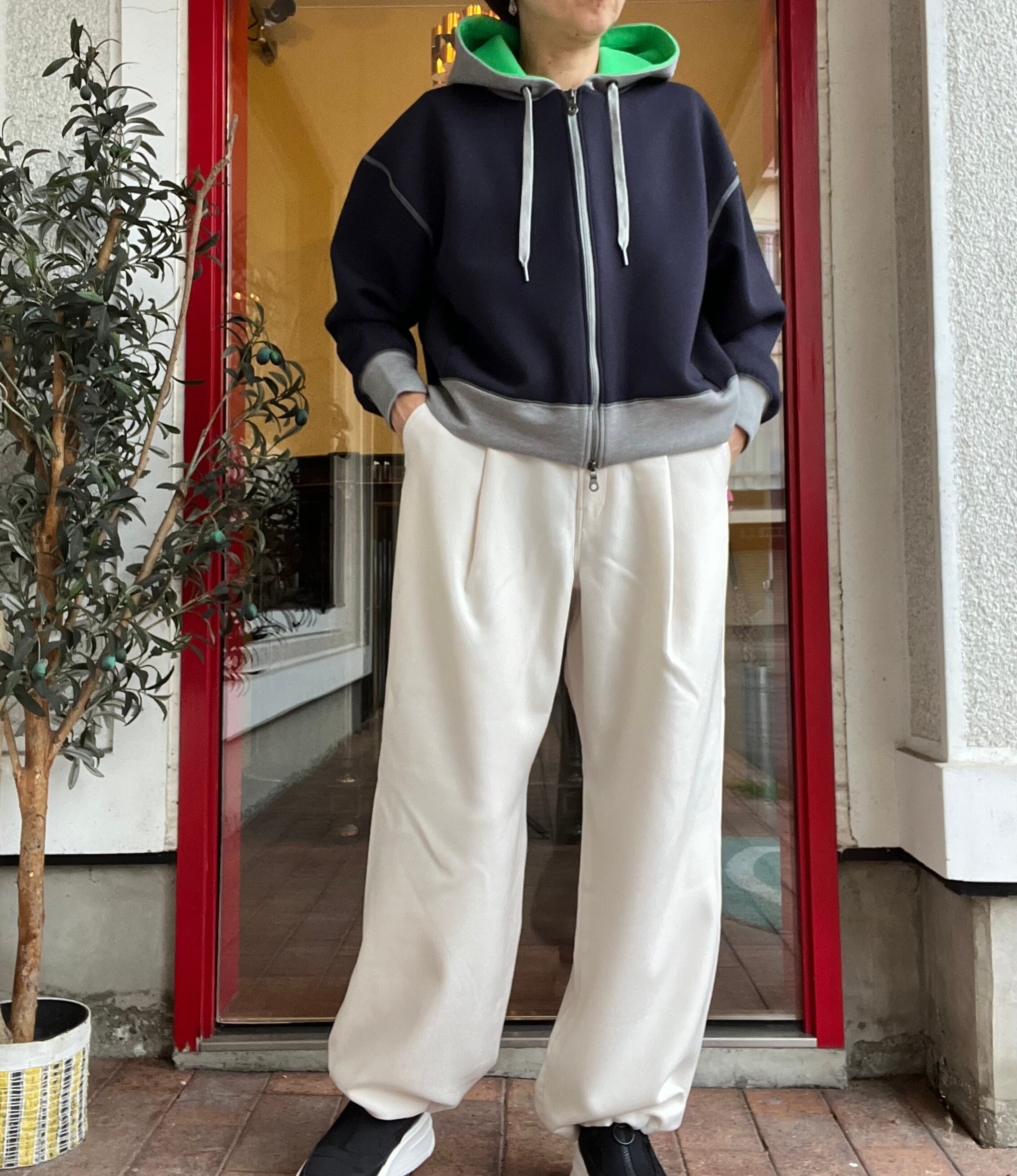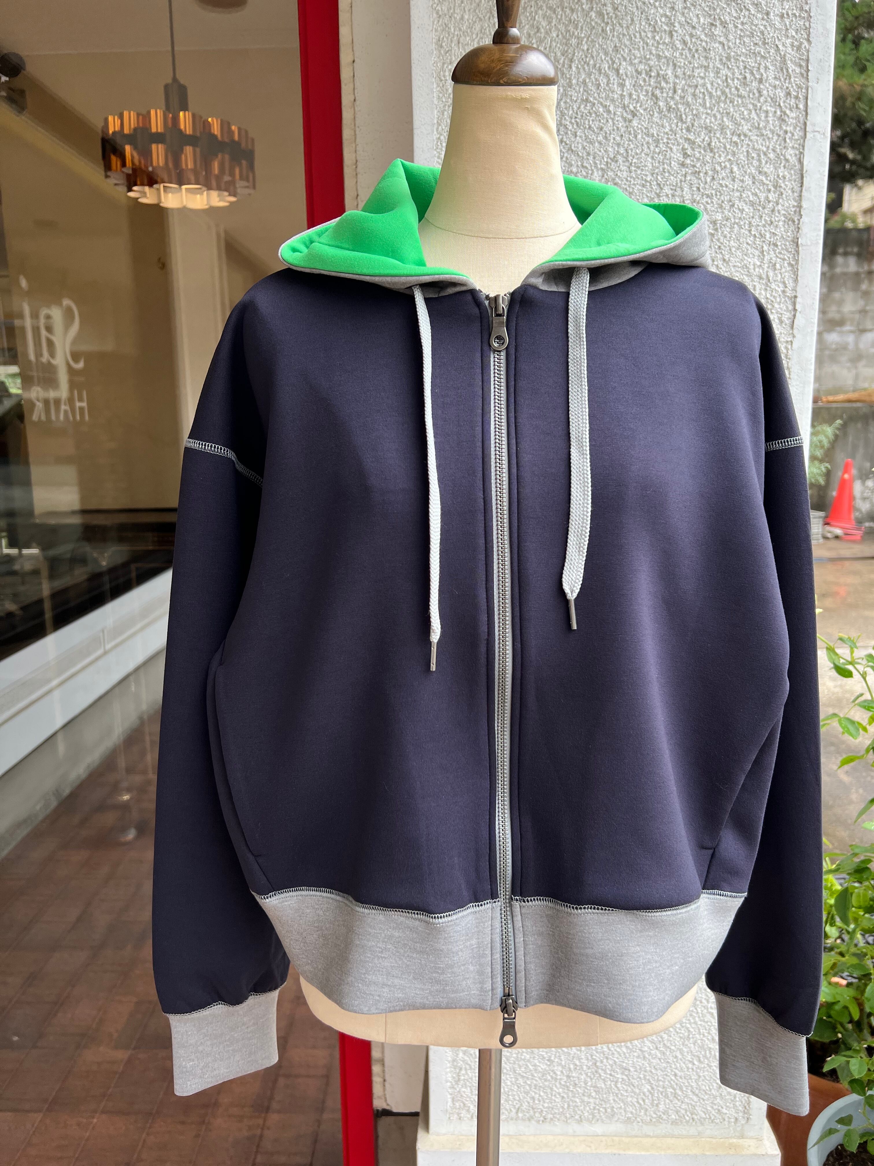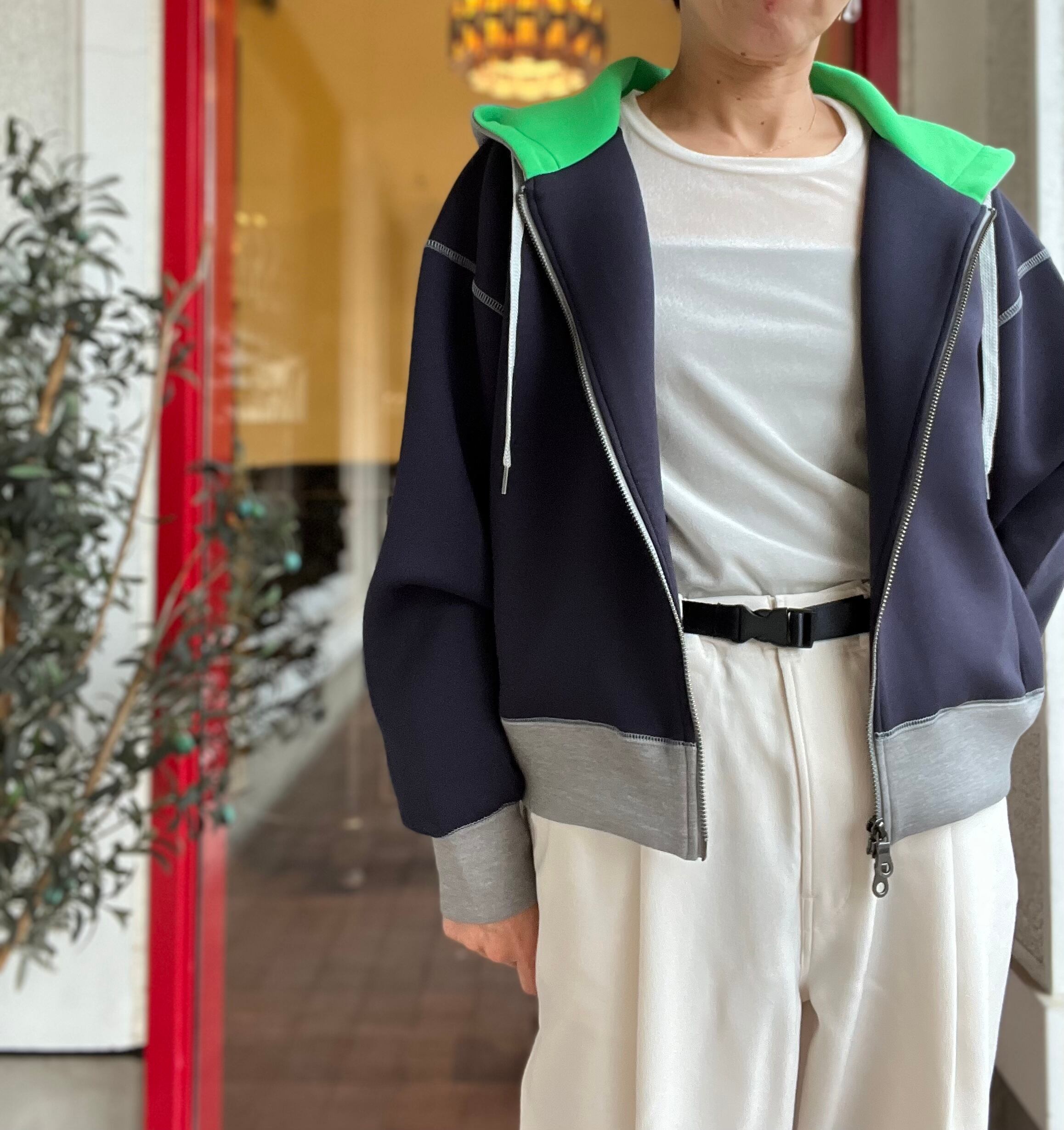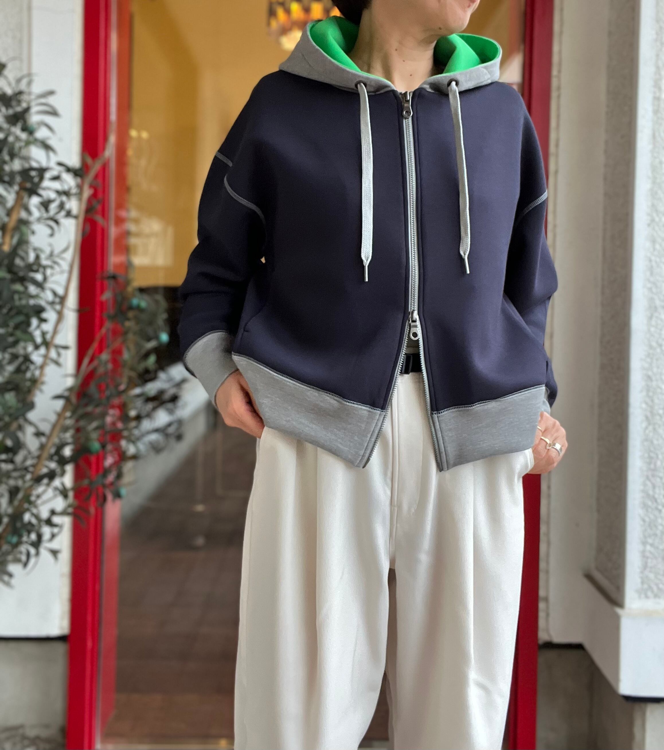 コーディネートしやすい着丈にダブルジッパーでボトムに合わせて調整して頂けます