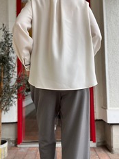 落ち感があり、肩や後ろのタックにより立体感のあるデザインは