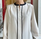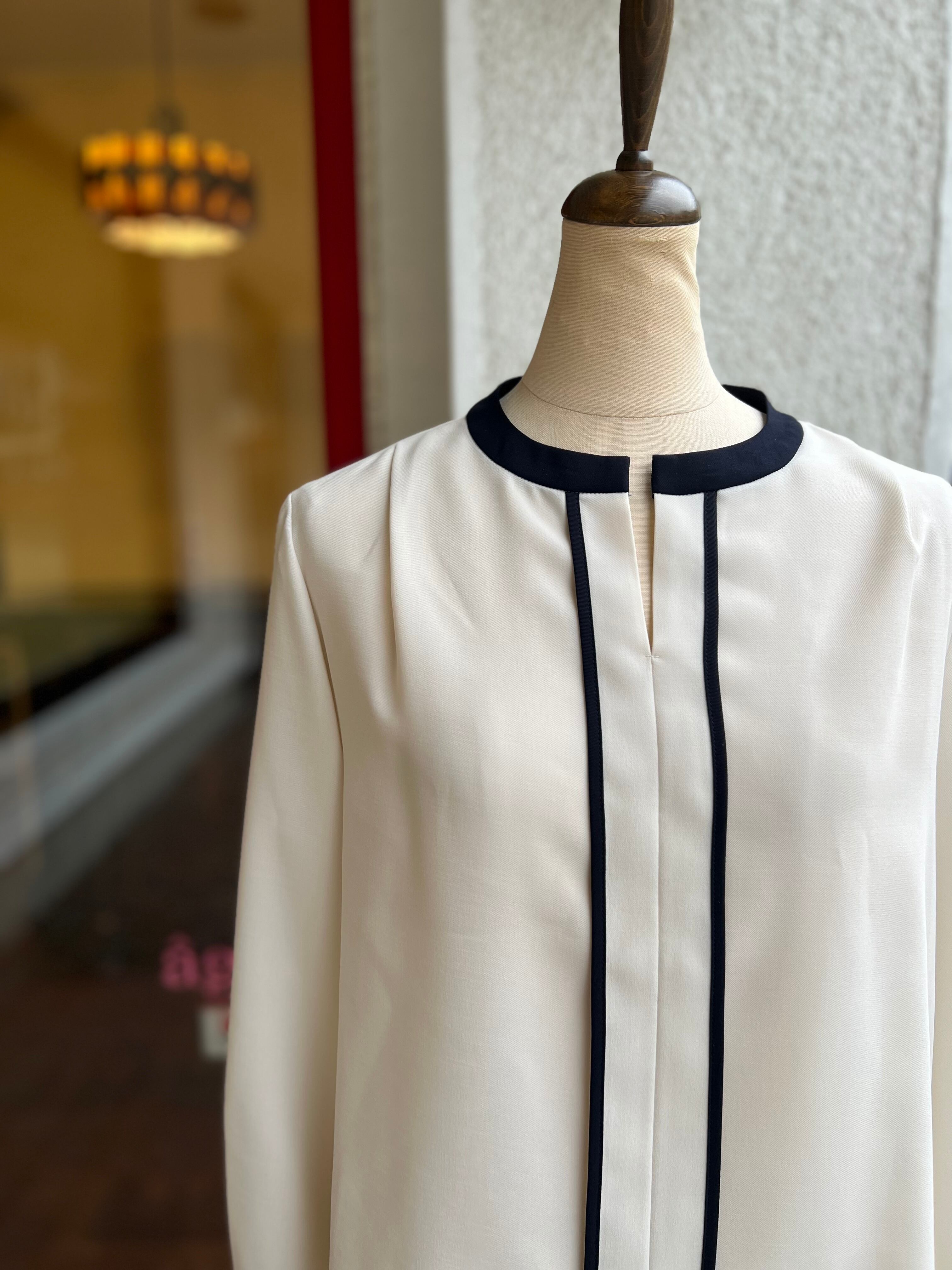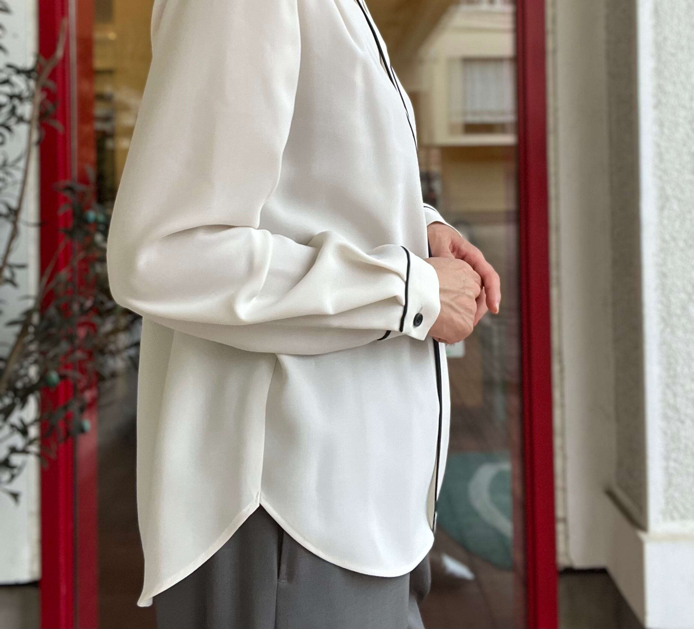 お仕事や式典スタイルのジャケットのインナーにおすすめの配色ブラウス