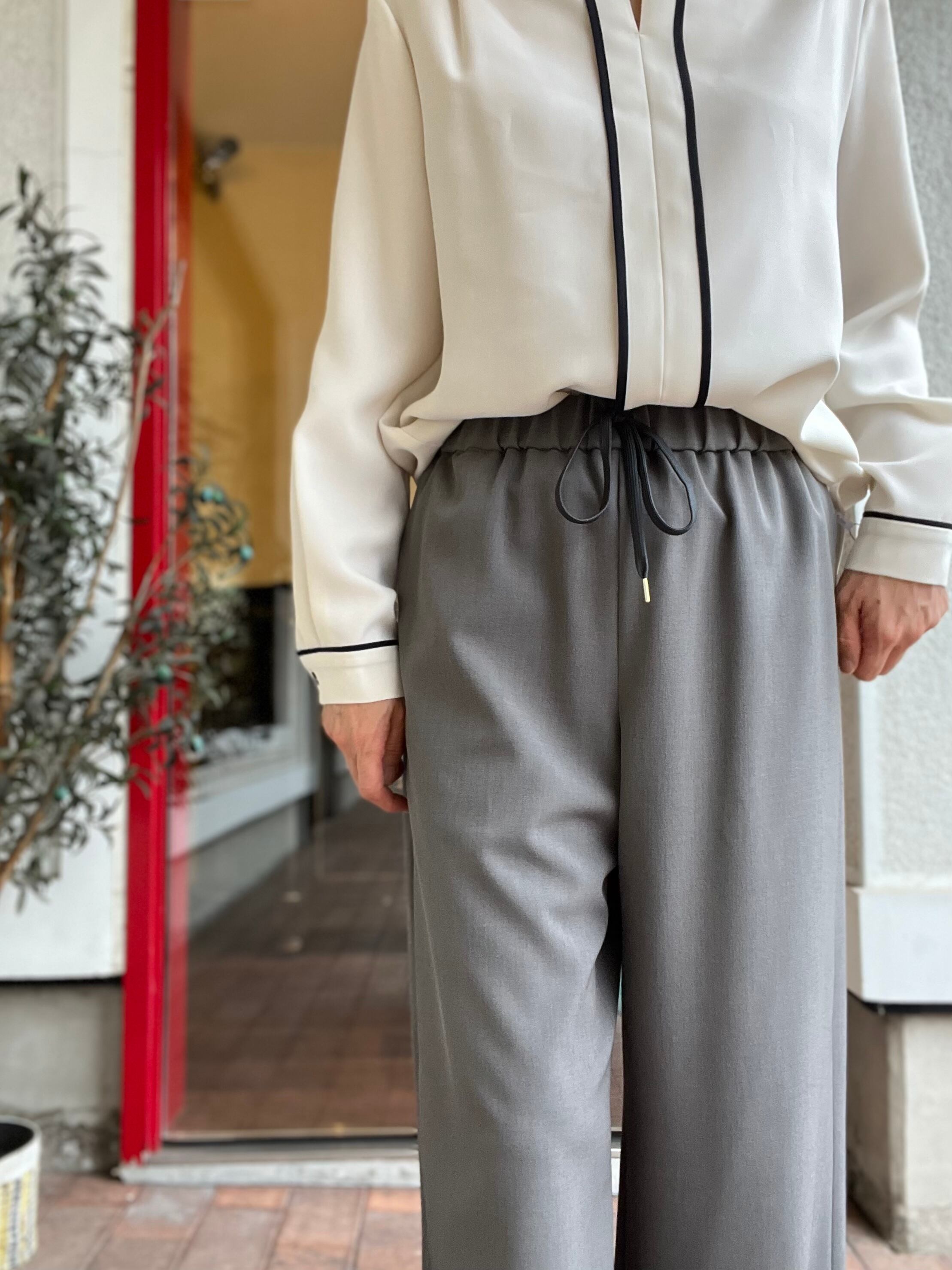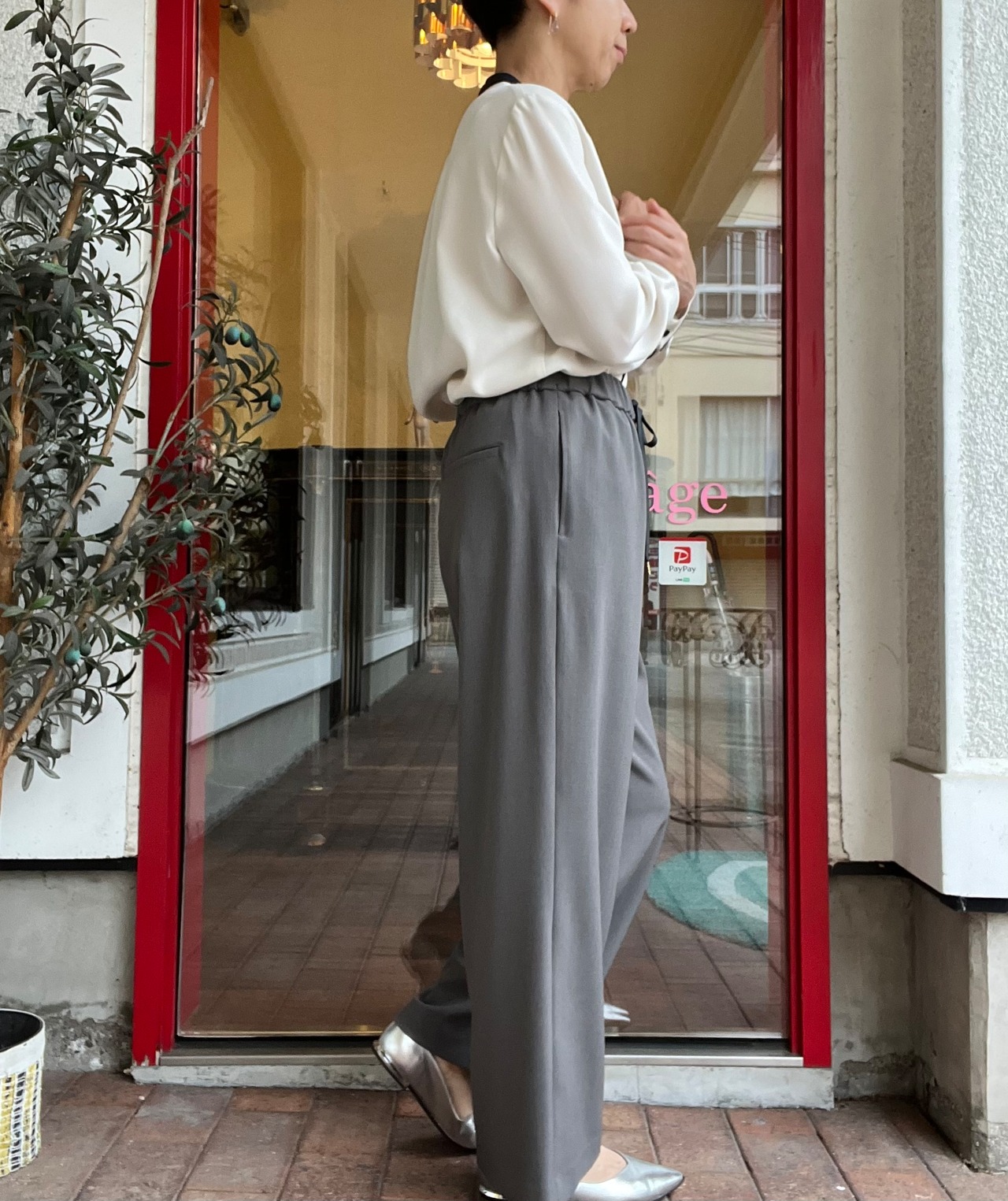 マクルール 杢調ストレッチツイル ワイドストレートパンツ