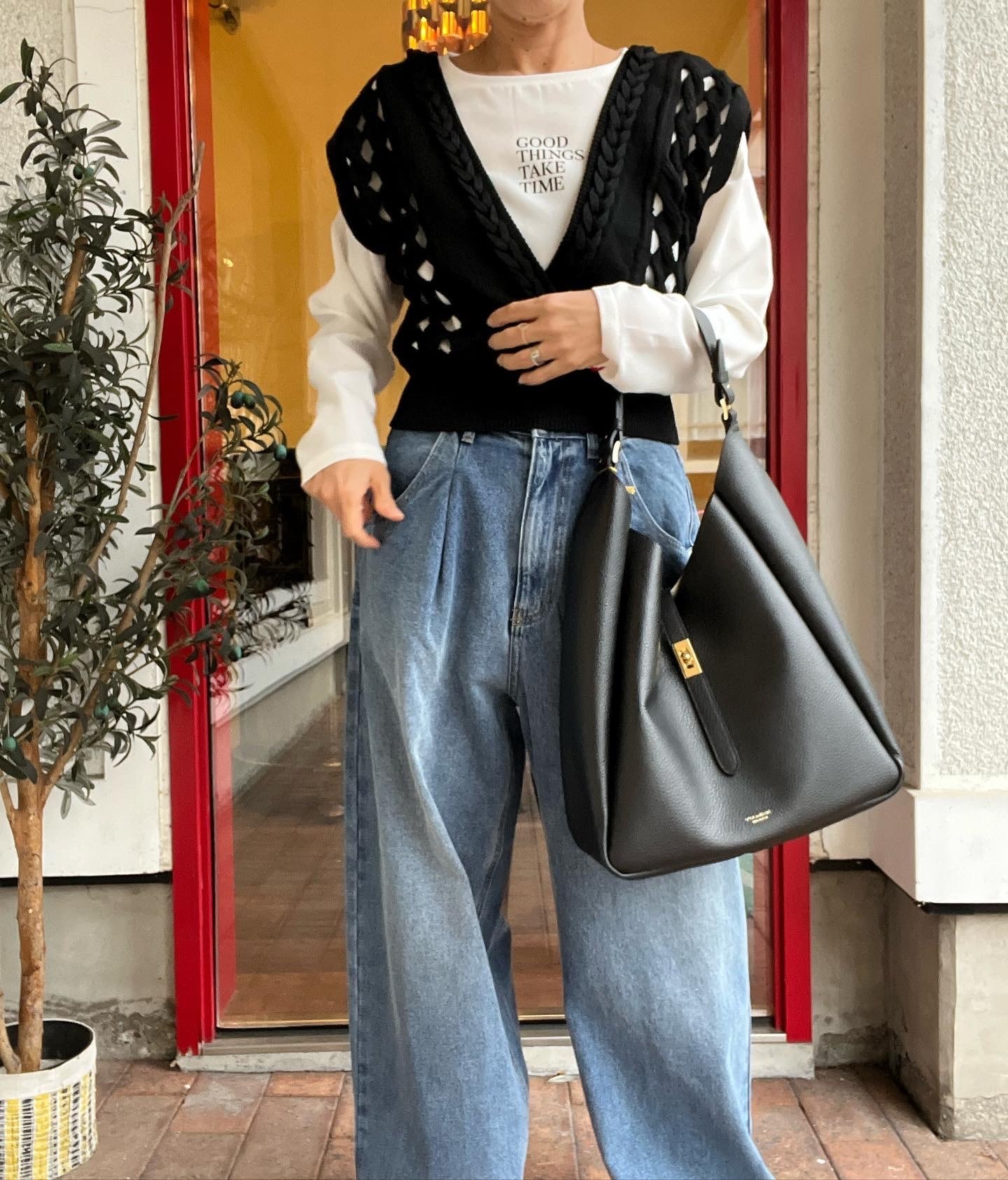 Vカットのデザインは腕を通しやすく、無理なく肩掛けして頂けます