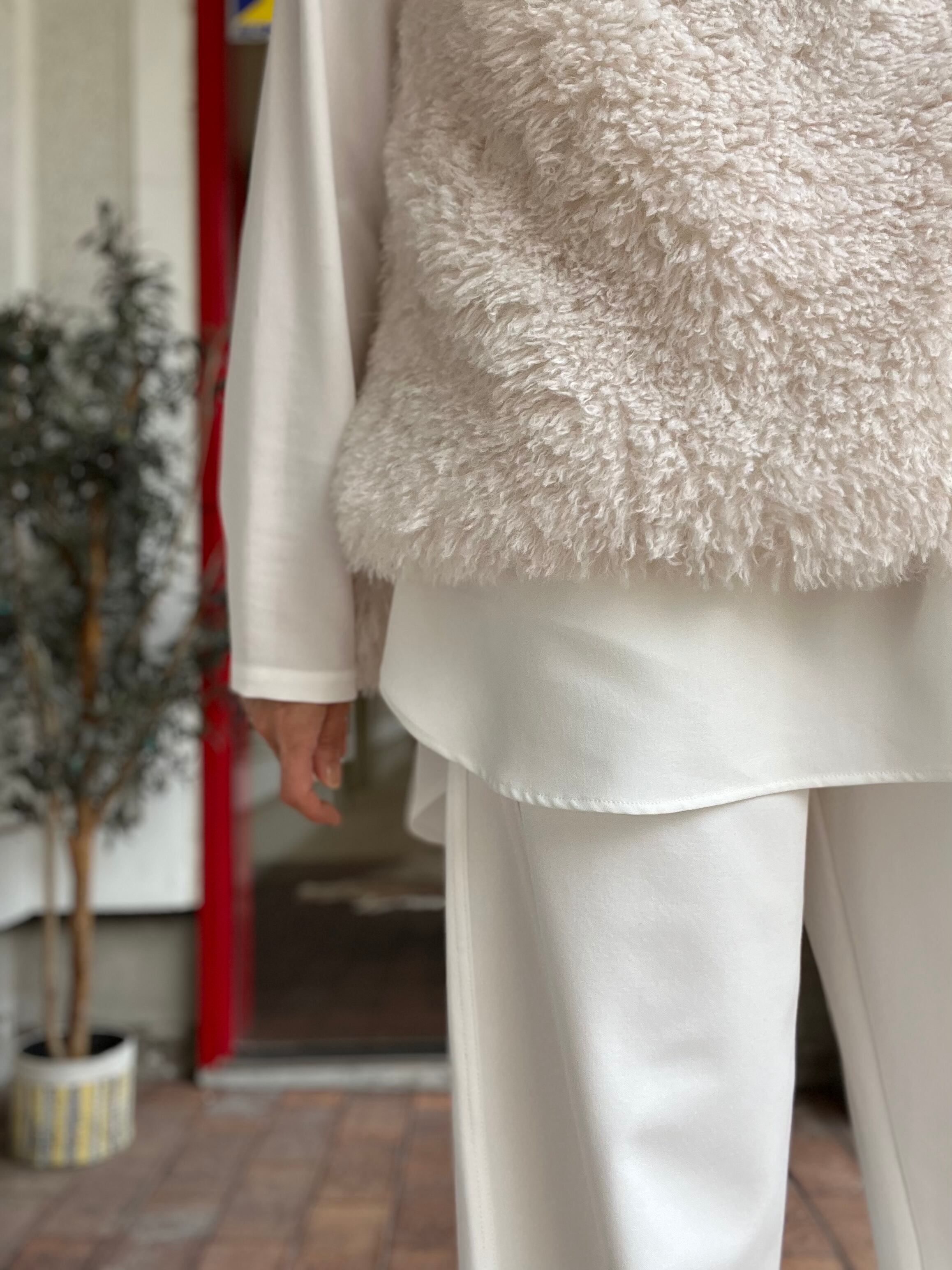 季節を楽しめるしなやかなファーのプルオーバーベスト