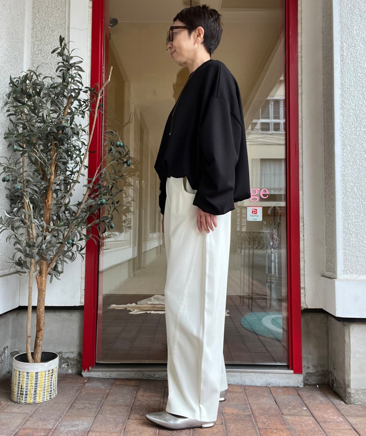 股上深めのハイウエストなので、クロップド丈のトップスともバランス良くコーディネートして頂けます