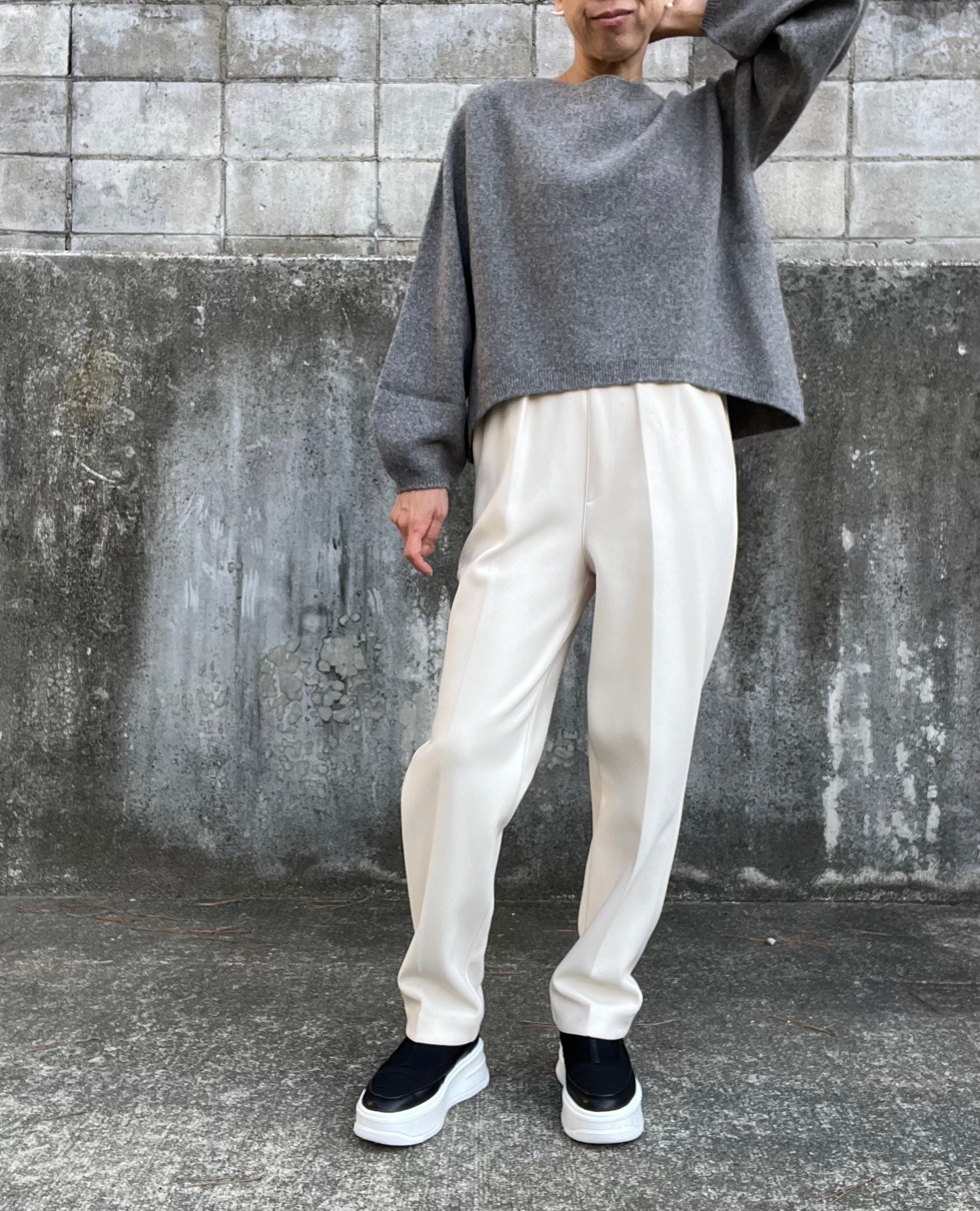 表面はきれいめな印象の生地感なのでon,offどちらでも着用して頂けます